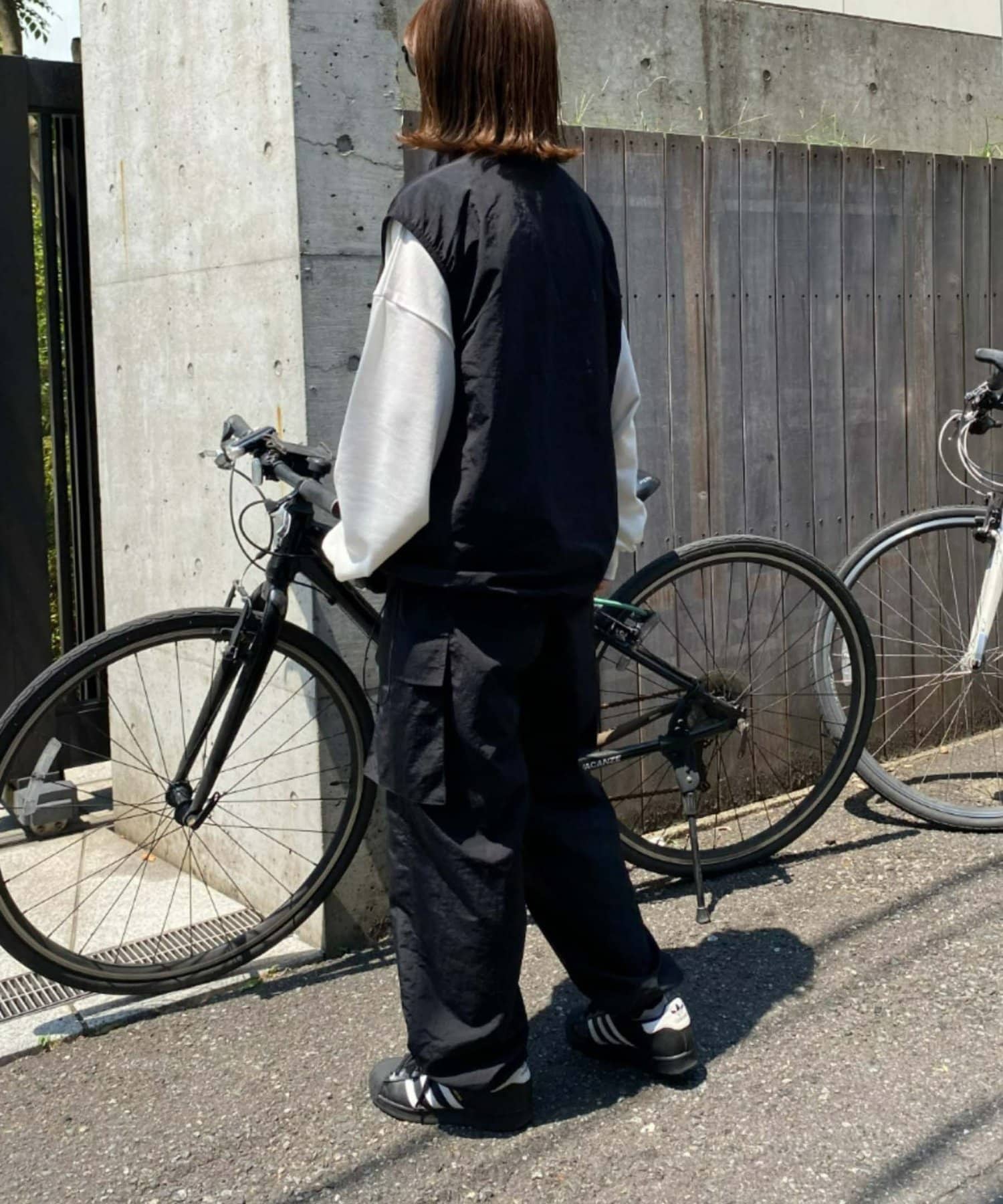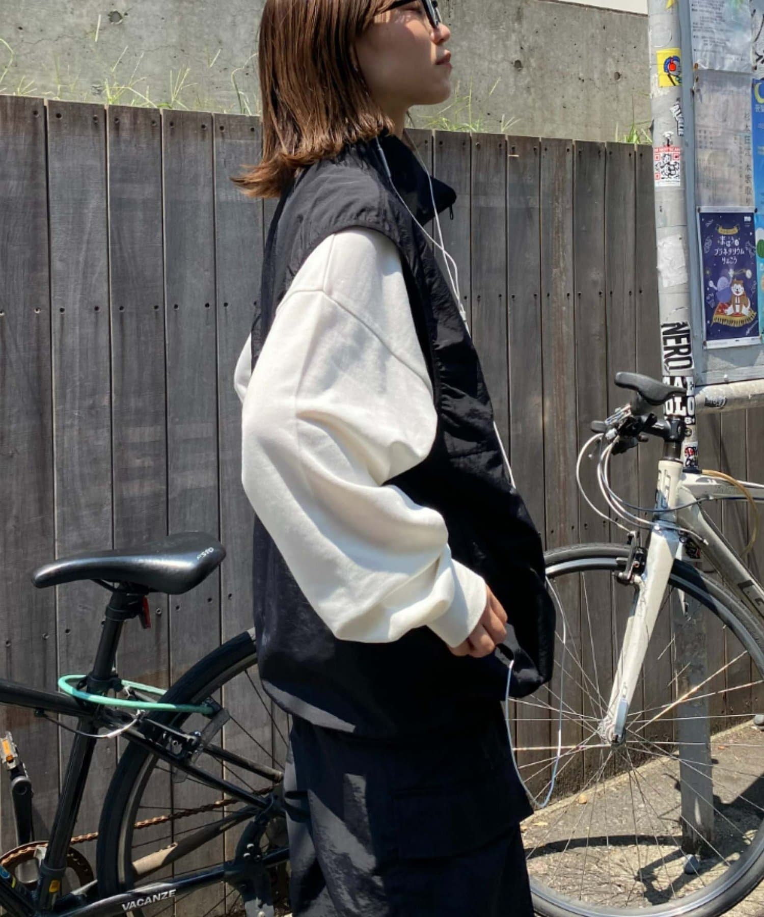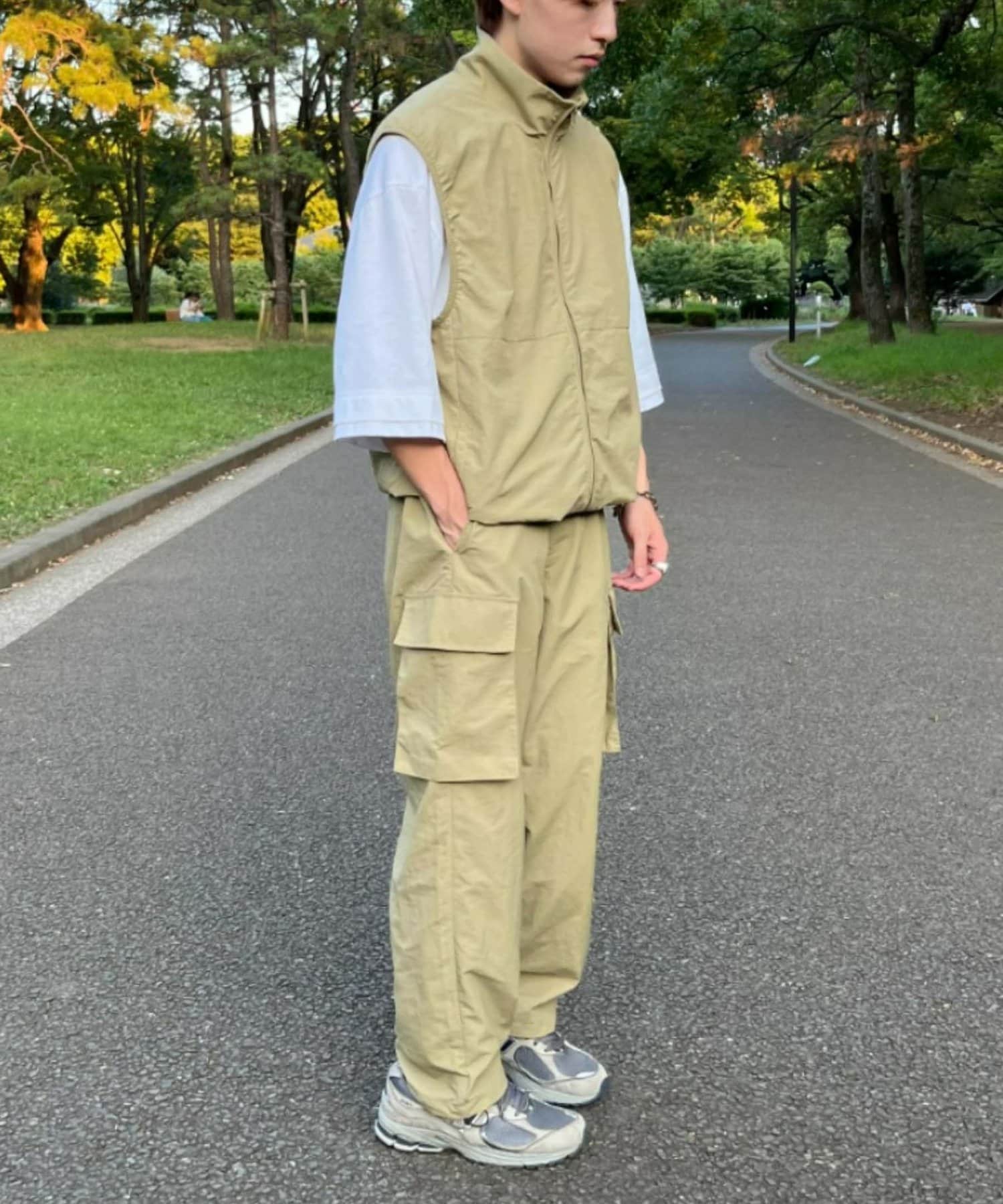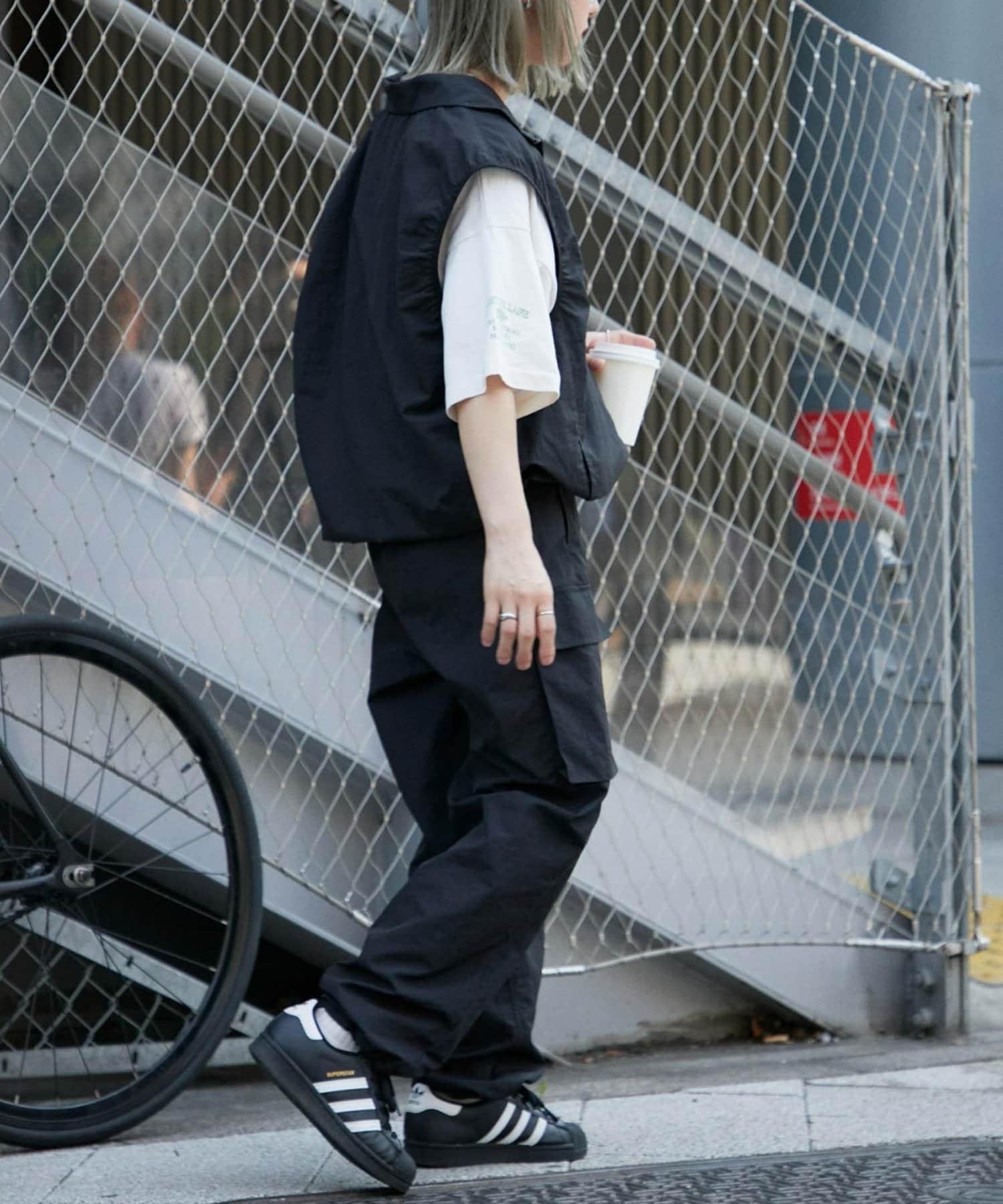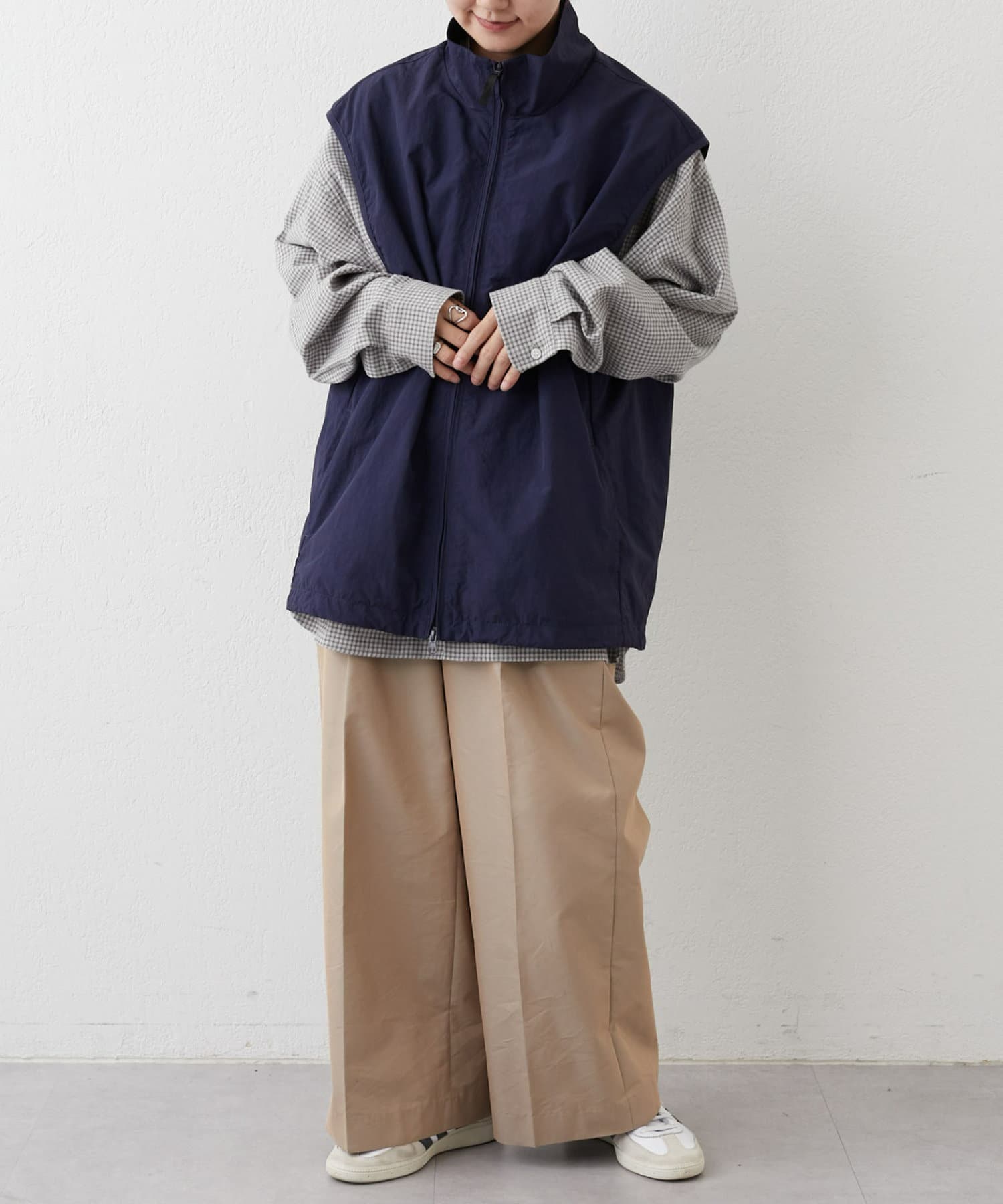 與寬大的褲子搭配也能穿出寬鬆的整體感。