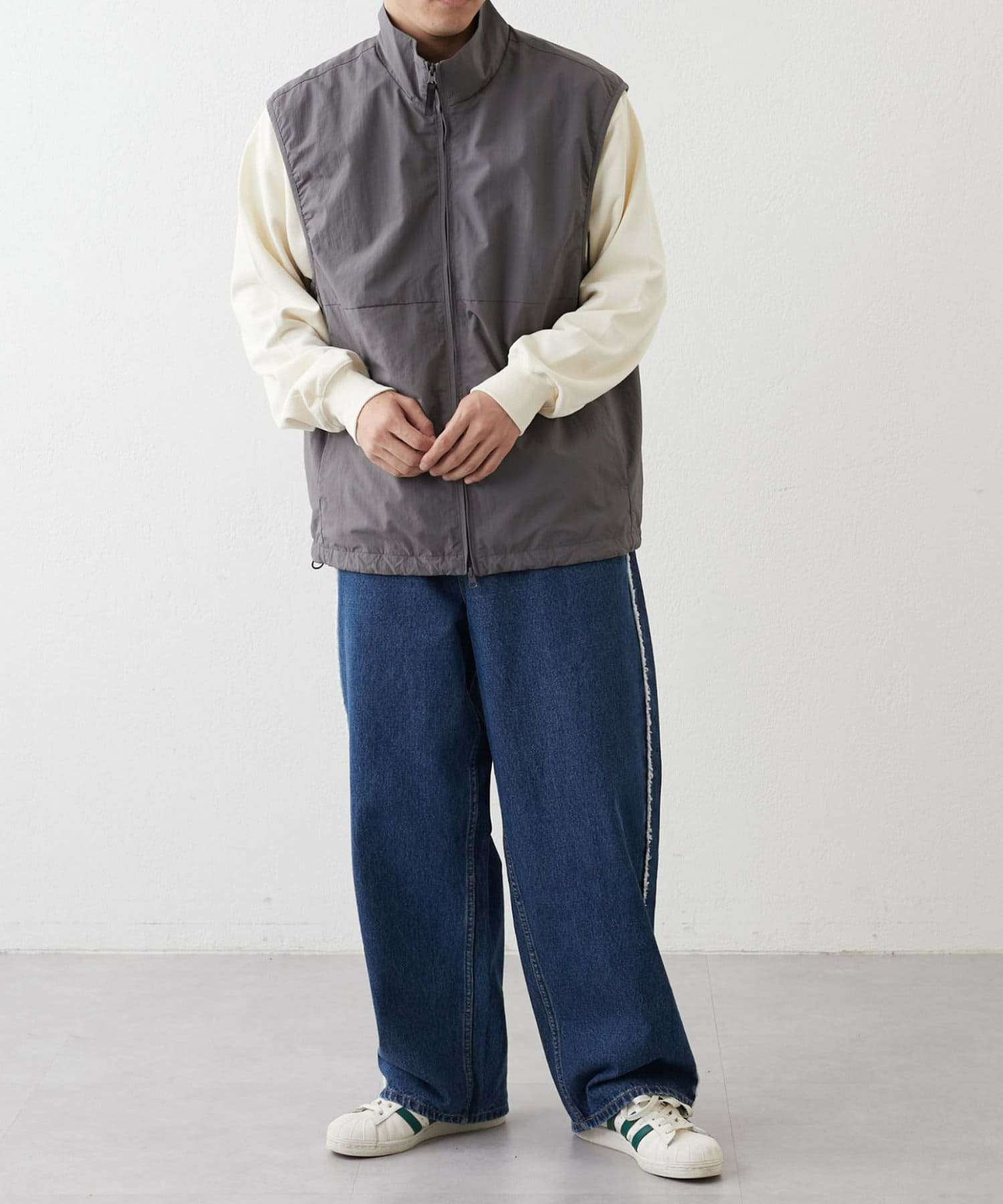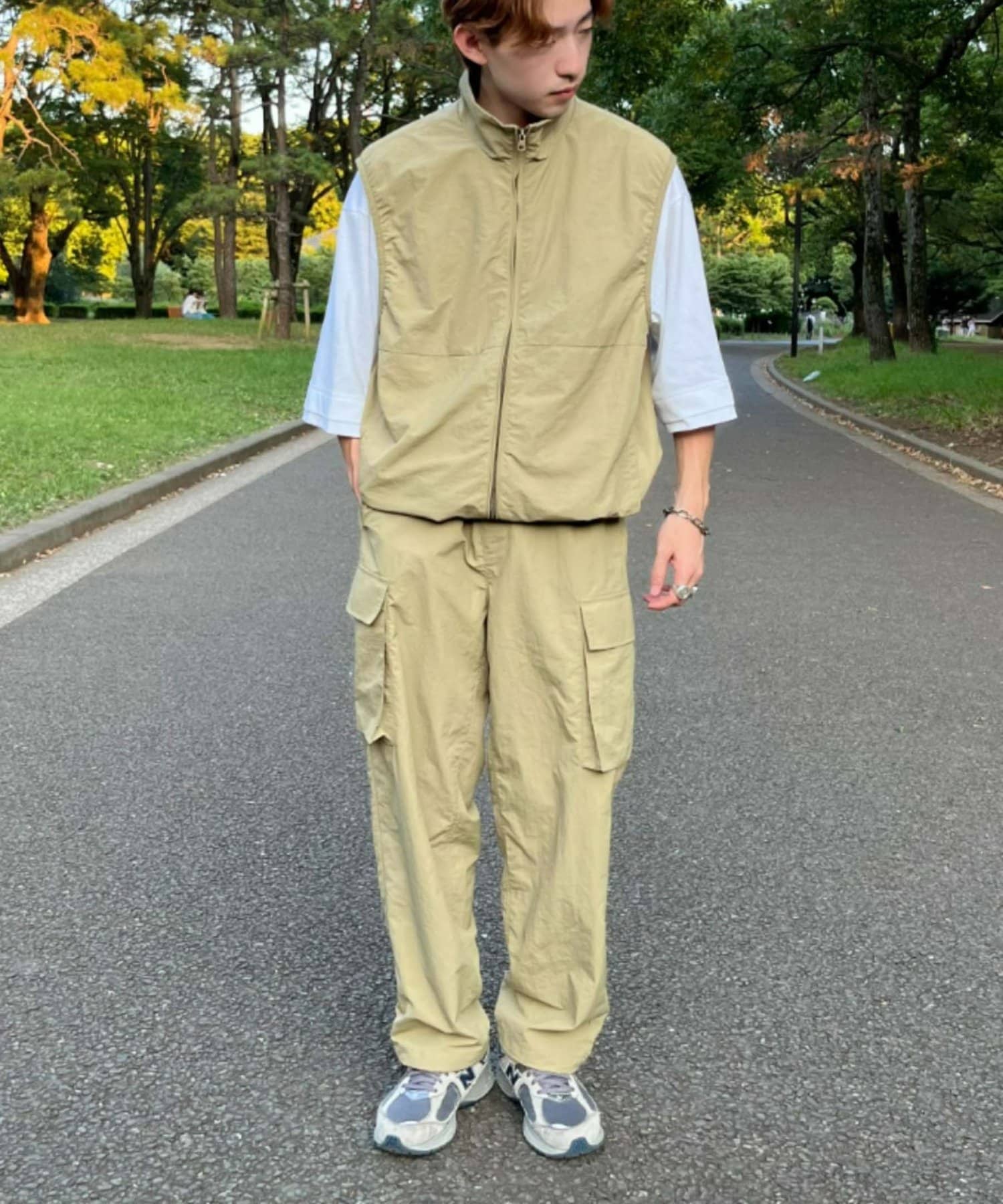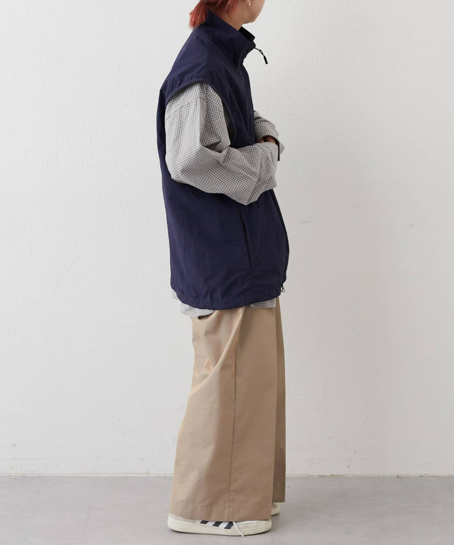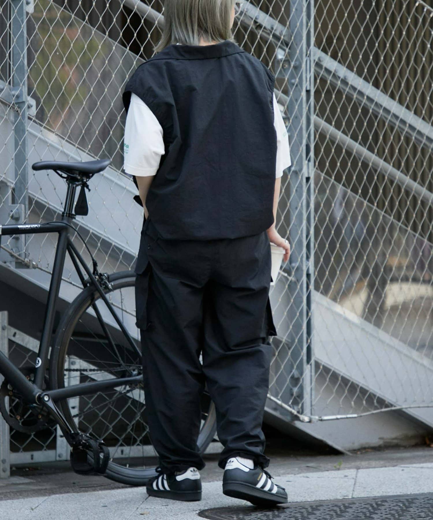 與寬大的褲子搭配也能穿出寬鬆的整體感。