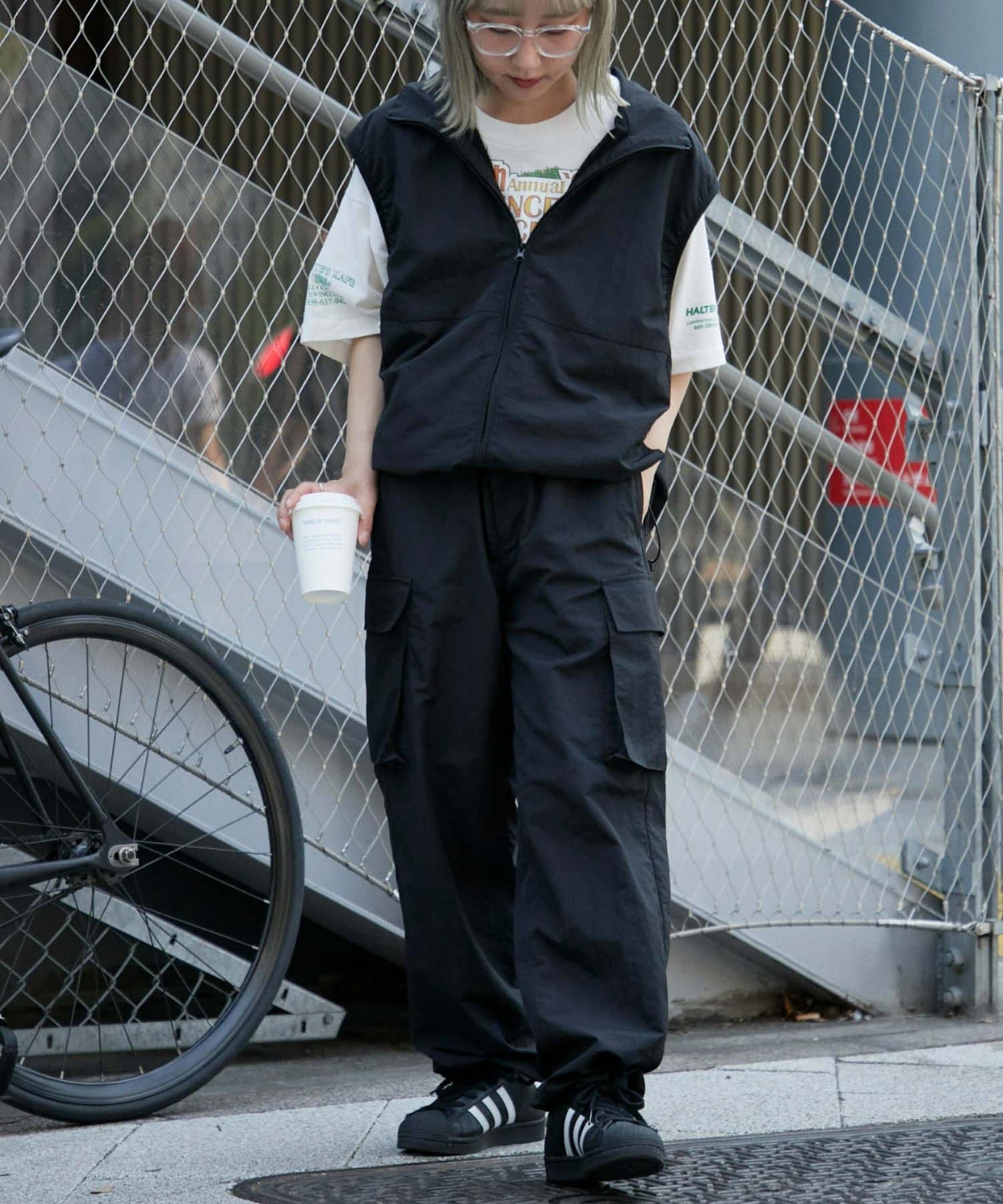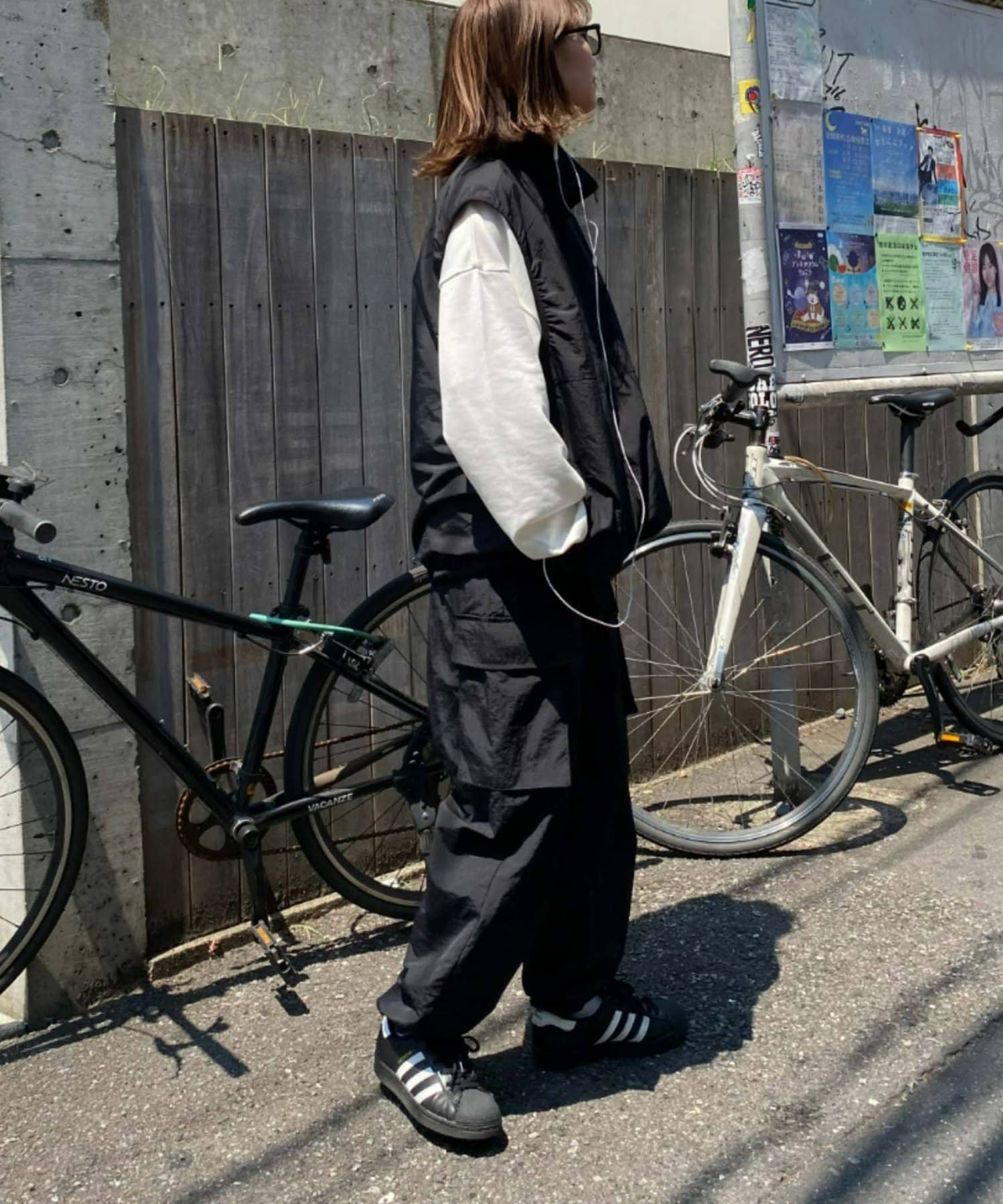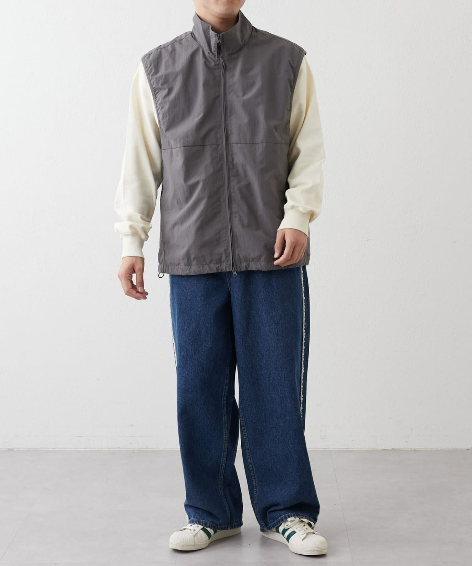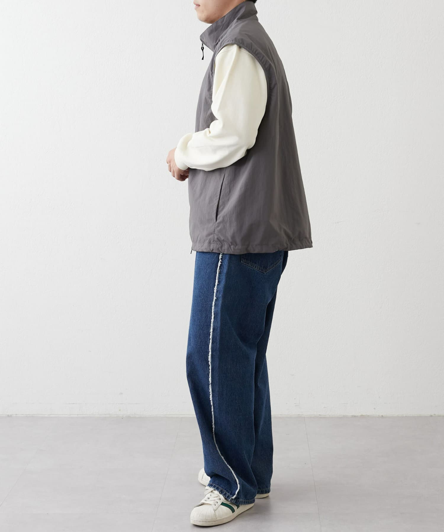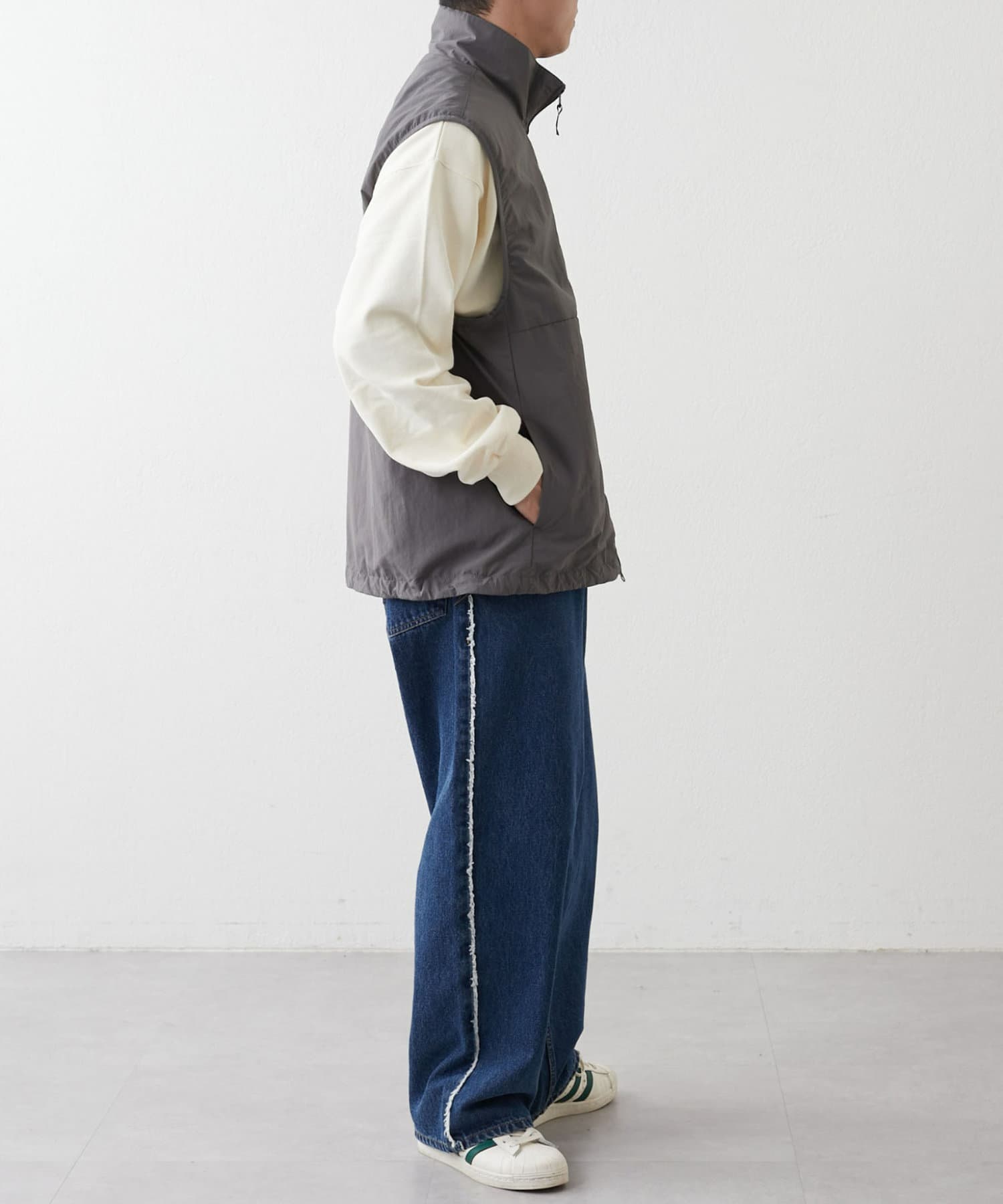 與寬大的褲子搭配也能穿出寬鬆的整體感。