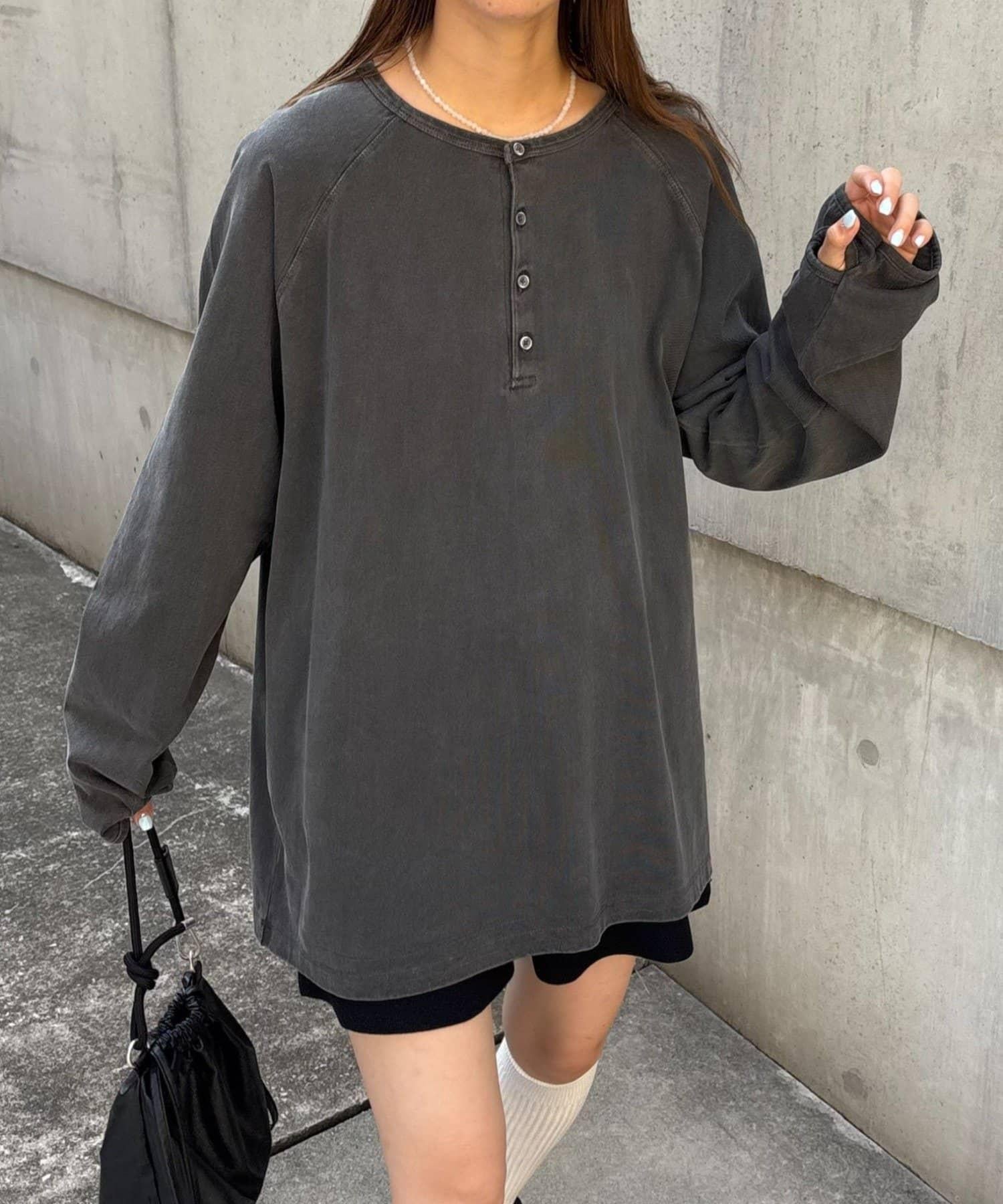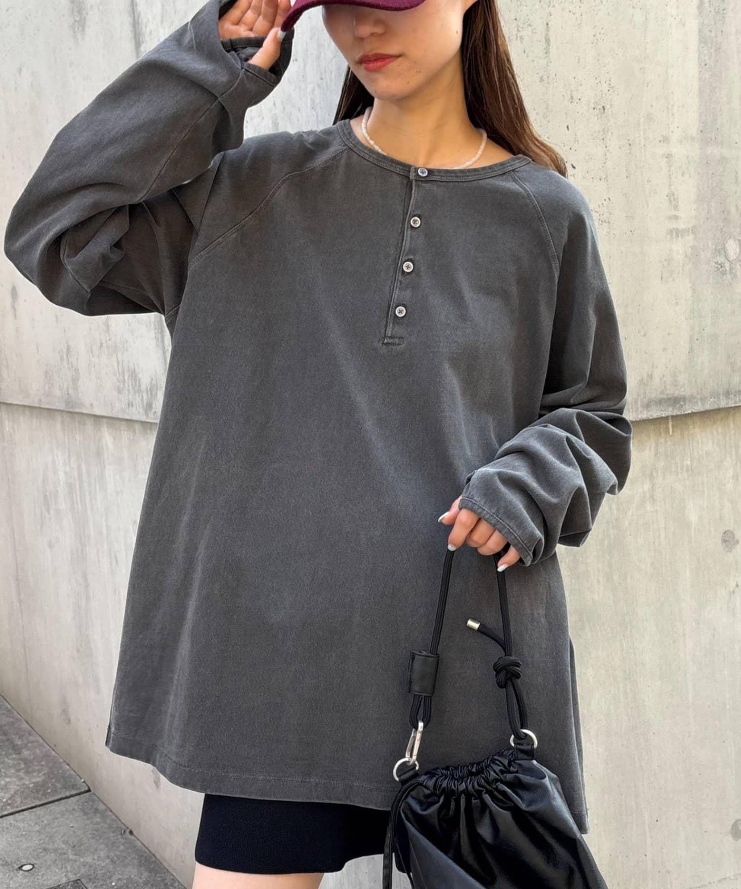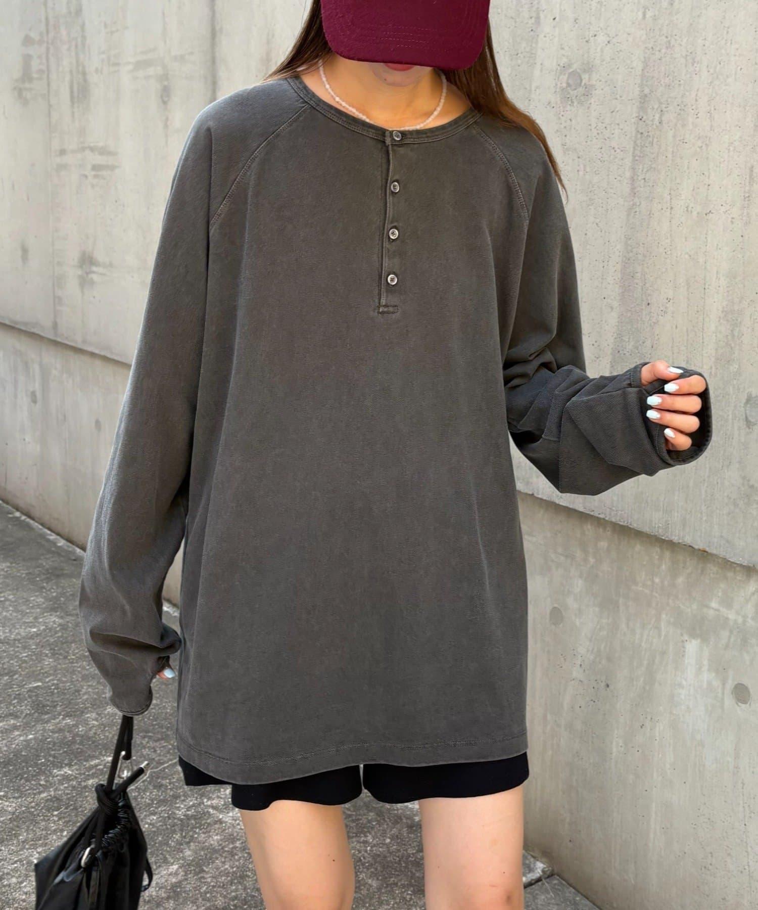 具有復古質感的亨利領上衣。