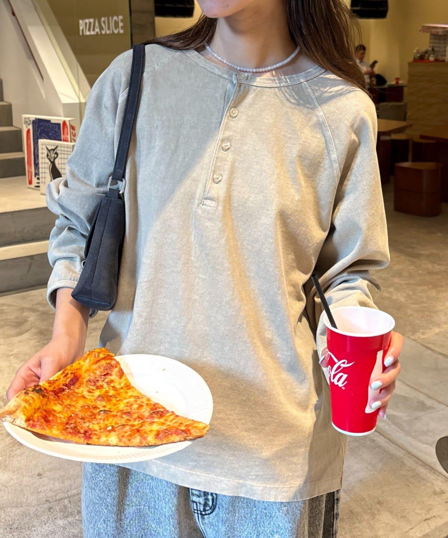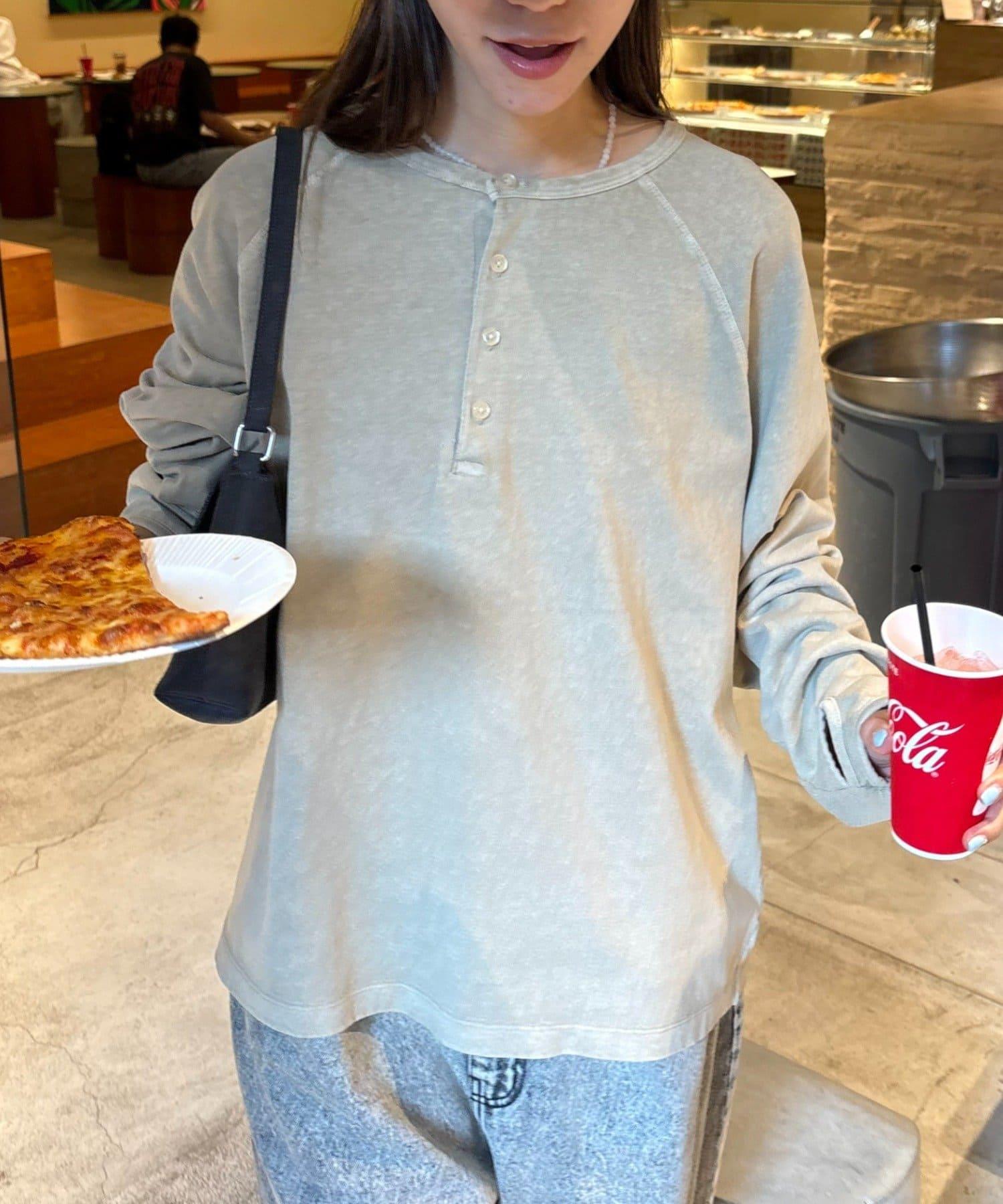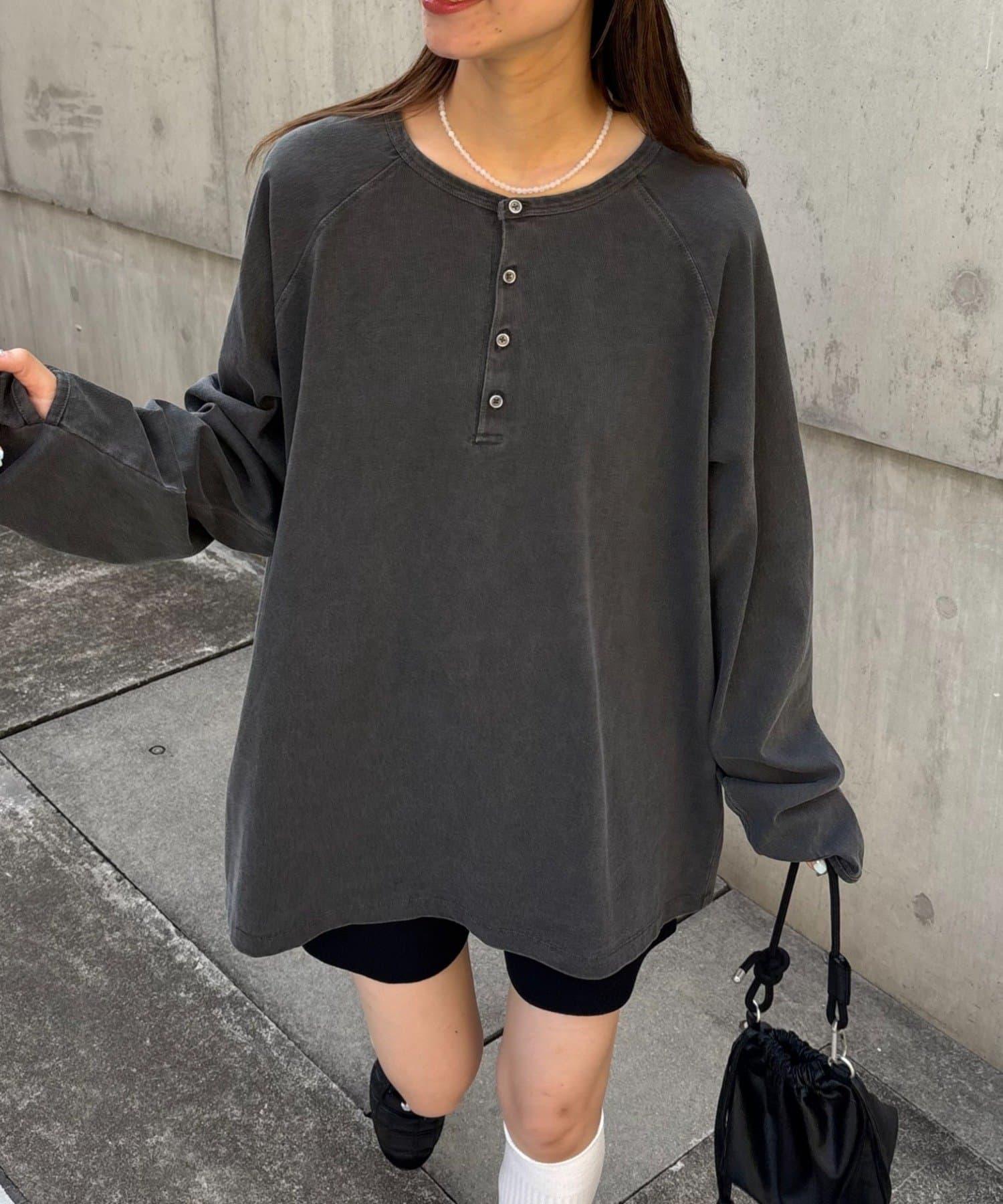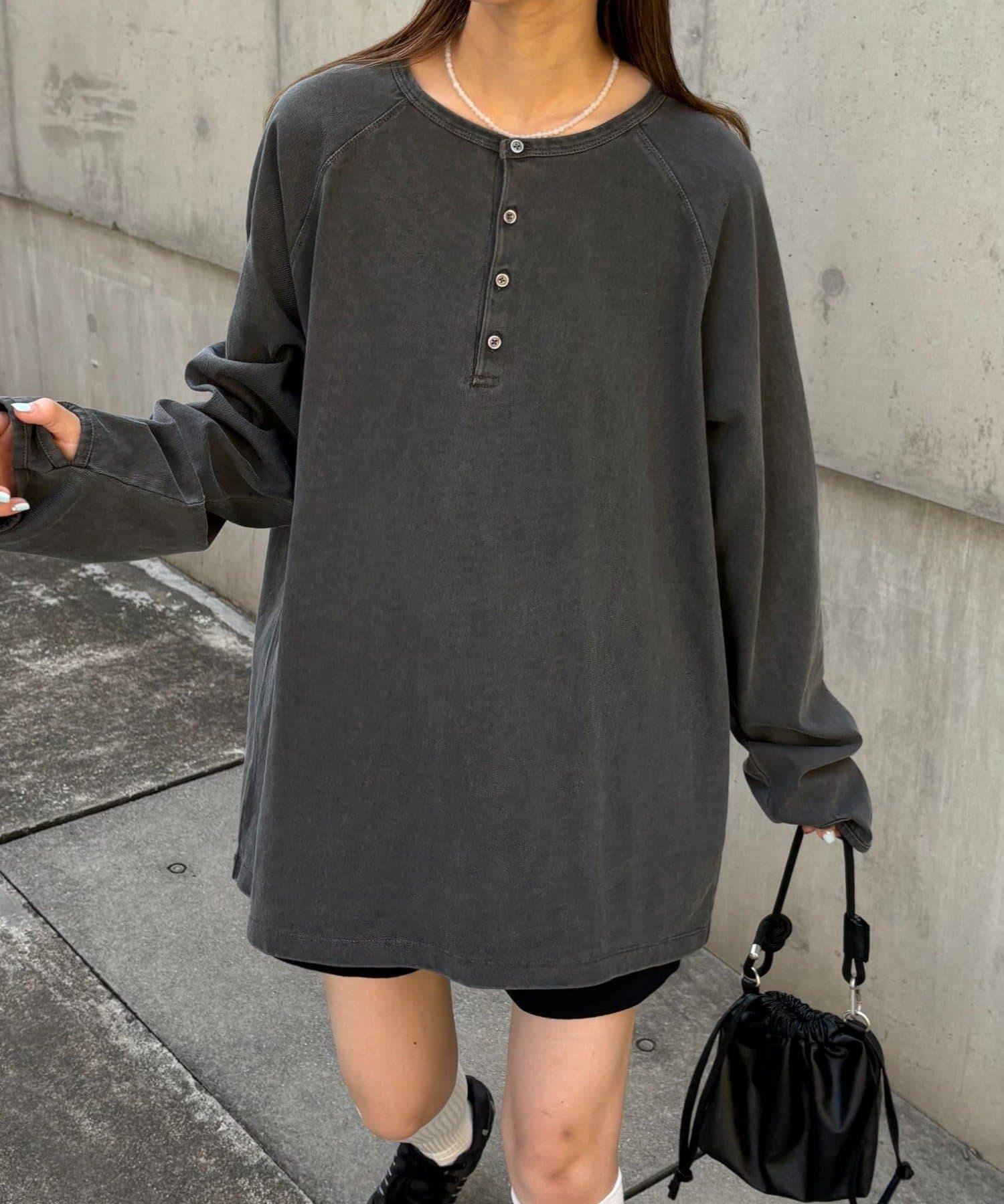 具有復古質感的亨利領上衣。