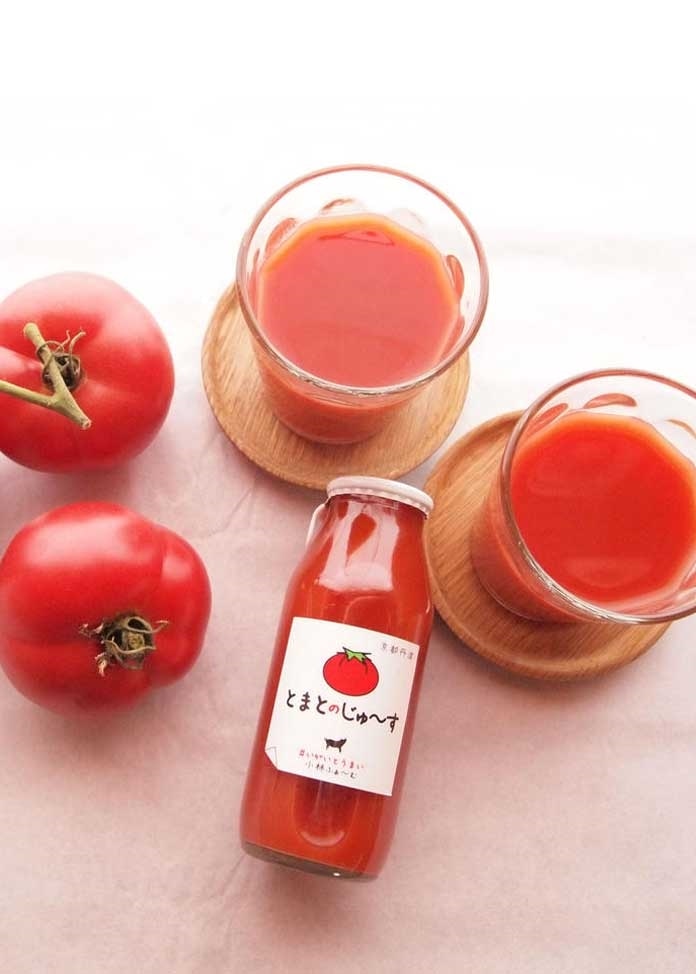 一瓶西紅柿汁包含六個完整的西紅柿。番茄汁是由使用特殊農業方法栽培的成熟桃太郎番茄榨取而成。果汁中不添加任何鹽、糖、添加劑或水,在不添加任何調味品的情況下提供番茄的真實味道。