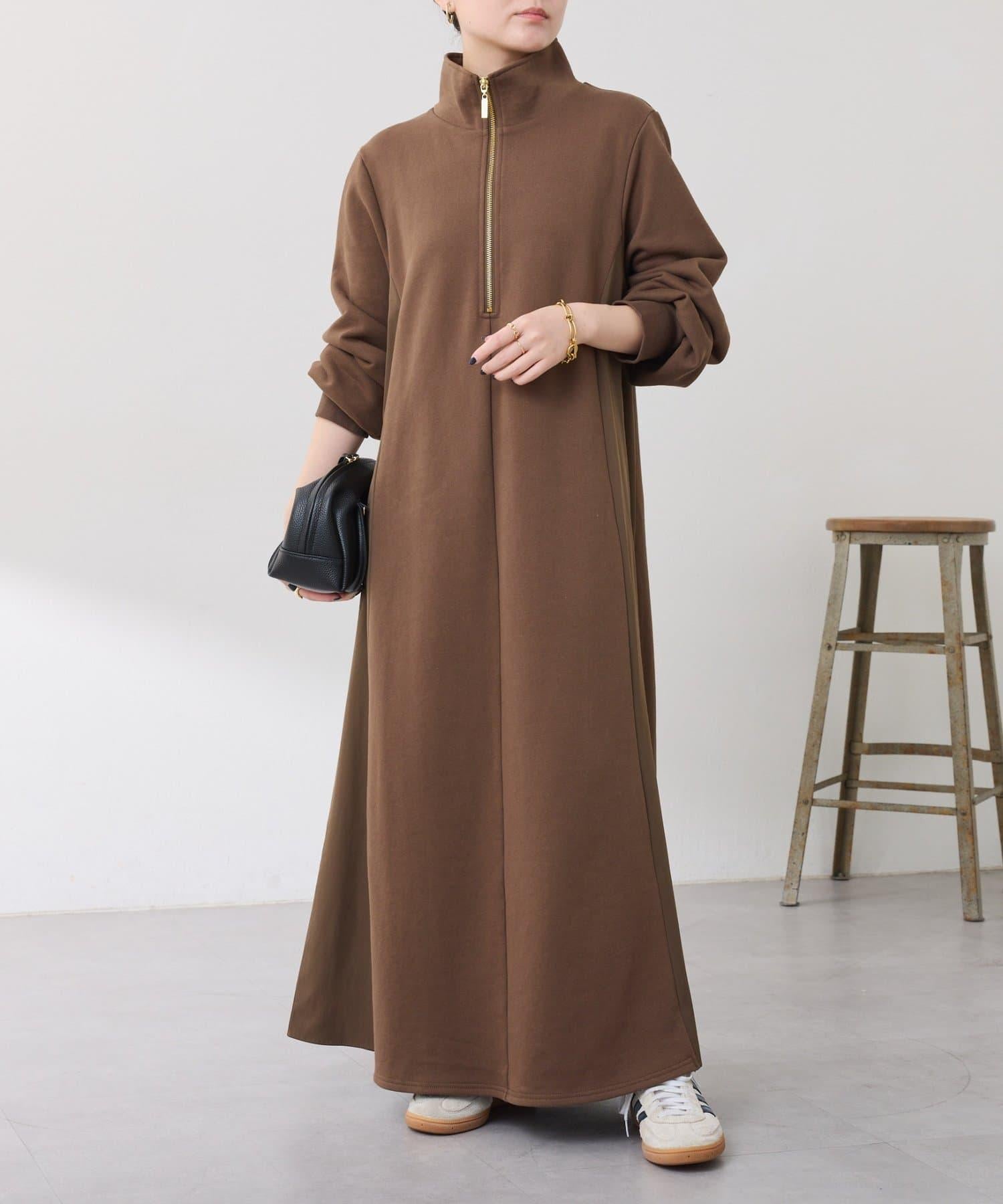 連衣裙通過對接產生了長款效果,過渡的線條略微收窄,顯得更加修身。