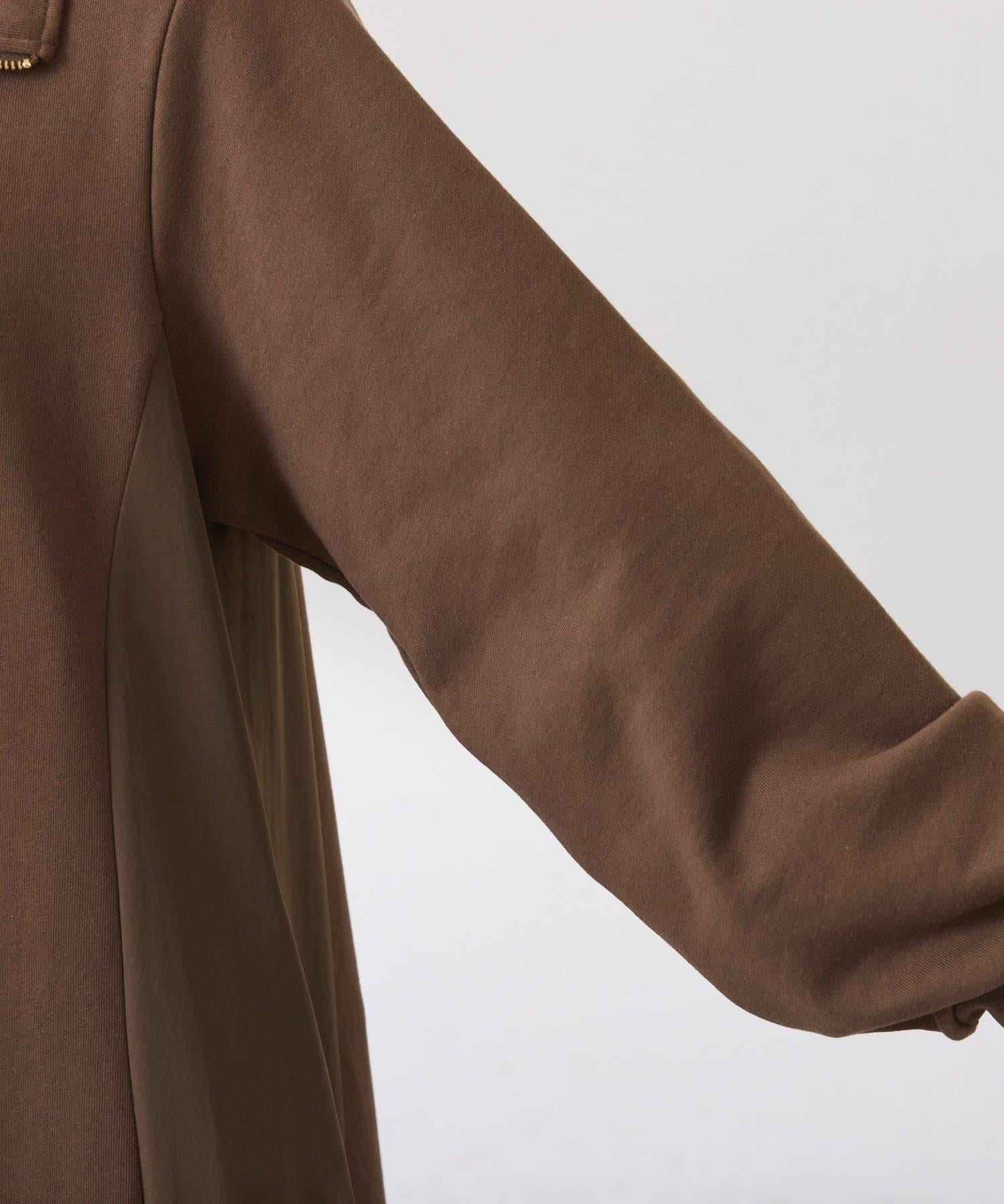 衛衣面料給人休閒的感覺,但在側面部分與襯衫面料相結合,又給人一種美感。
