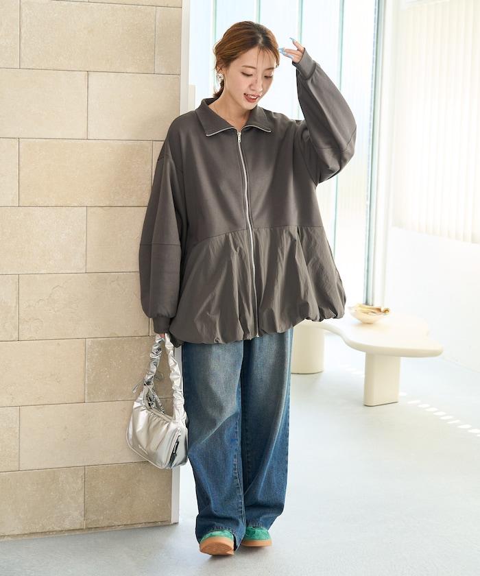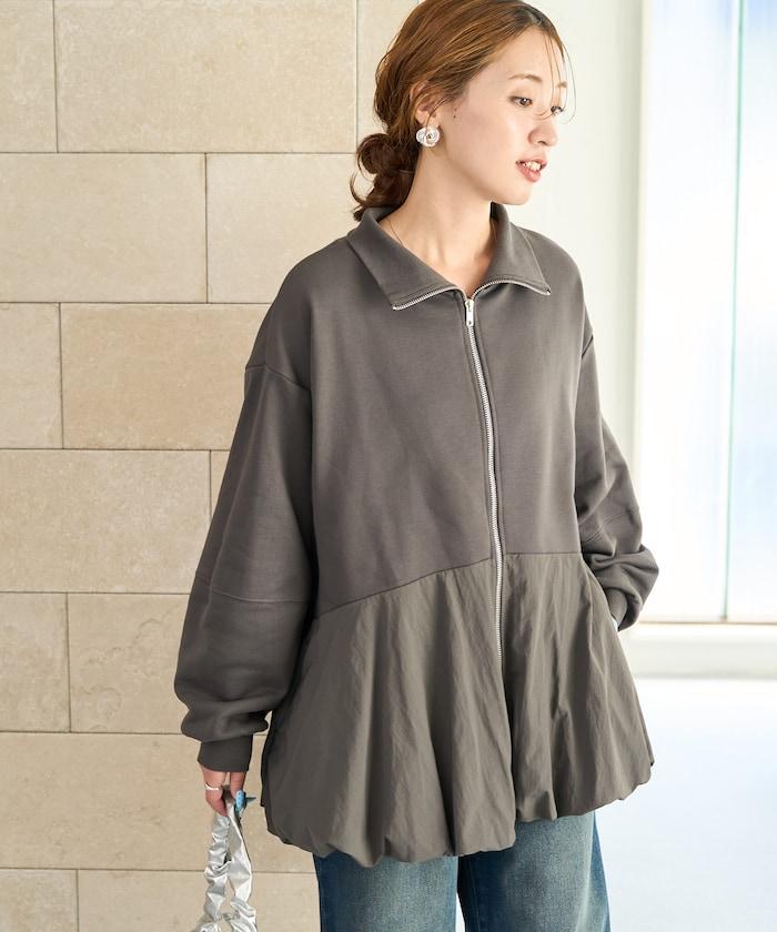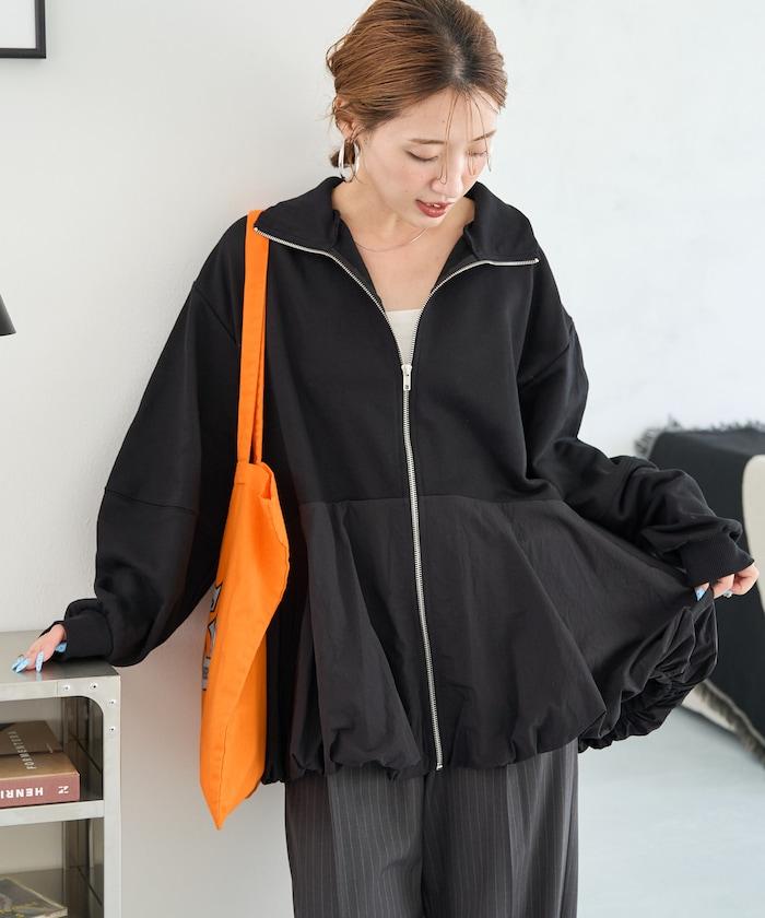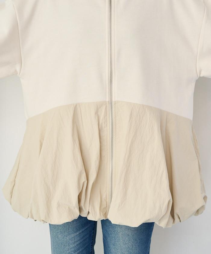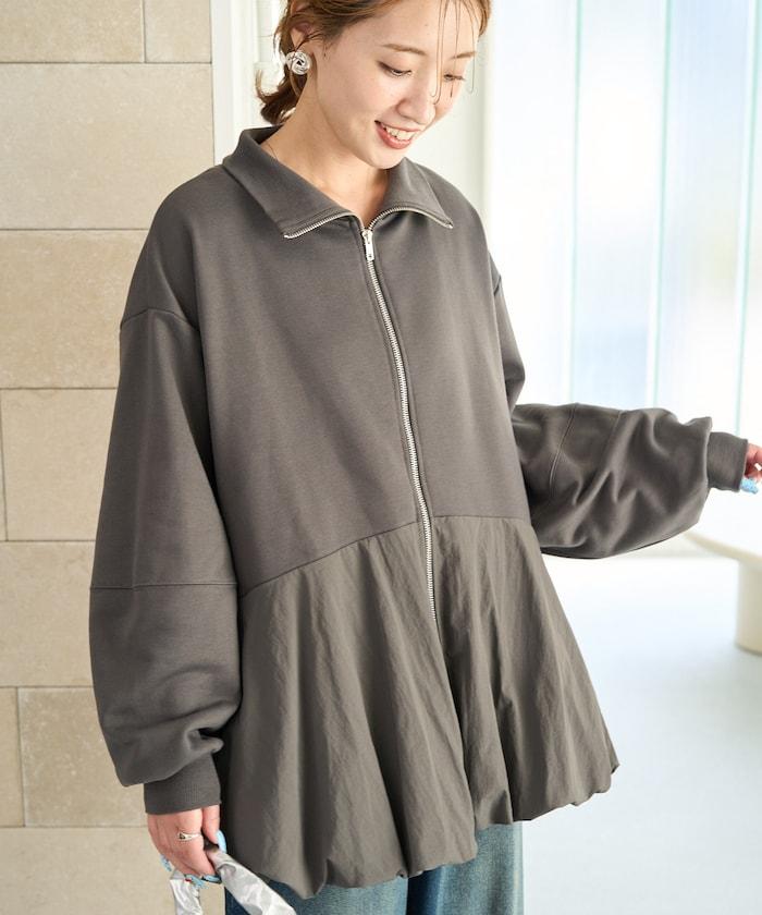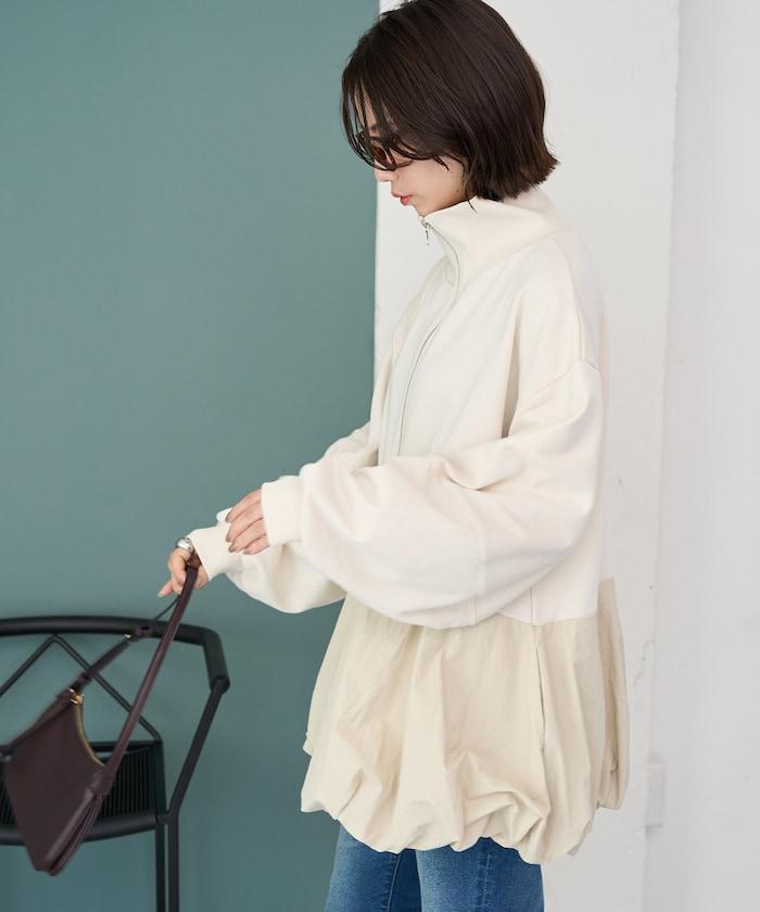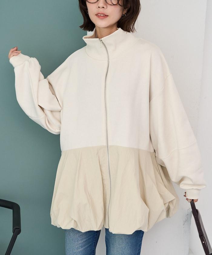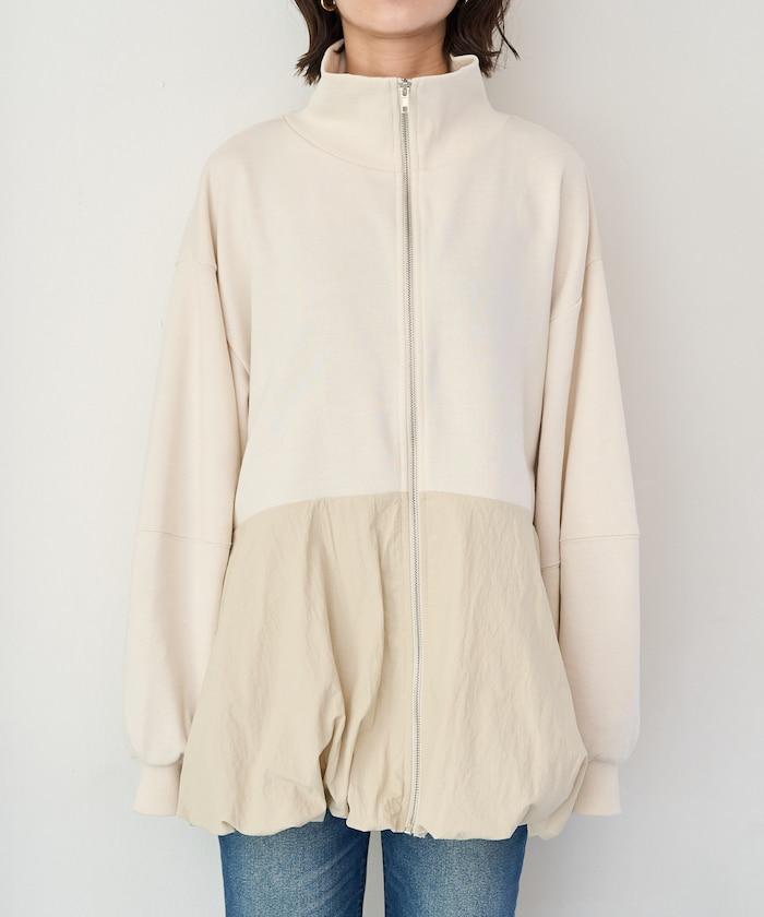 異材質拼接氣球袖全拉鍊套頭衫