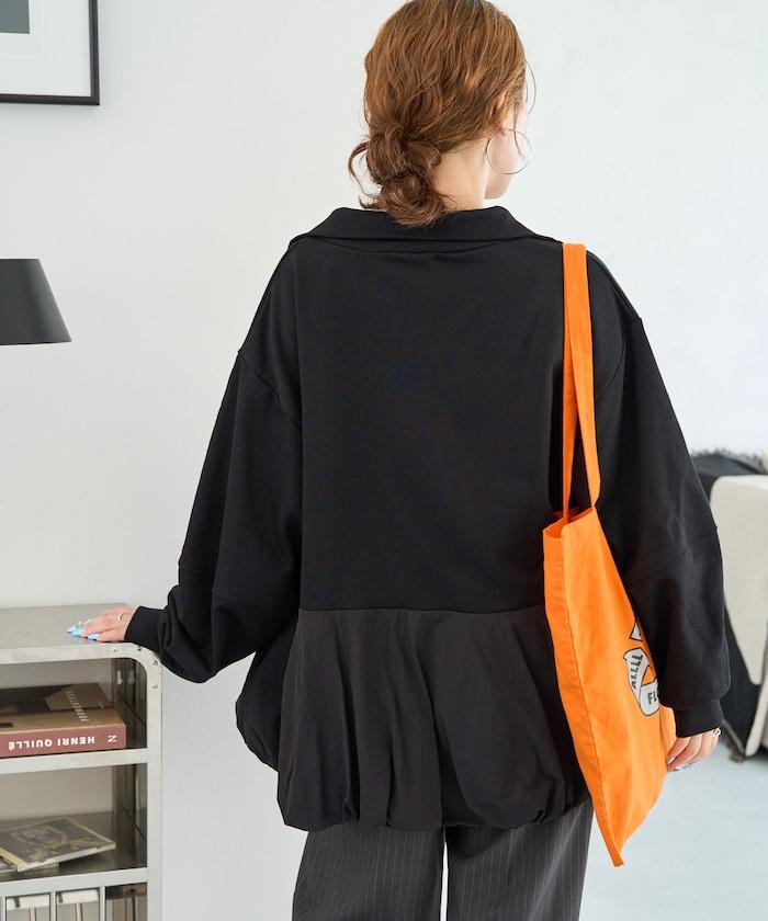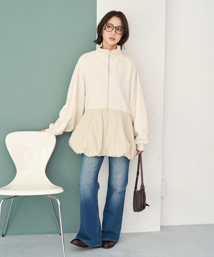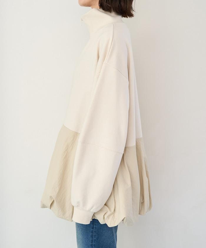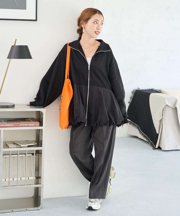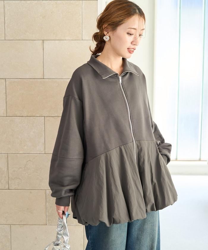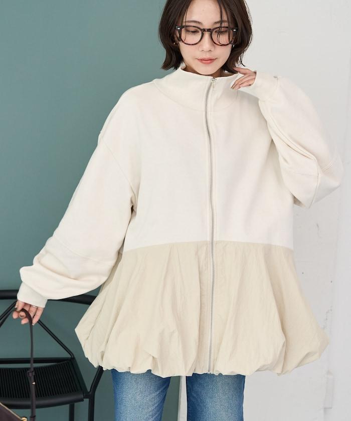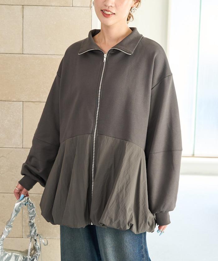 異材質拼接氣球袖全拉鍊套頭衫