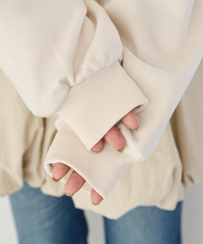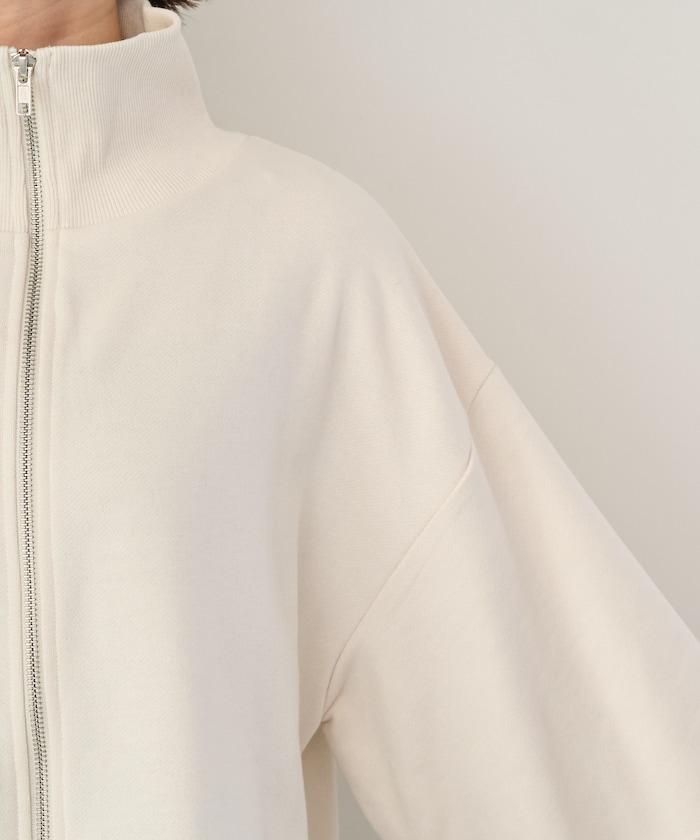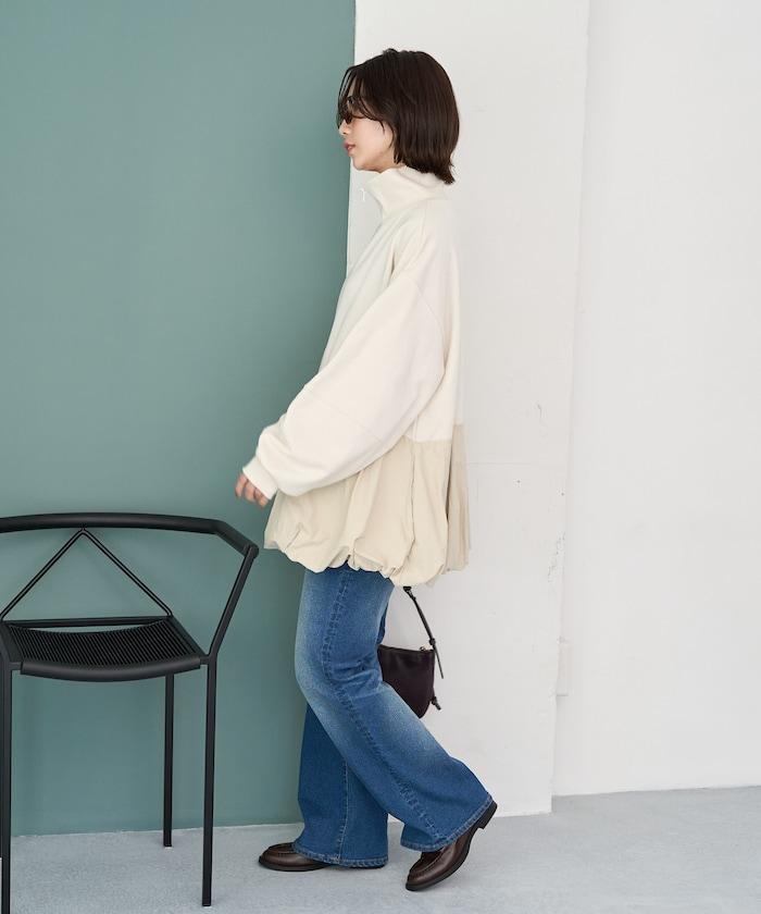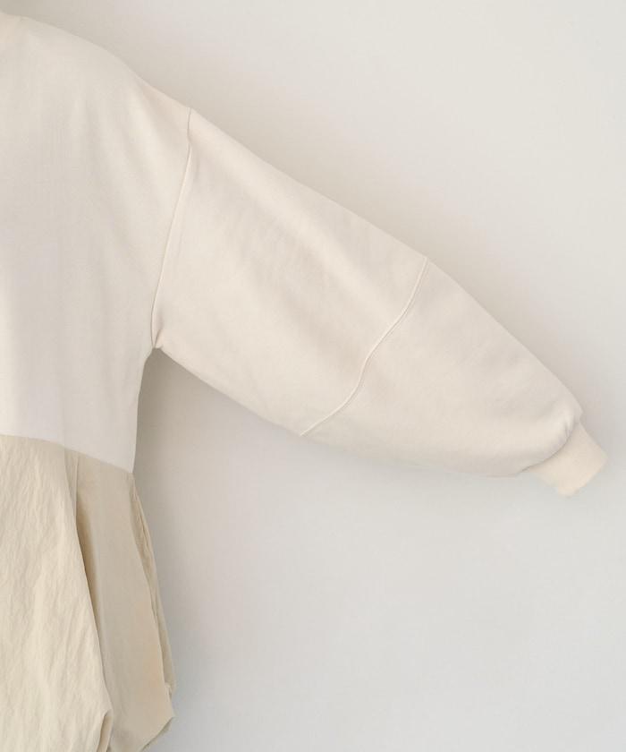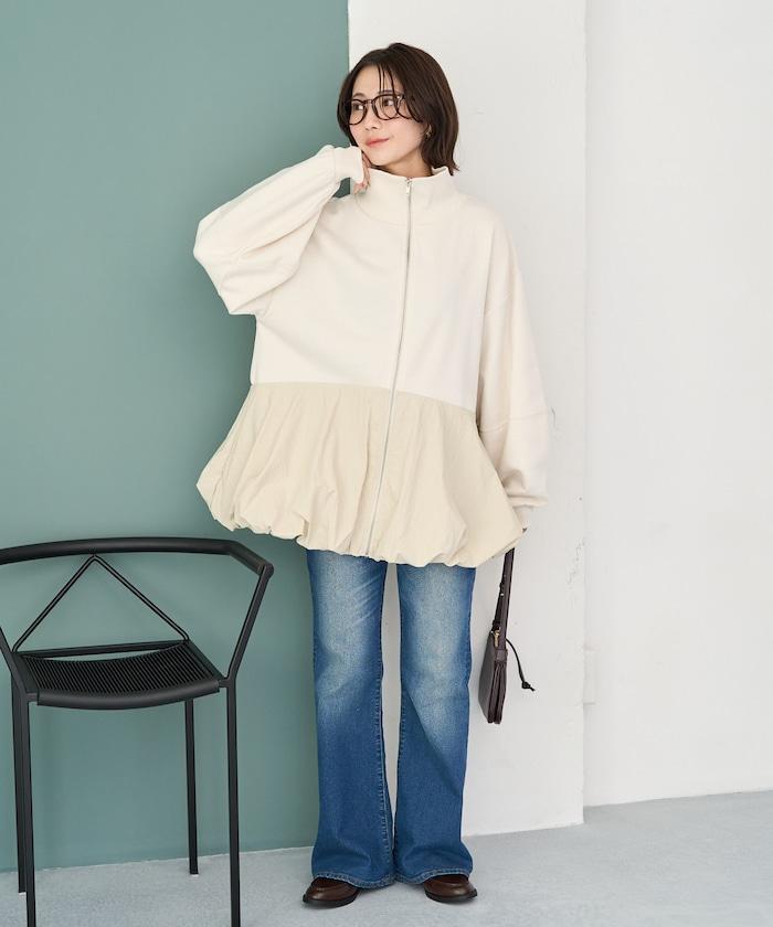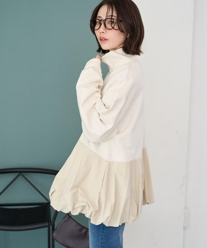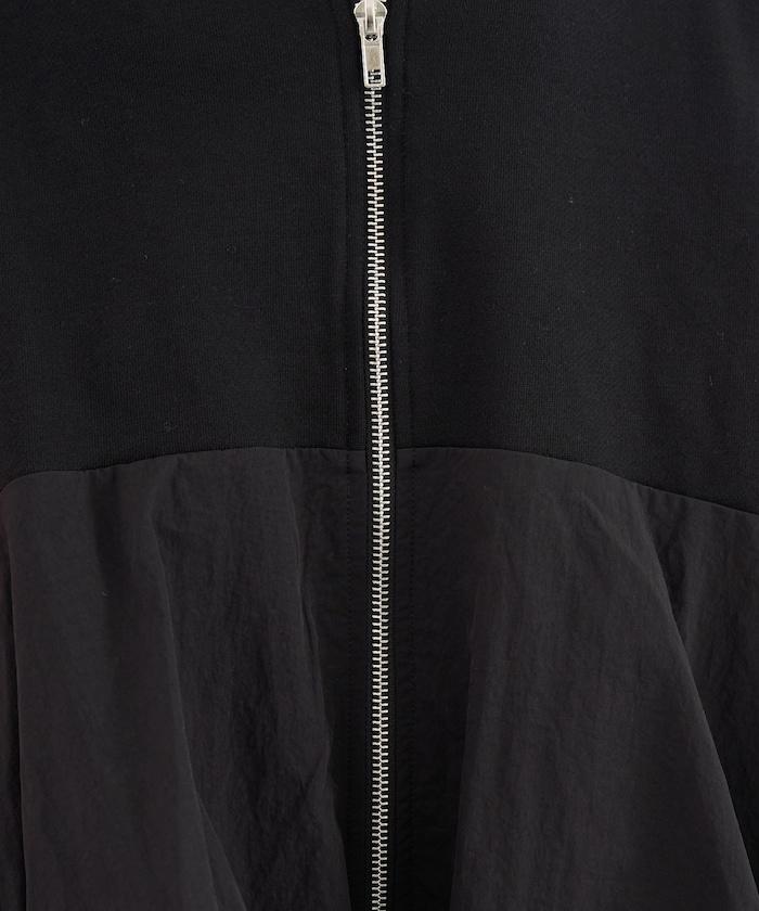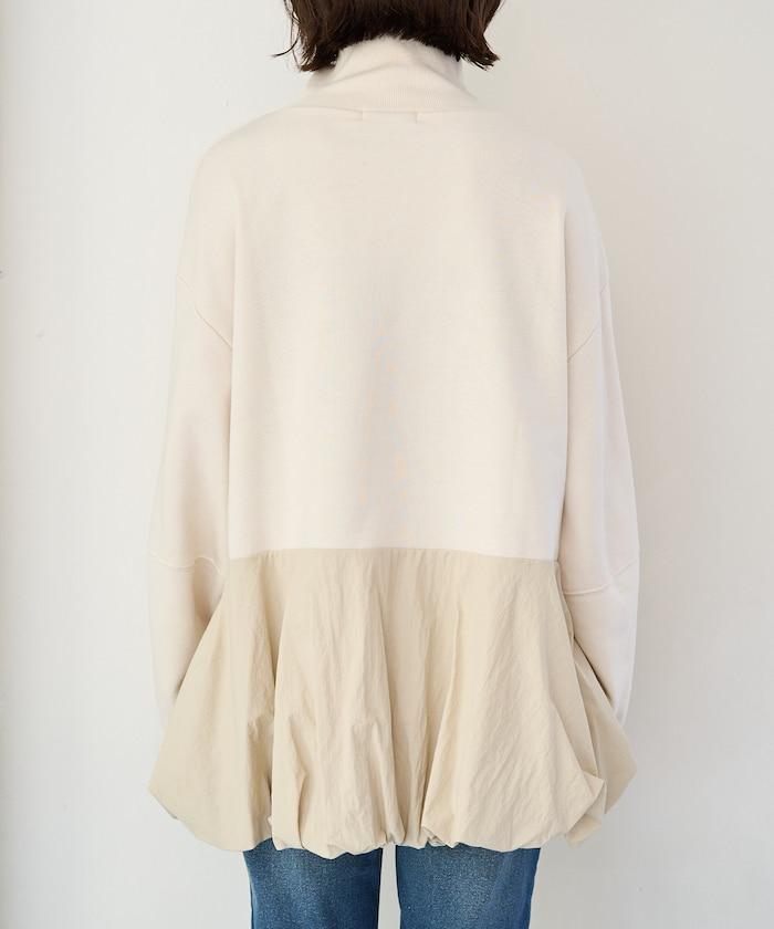 異材質拼接氣球袖全拉鍊套頭衫