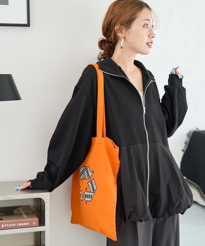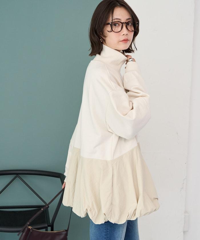 全拉鍊套頭衫,採用不同材質和氣球廓形,獨具時尚氣息。