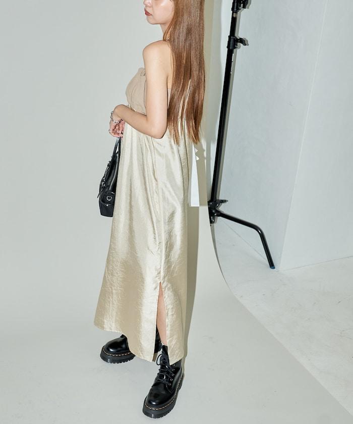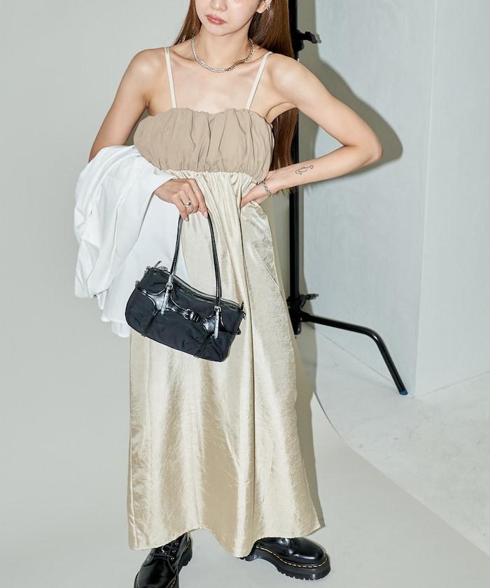異素材 蓬蓬裙 緞面 連衣裙 限定推出