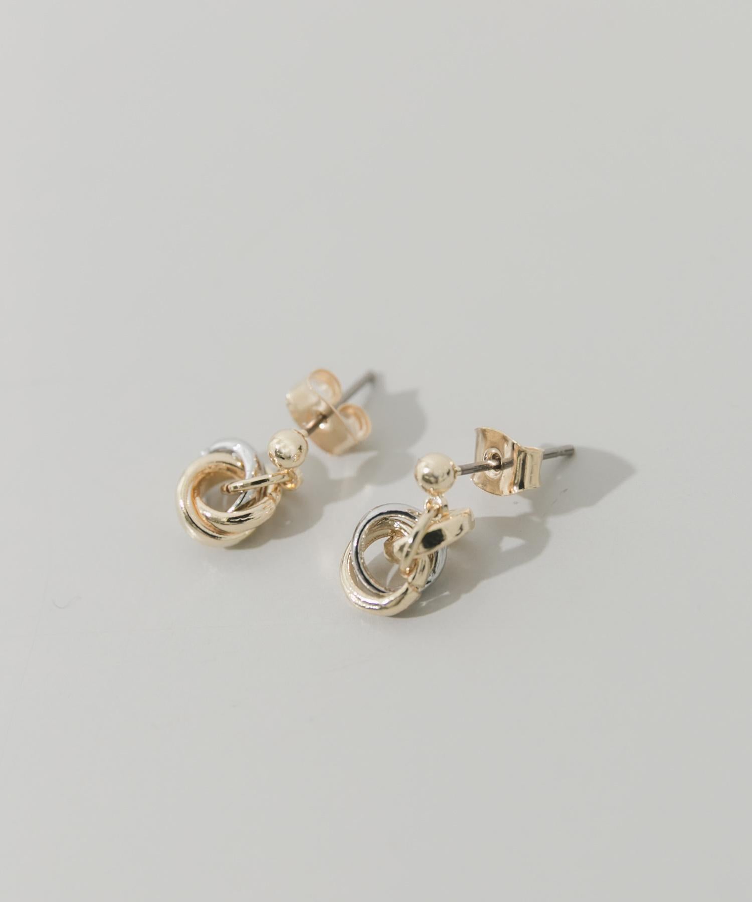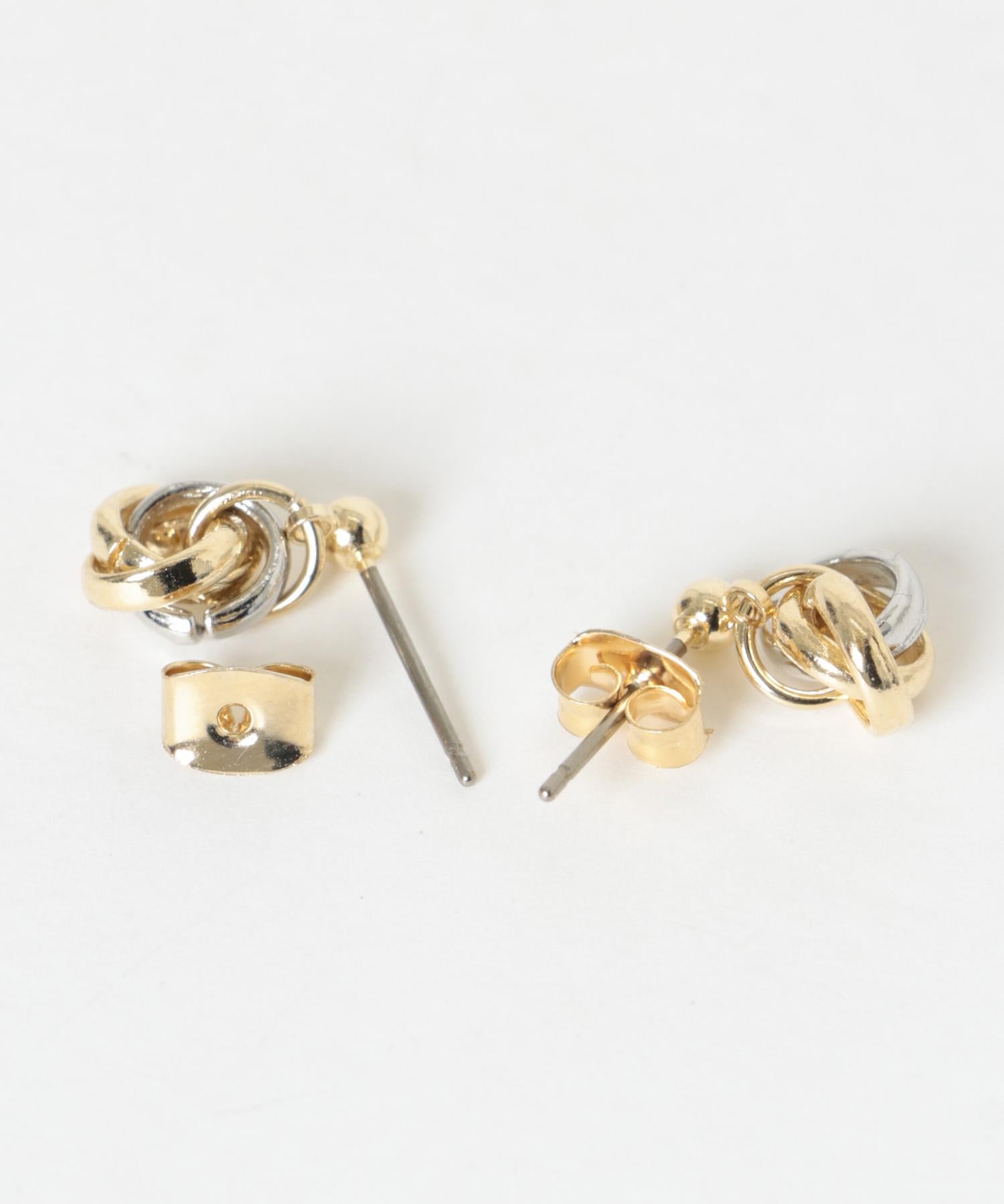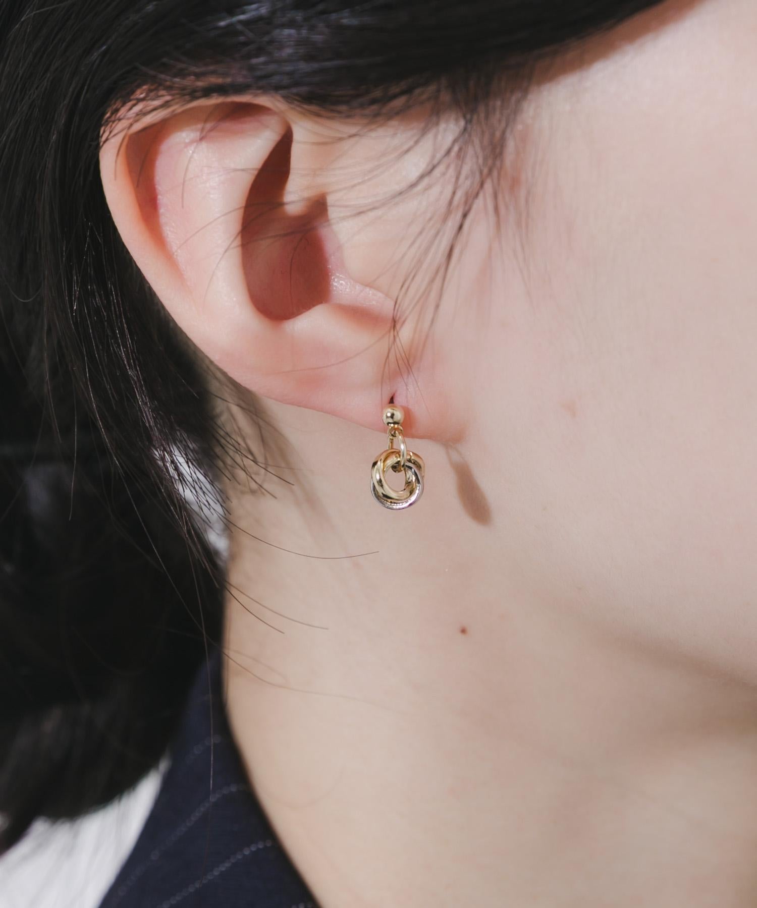 耳環採用金銀小環交織的繩結設計。