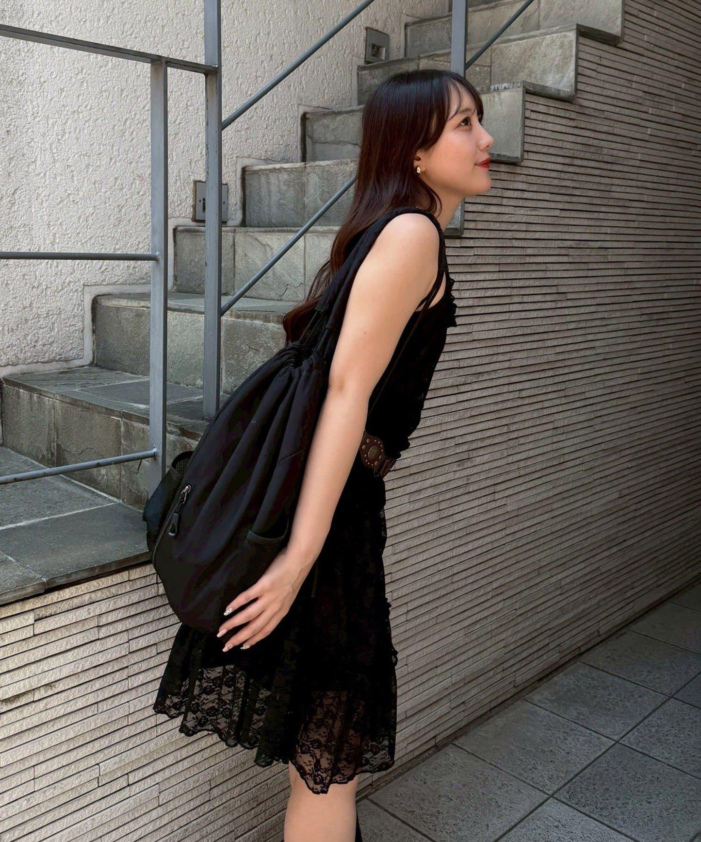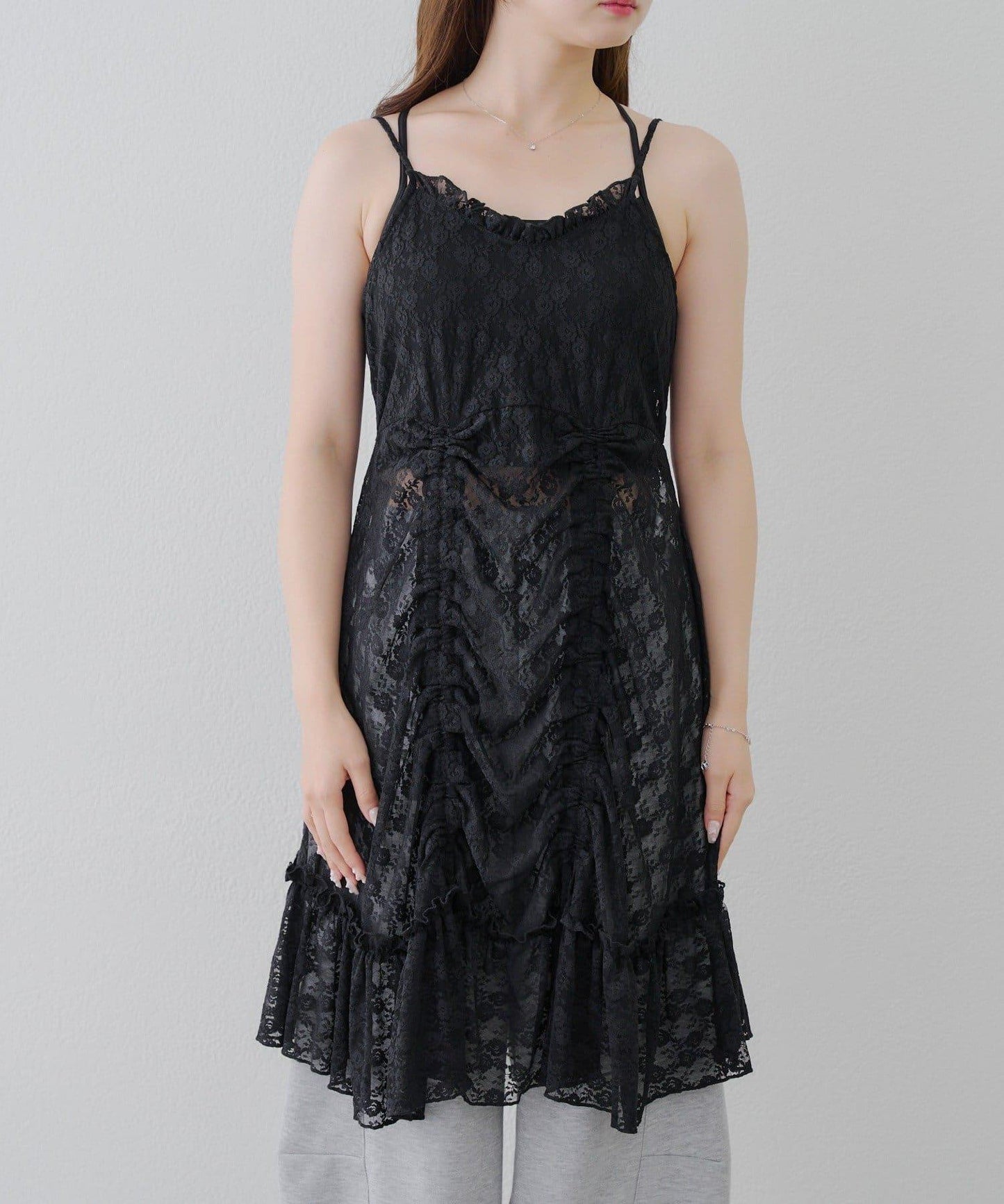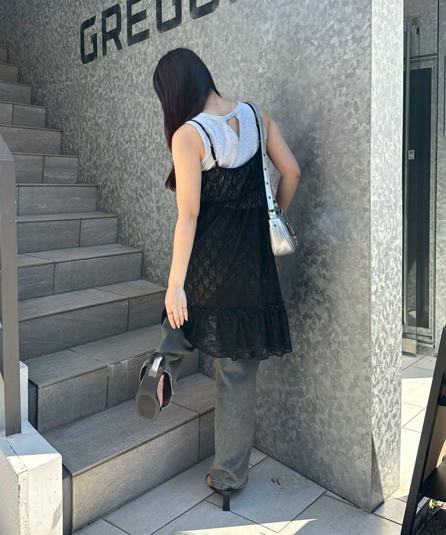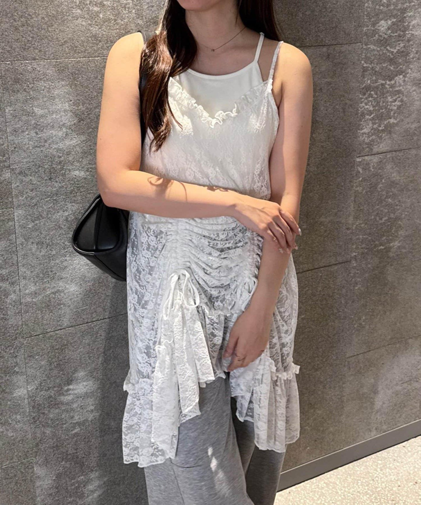 【疊穿必備!】蕾絲抽繩吊帶連衣裙