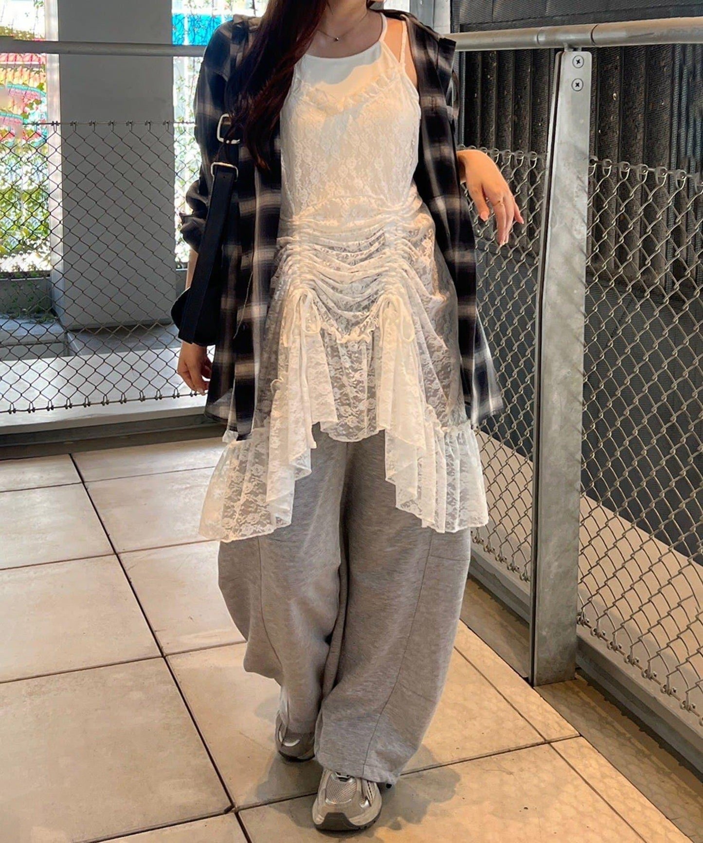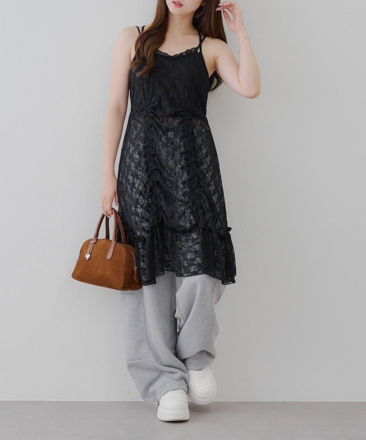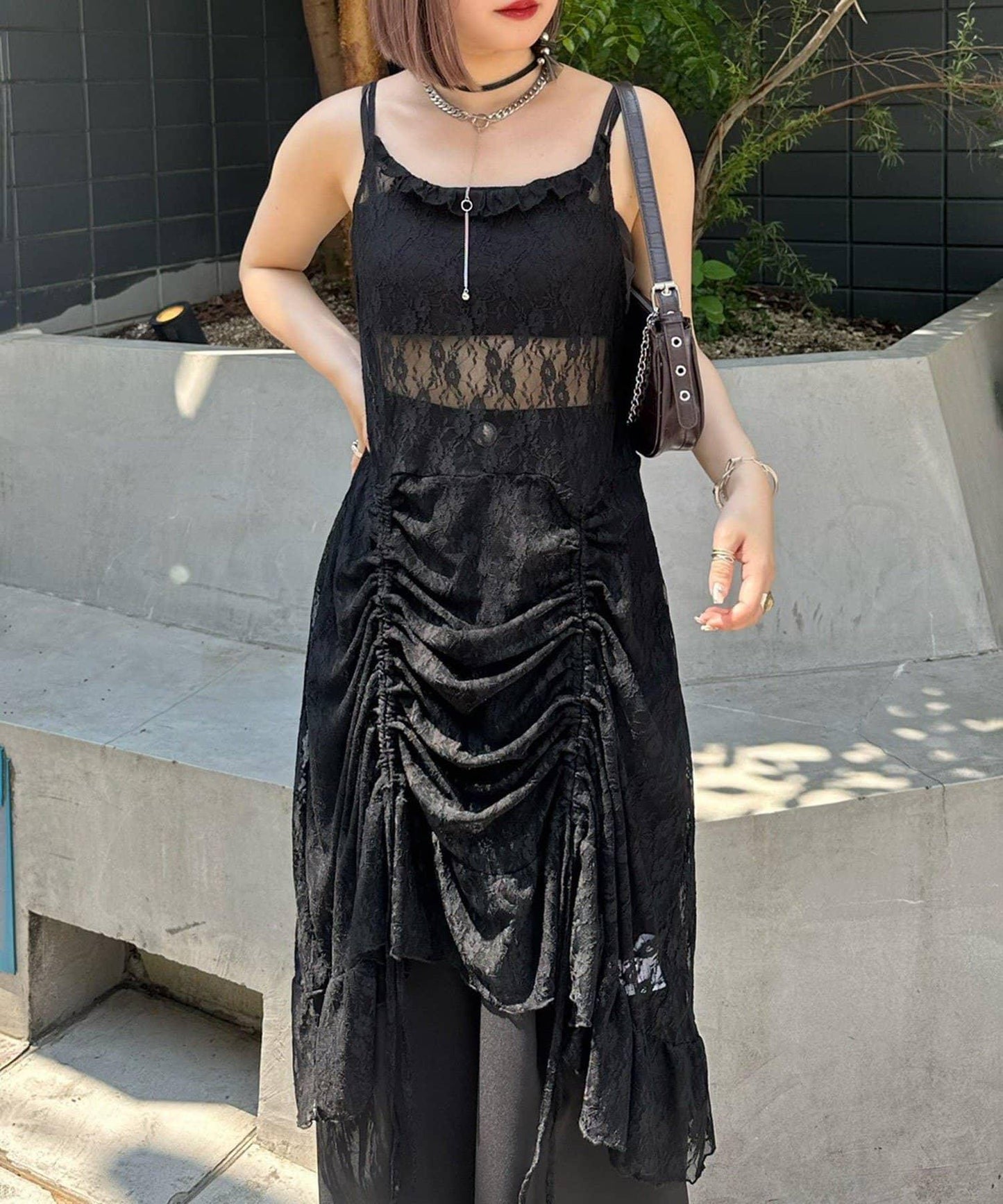 【疊穿必備!】蕾絲抽繩吊帶連衣裙