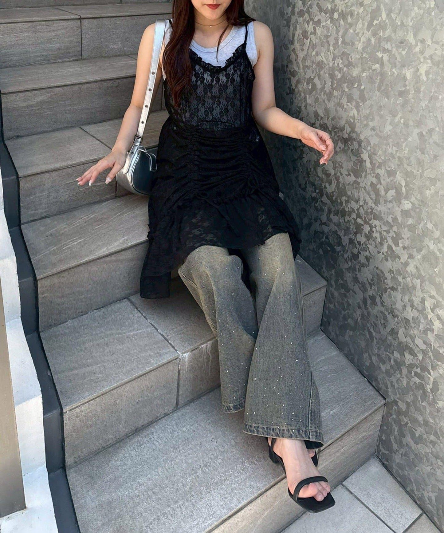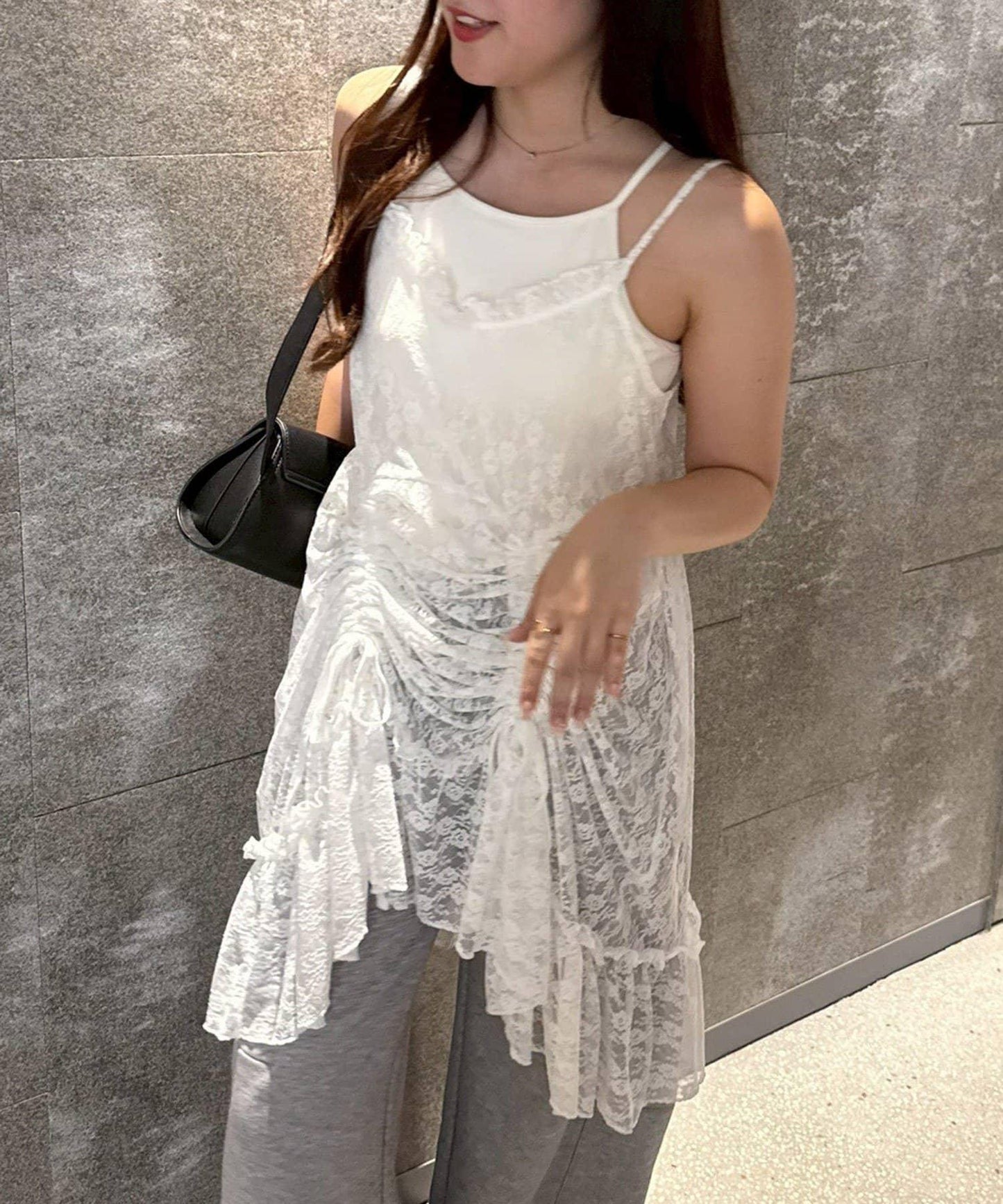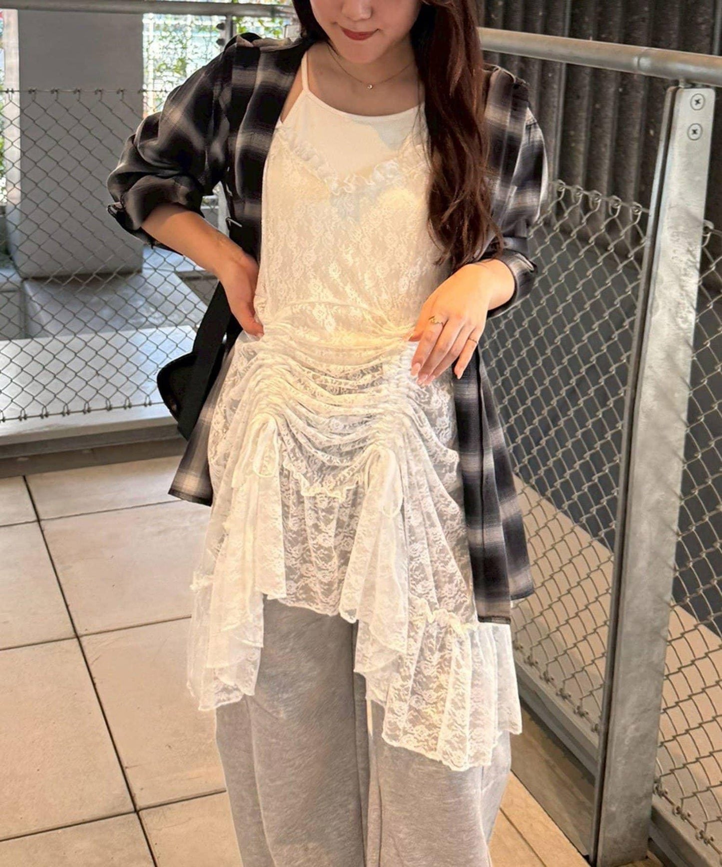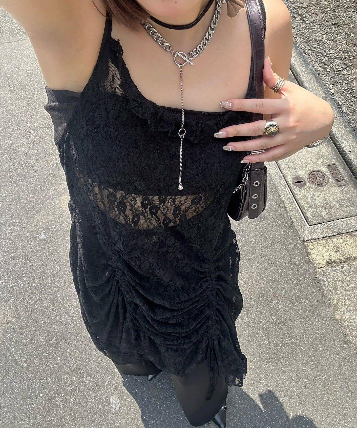 【疊穿必備!】蕾絲抽繩吊帶連衣裙