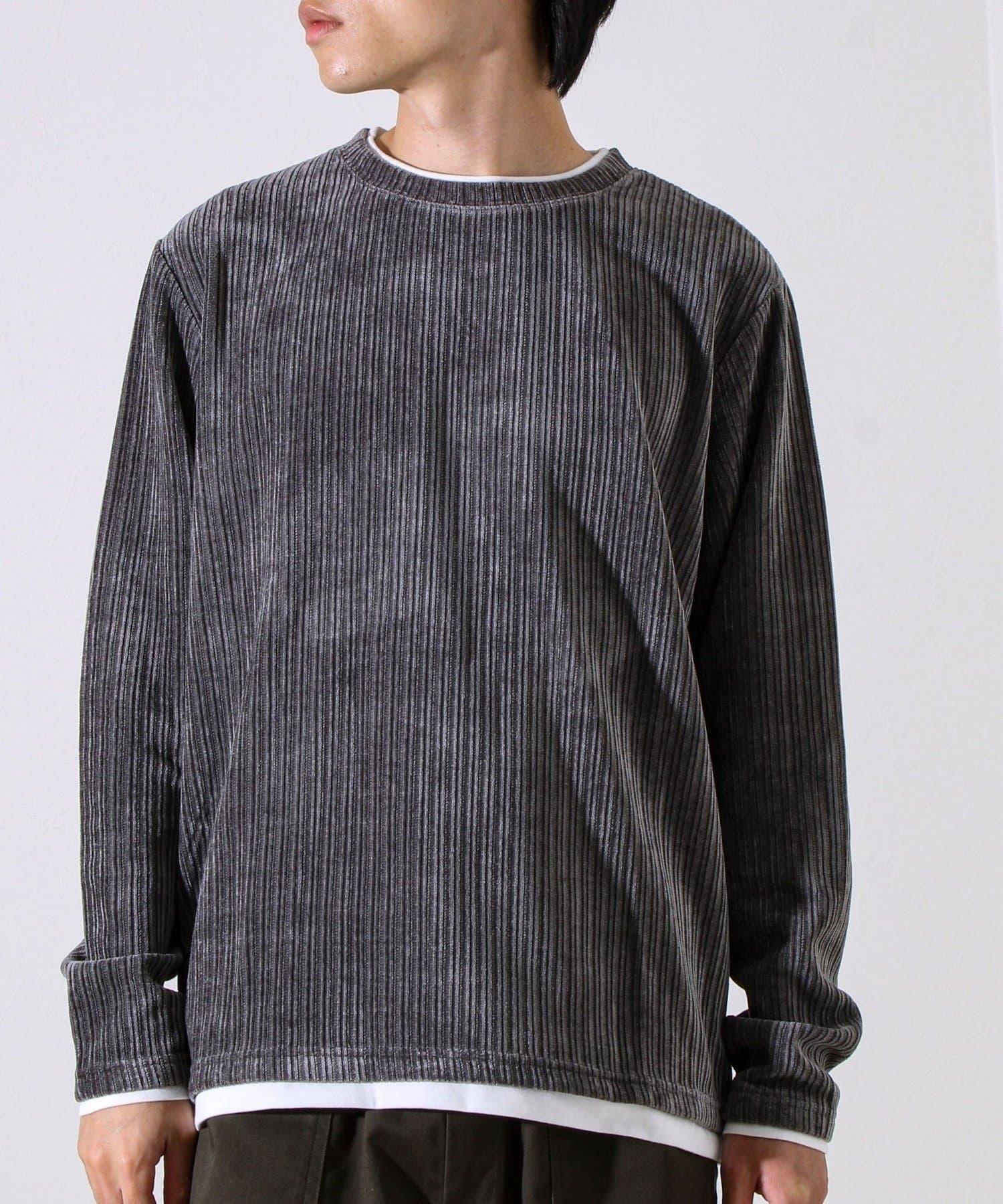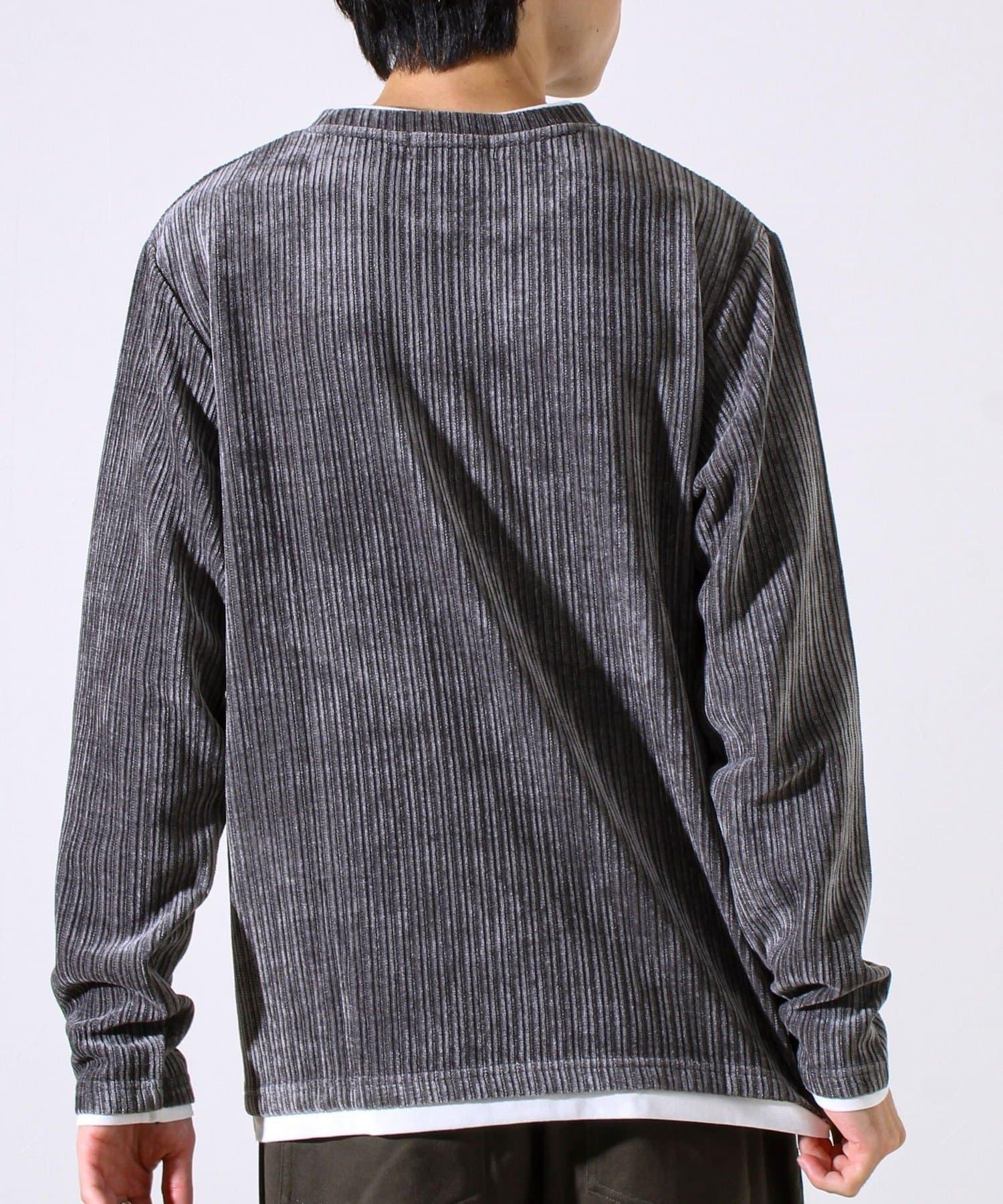 預約商品【疊穿感即刻時尚】燈芯絨假兩件長袖T恤