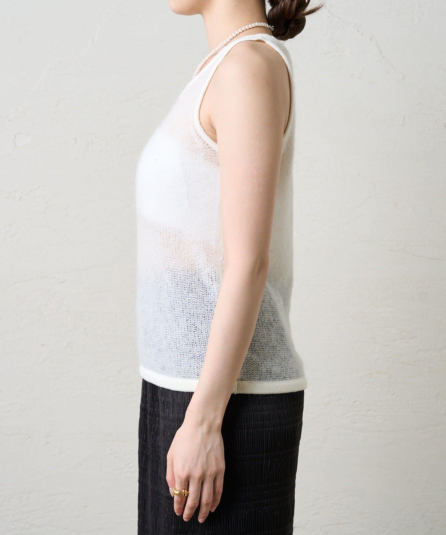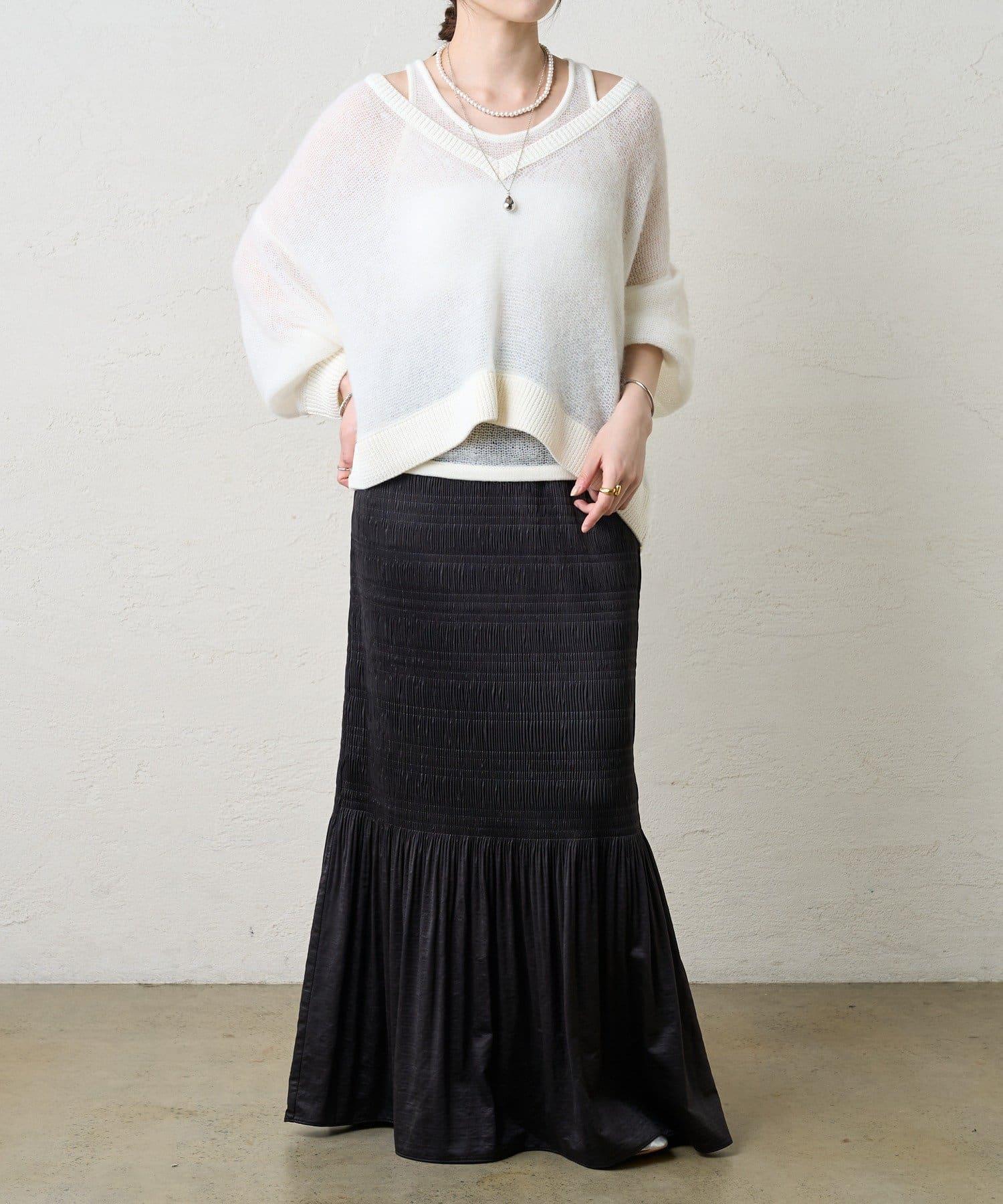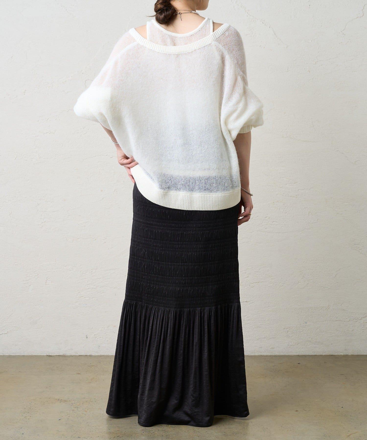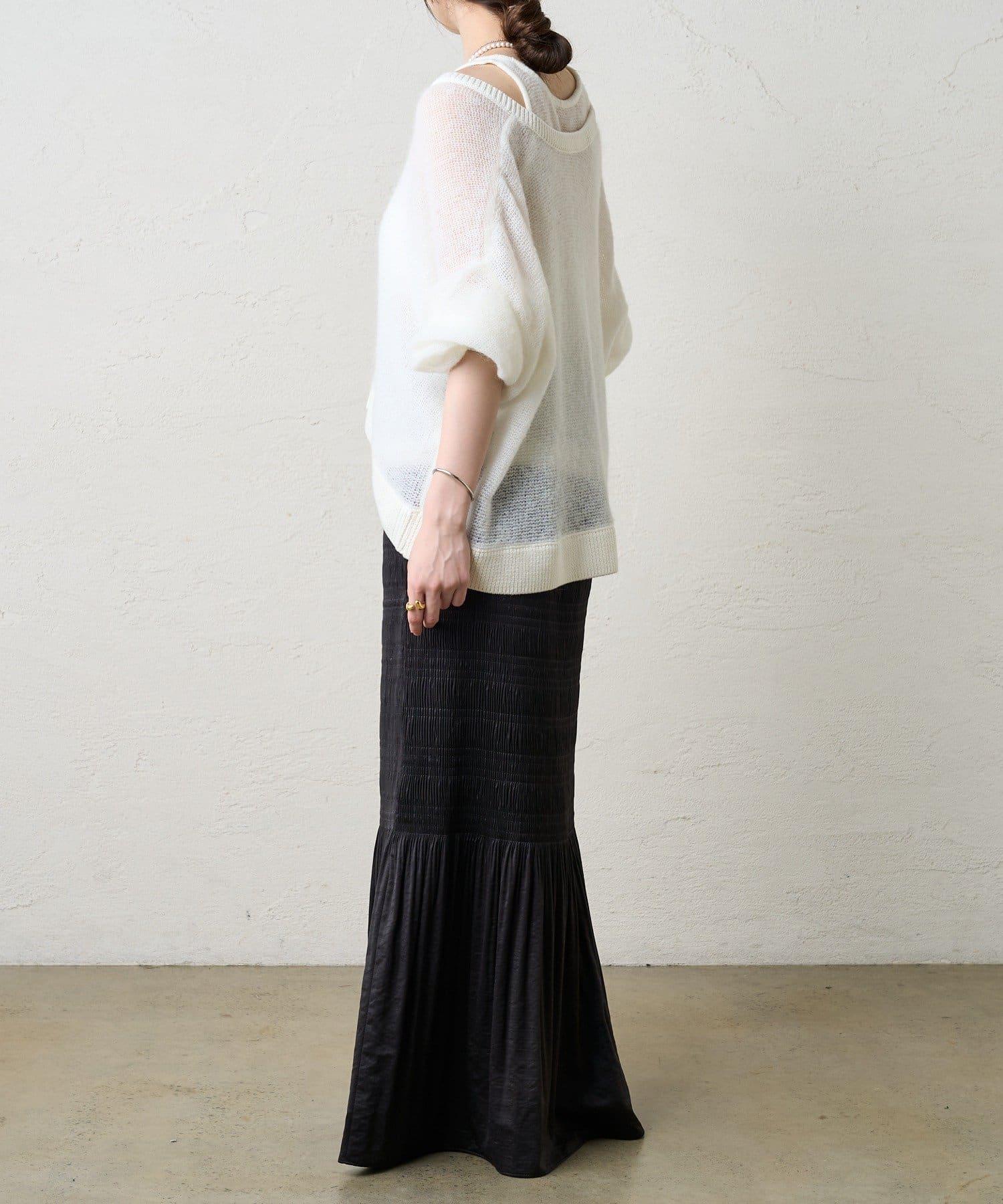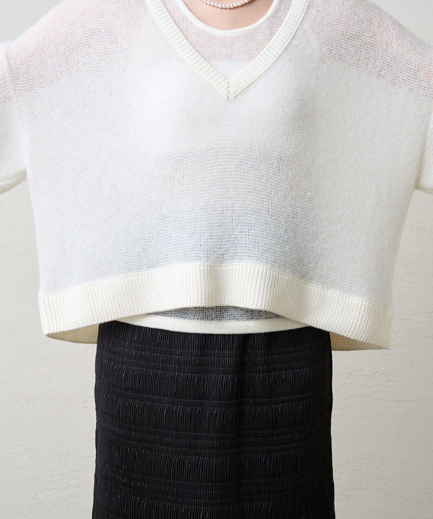 這款針織衫採用透視面料,恰到好處地露出肌膚,給人以健康的印象。