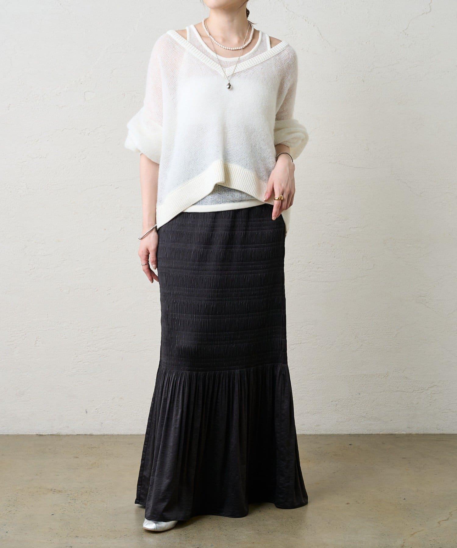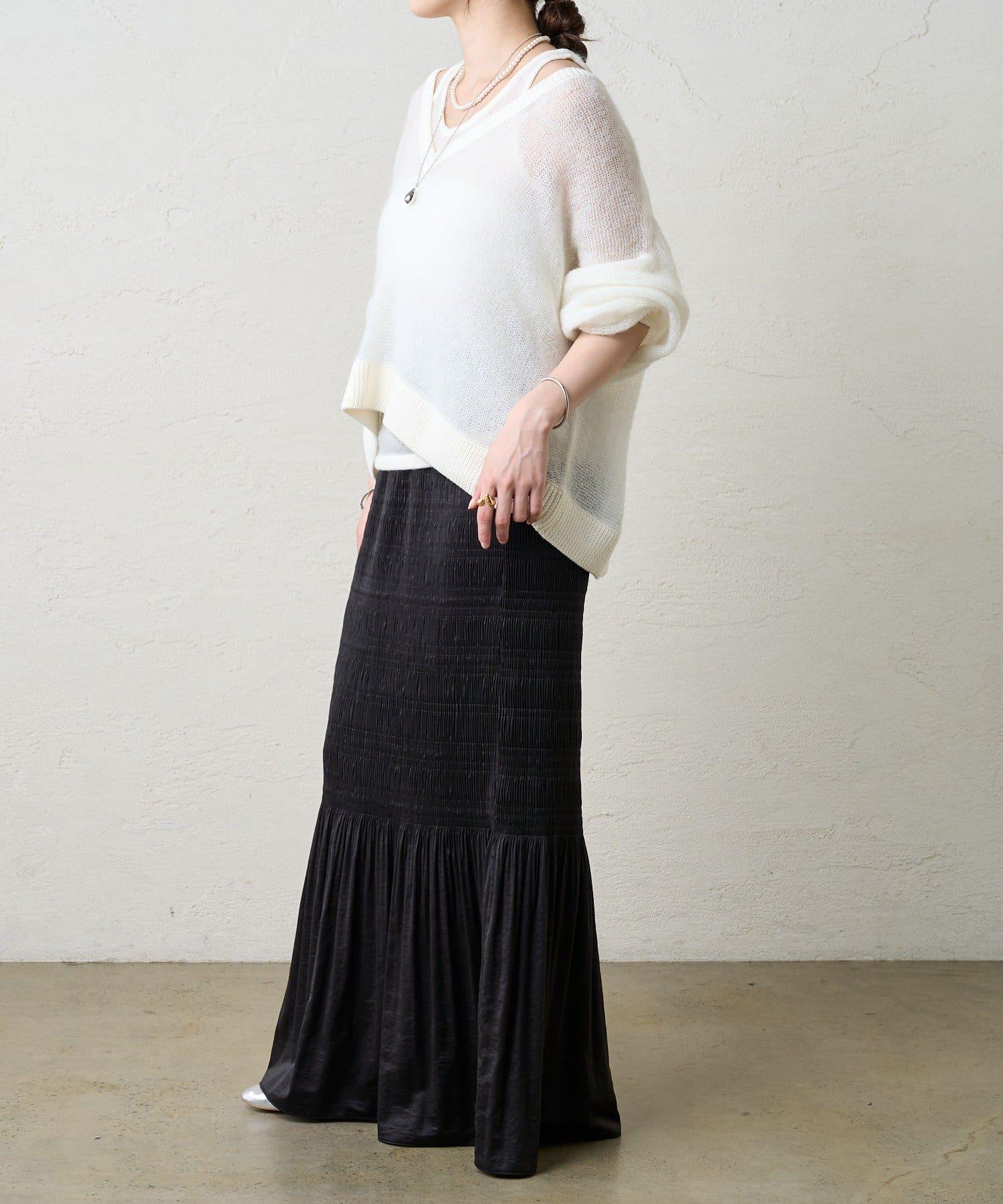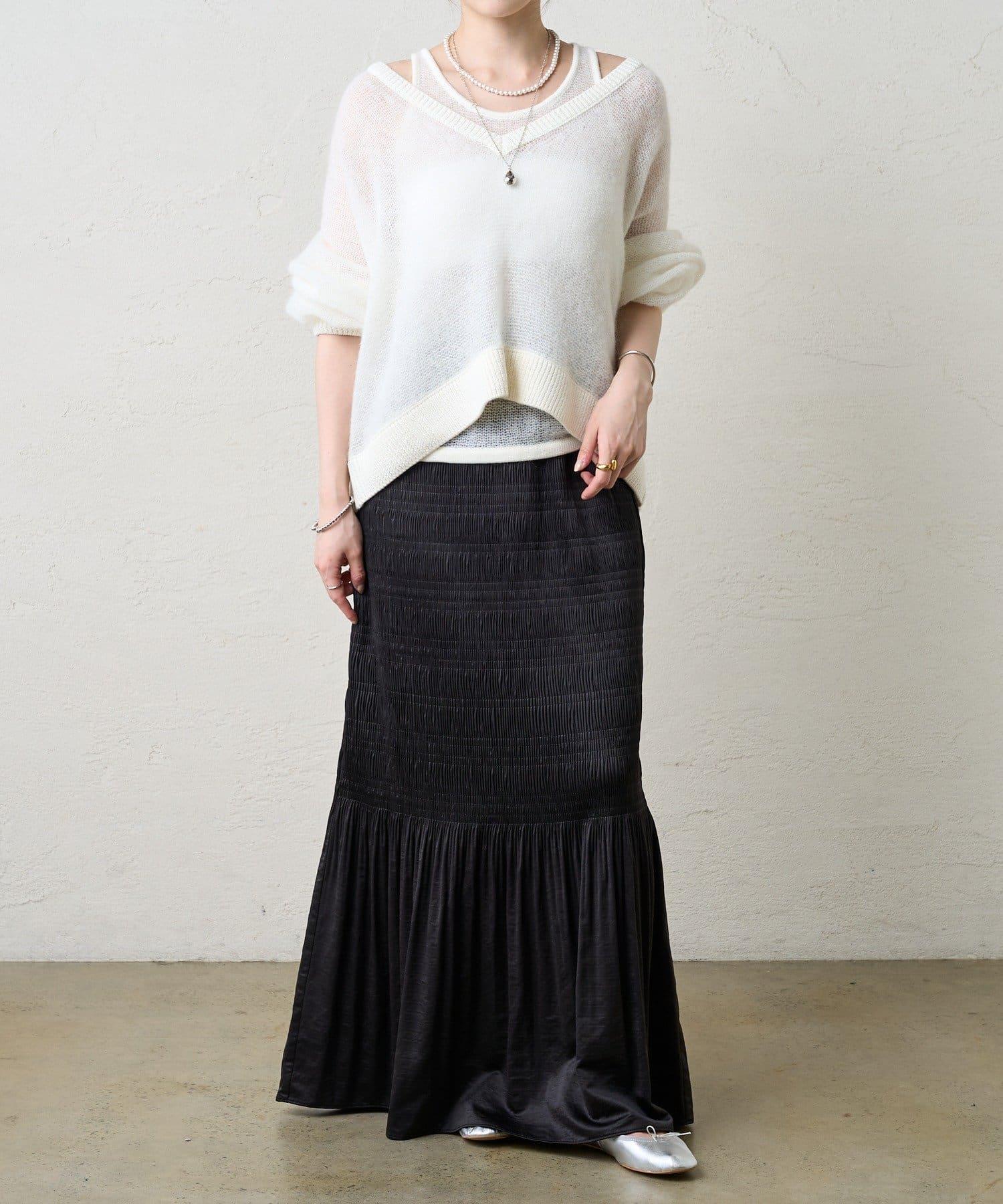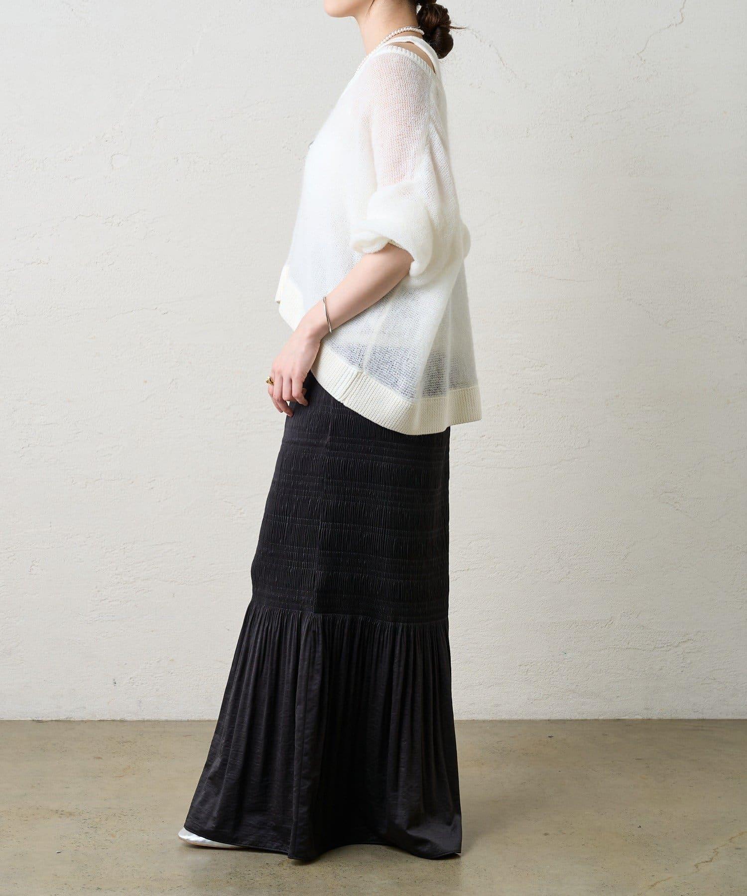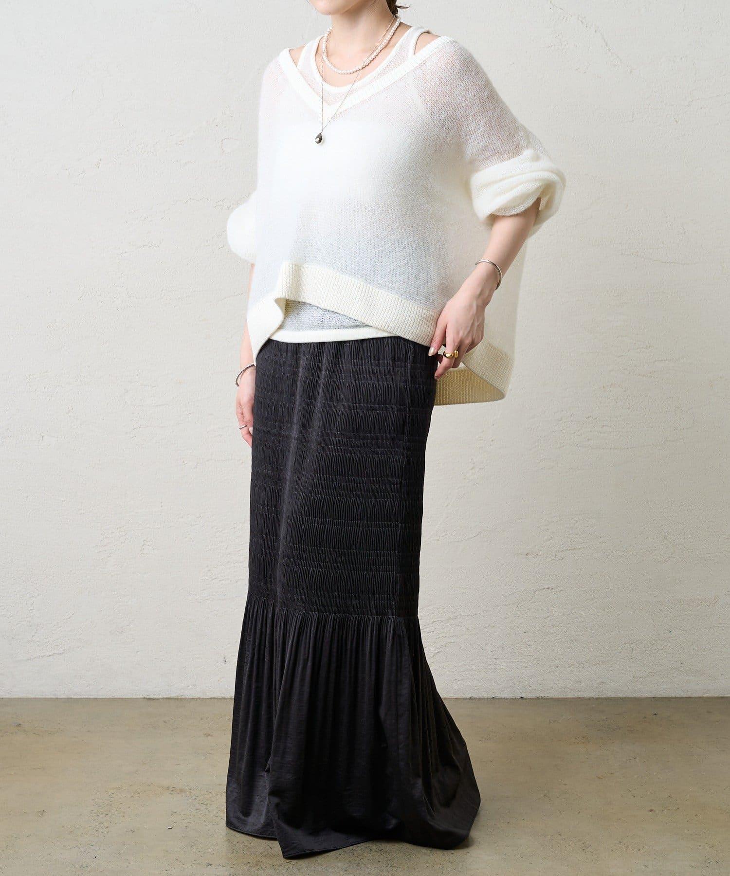 這款針織衫採用透視面料,恰到好處地露出肌膚,給人以健康的印象。