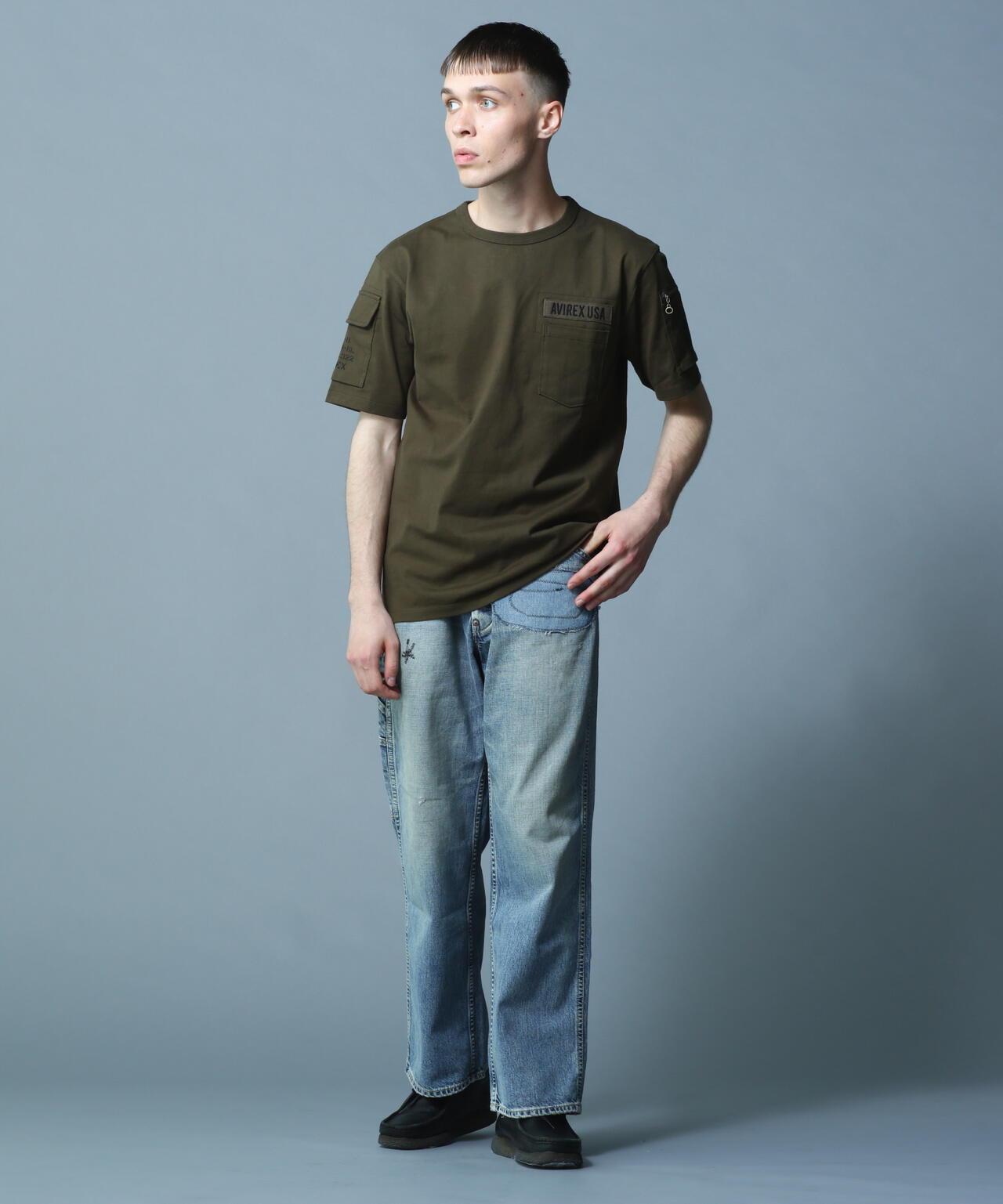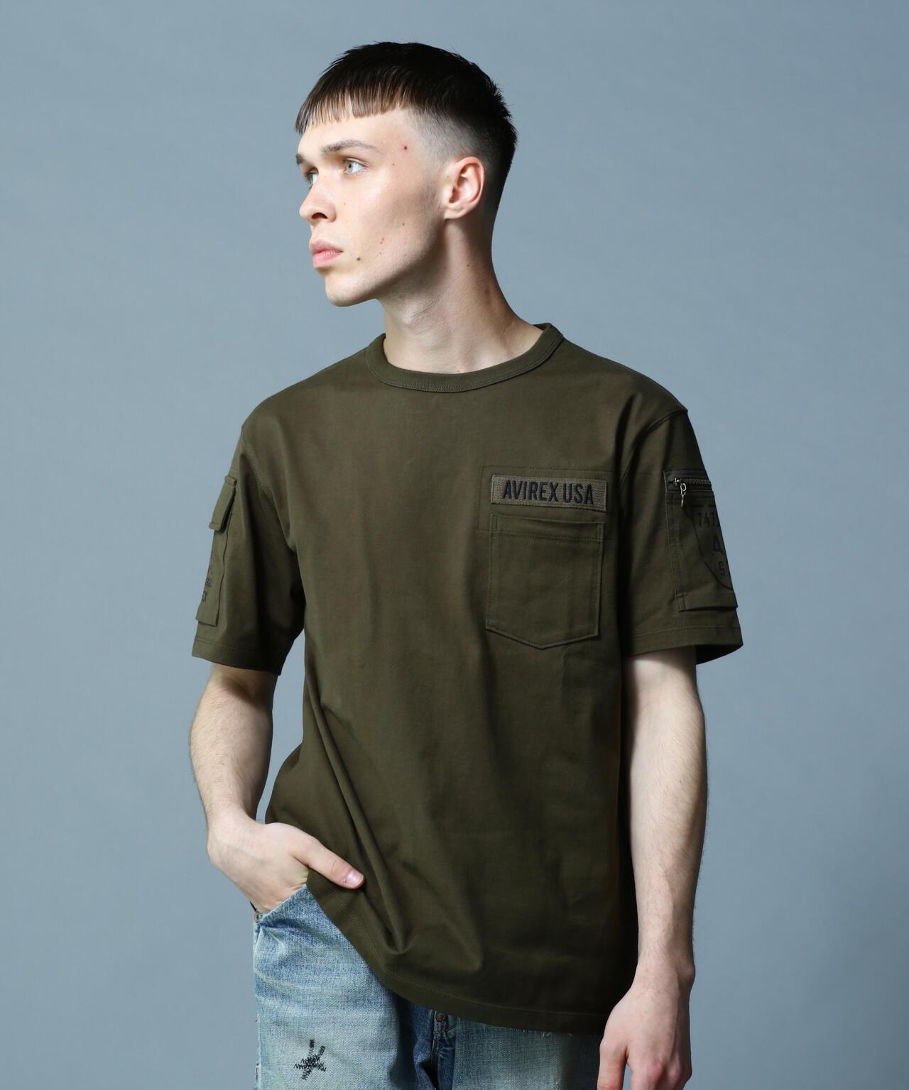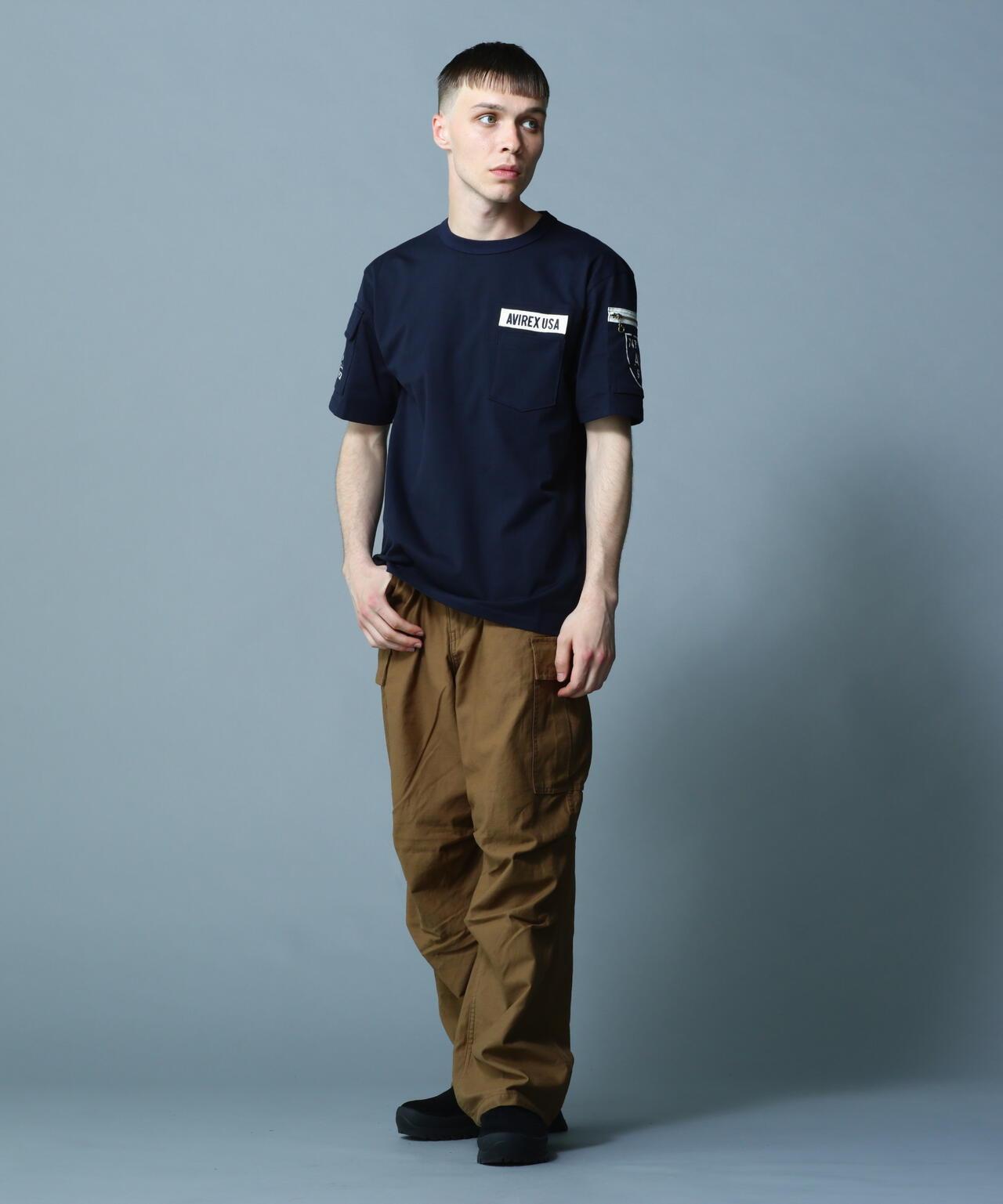 產品名稱: FATIGUE T-SHIRT 《產品細節》 - AVIREX長銷款短袖T恤 - 厚針織面料,手感舒適 - 設計靈感源自疲勞褲 - 雙袖帶口袋的軍裝元素 - 圓領T恤