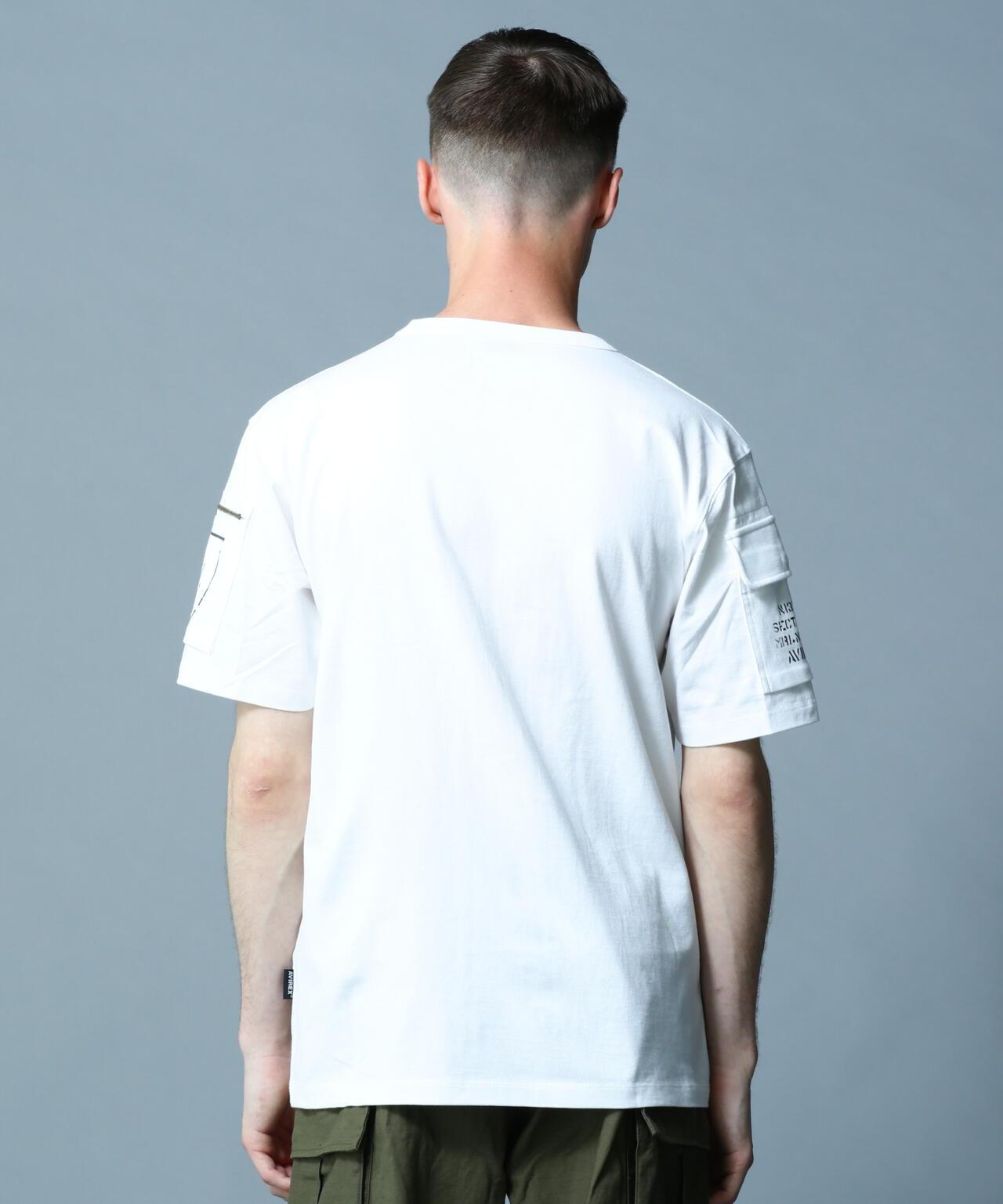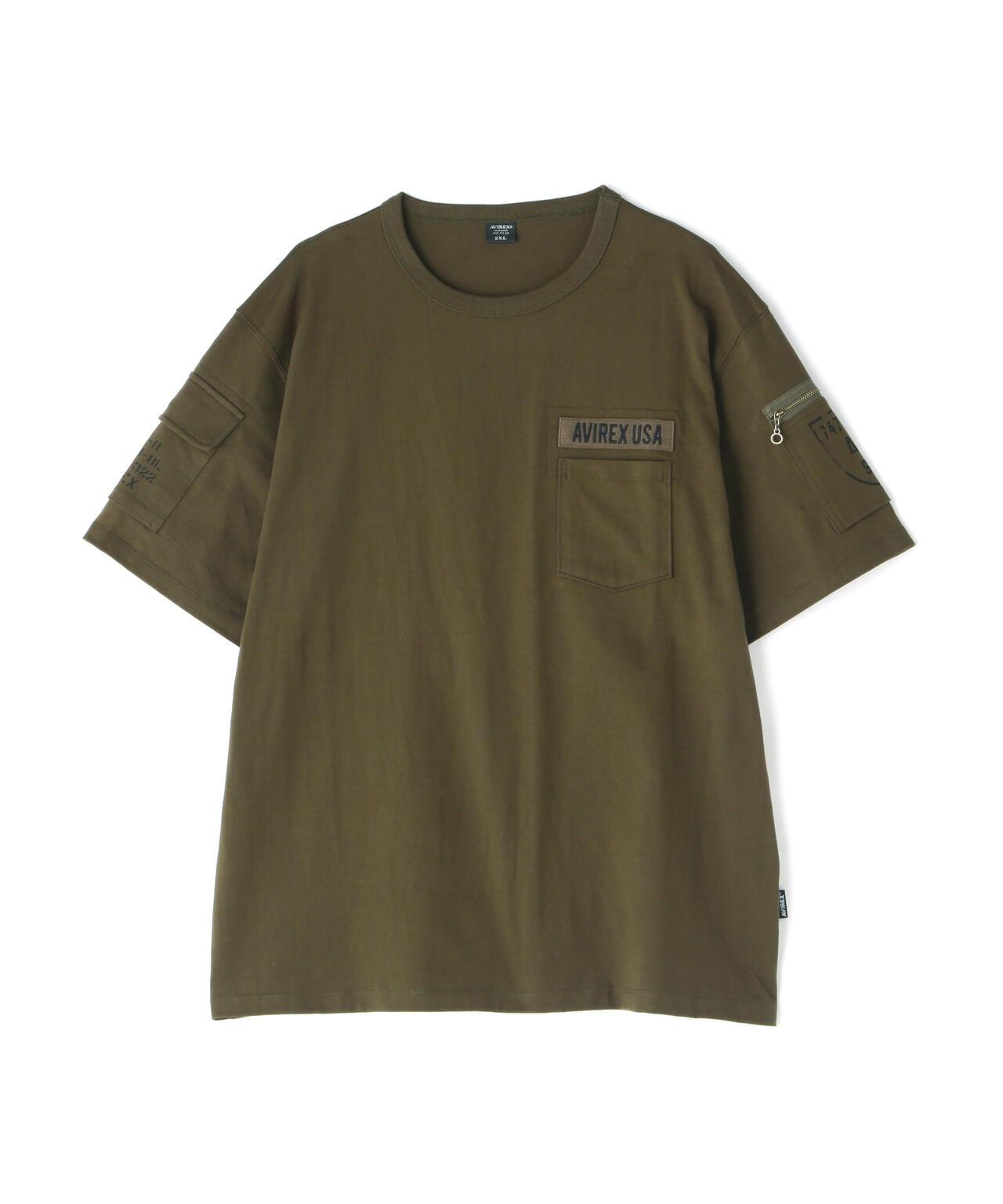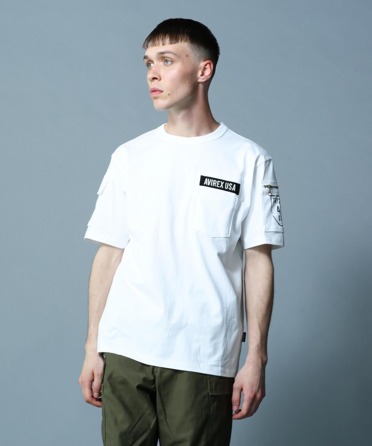 產品名稱: FATIGUE T-SHIRT 《產品細節》 - AVIREX長銷款短袖T恤 - 厚針織面料,手感舒適 - 設計靈感源自疲勞褲 - 雙袖帶口袋的軍裝元素 - 圓領T恤