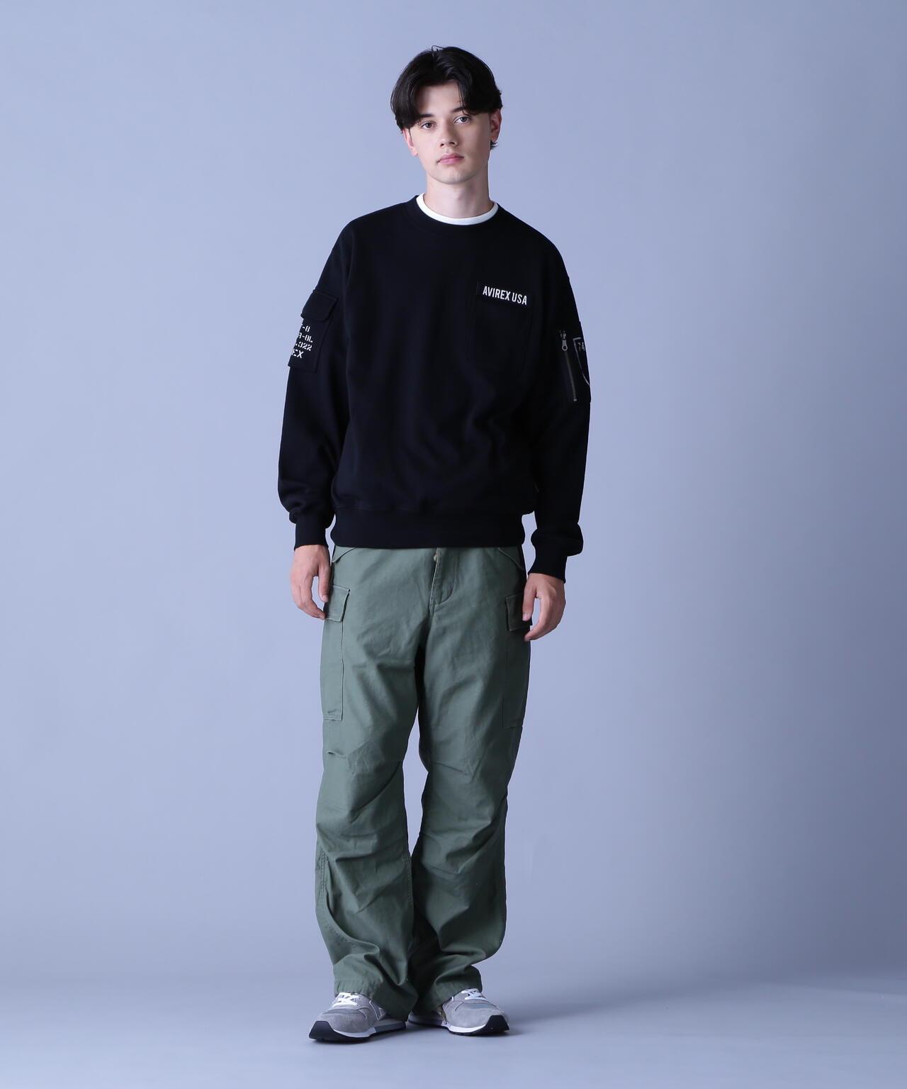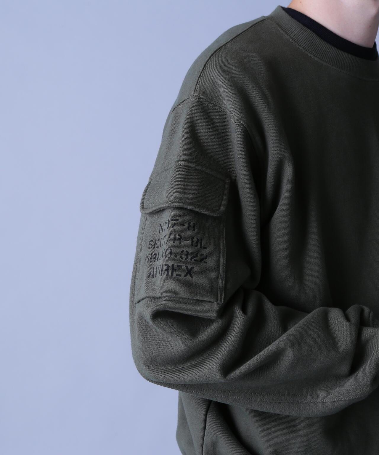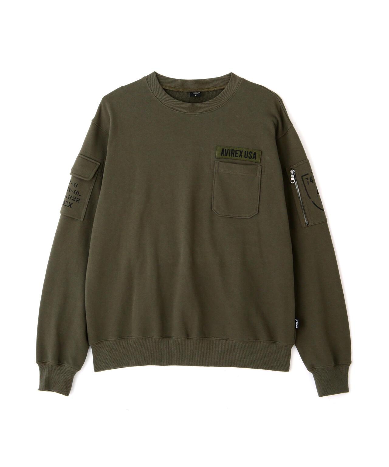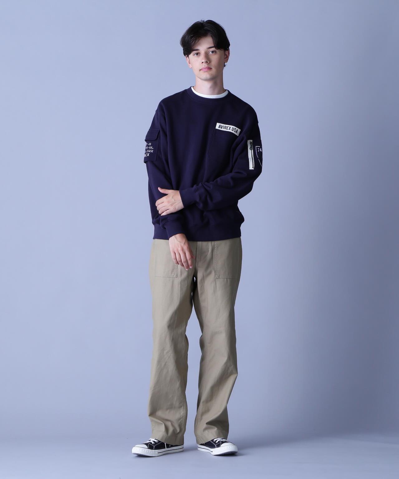 FATIGUE CREWNECK SWEAT / AVIREX / AVIREX 產品詳情 - 這是一款軍裝風單品,兩袖均有口袋,靈感源自疲勞褲。圓領運動衫有黑色、橄欖色、海軍藍和灰色四種基本色可供選擇,厚度適中,因此也建議用作疊穿和外衣的內層 [AVIREX]。通過供應飛行夾克,公司的知名度大幅提升。起源於軍隊的 Avirex 通過功能性設計創造出一種獨特的美感。