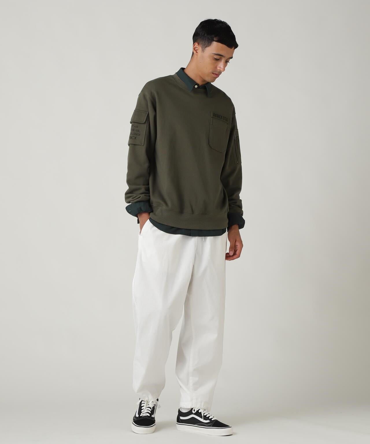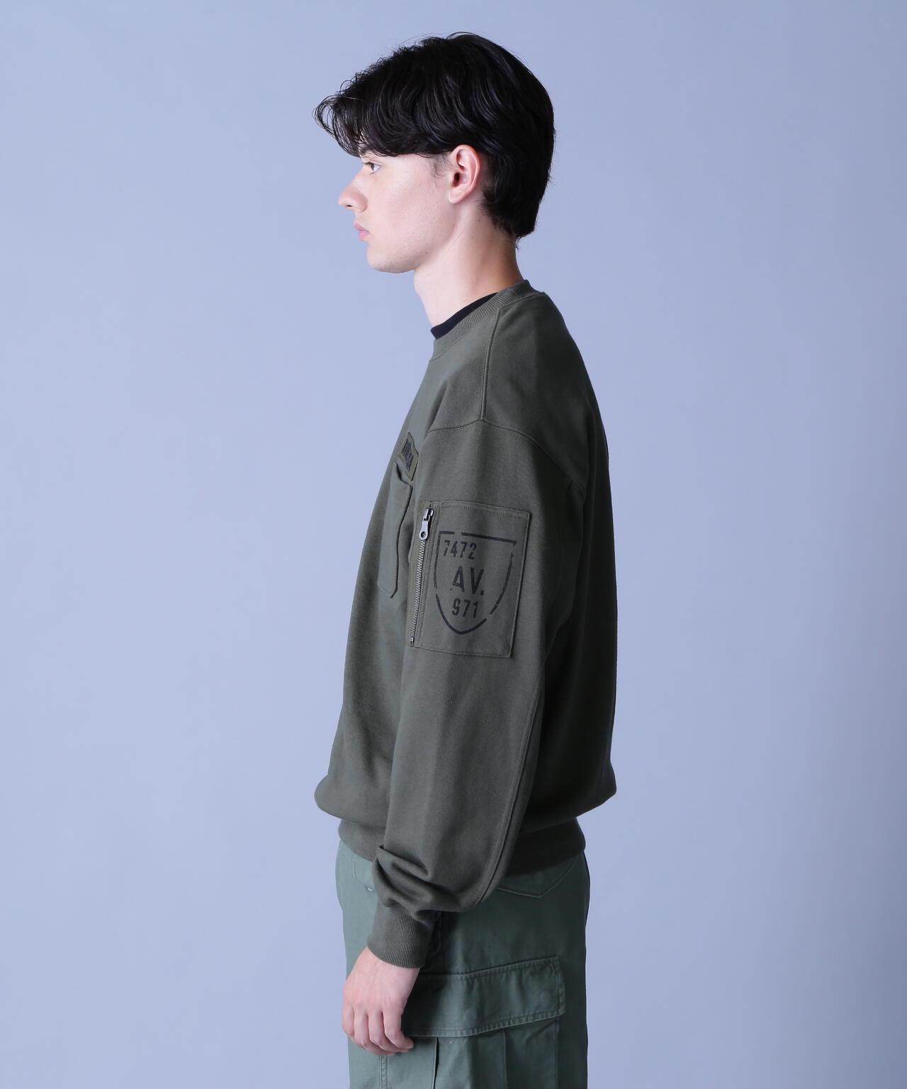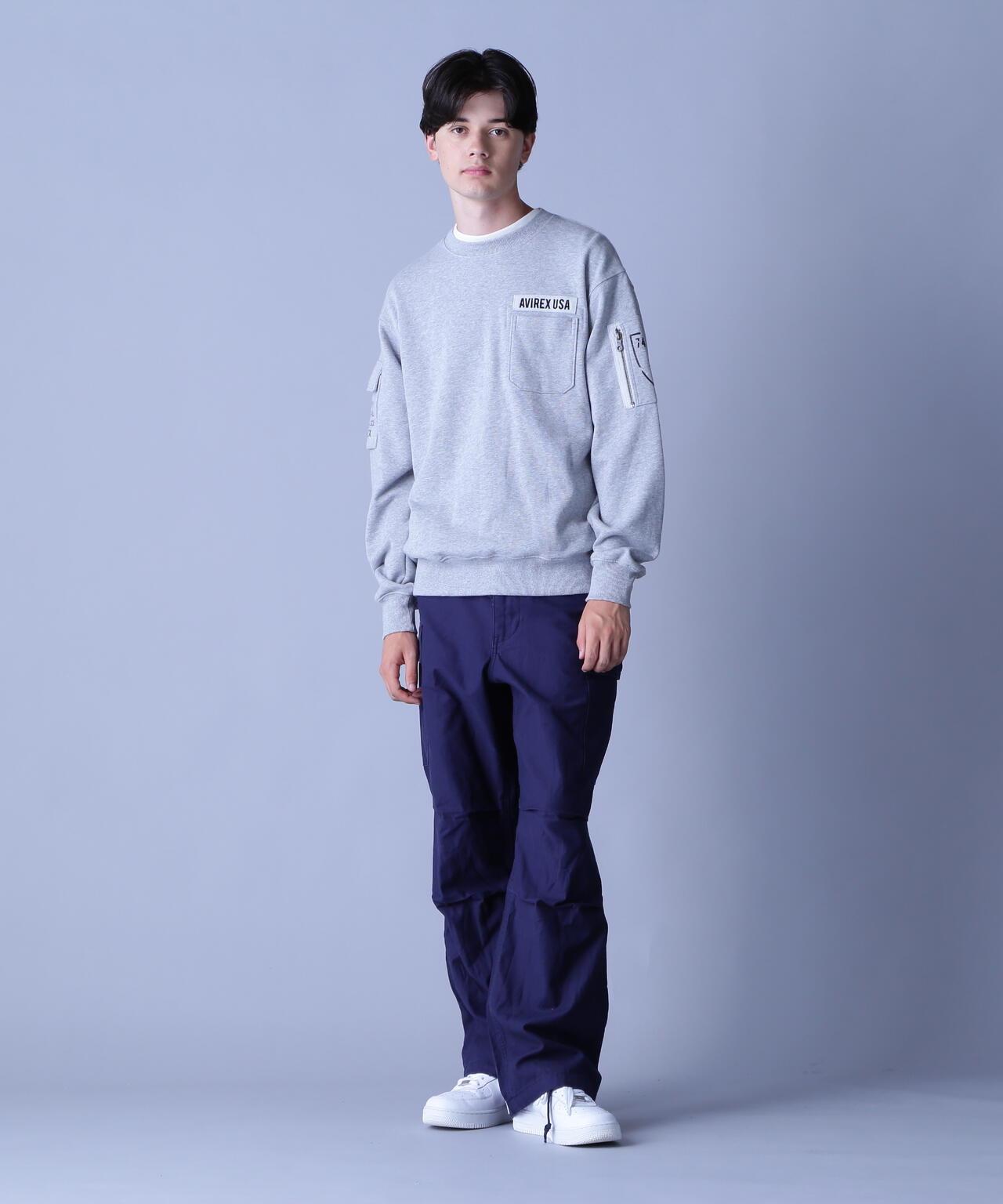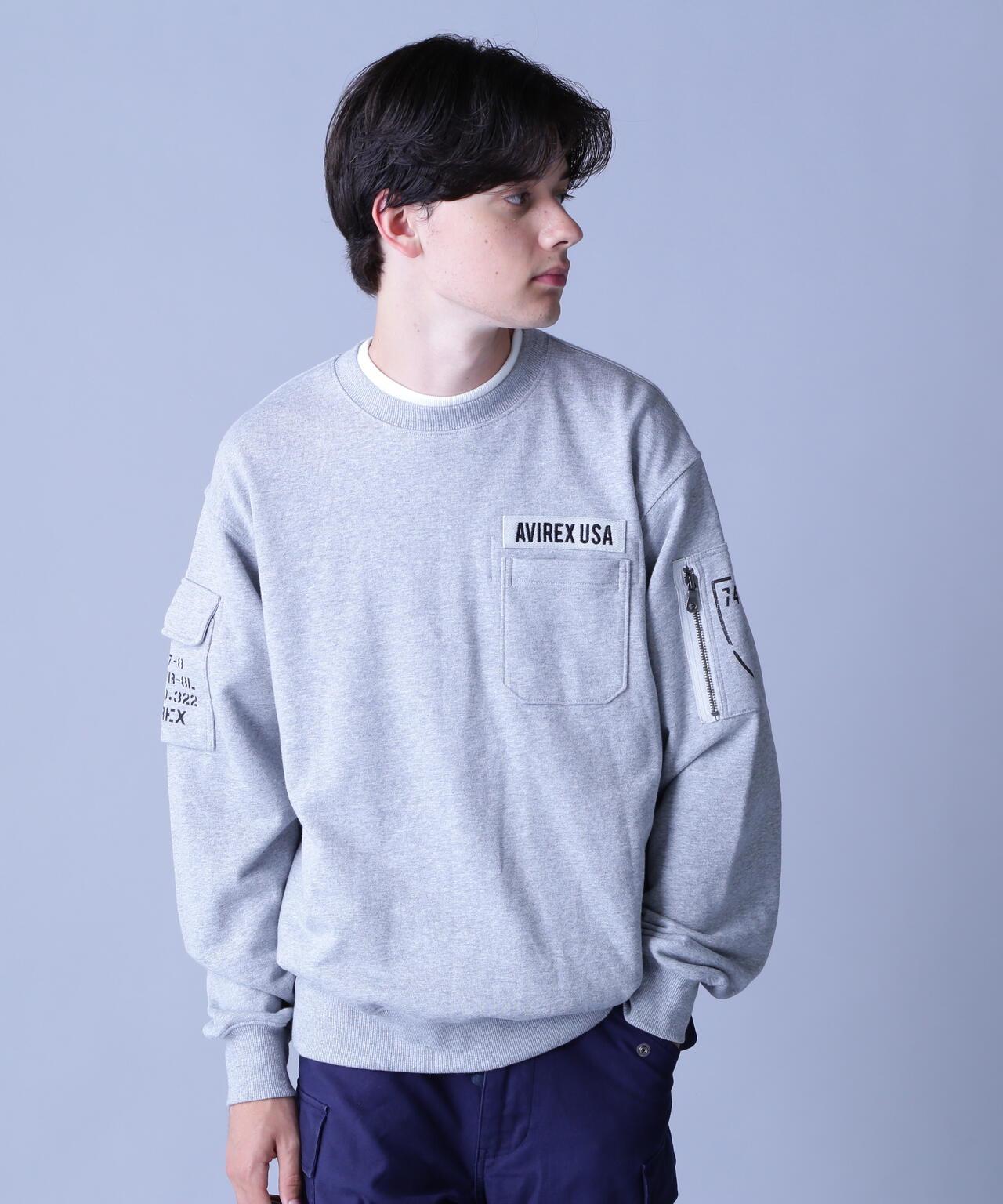FATIGUE CREWNECK SWEAT / AVIREX / AVIREX 產品詳情 - 這是一款軍裝風單品,兩袖均有口袋,靈感源自疲勞褲。圓領運動衫有黑色、橄欖色、海軍藍和灰色四種基本色可供選擇,厚度適中,因此也建議用作疊穿和外衣的內層 [AVIREX]。通過供應飛行夾克,公司的知名度大幅提升。起源於軍隊的 Avirex 通過功能性設計創造出一種獨特的美感。