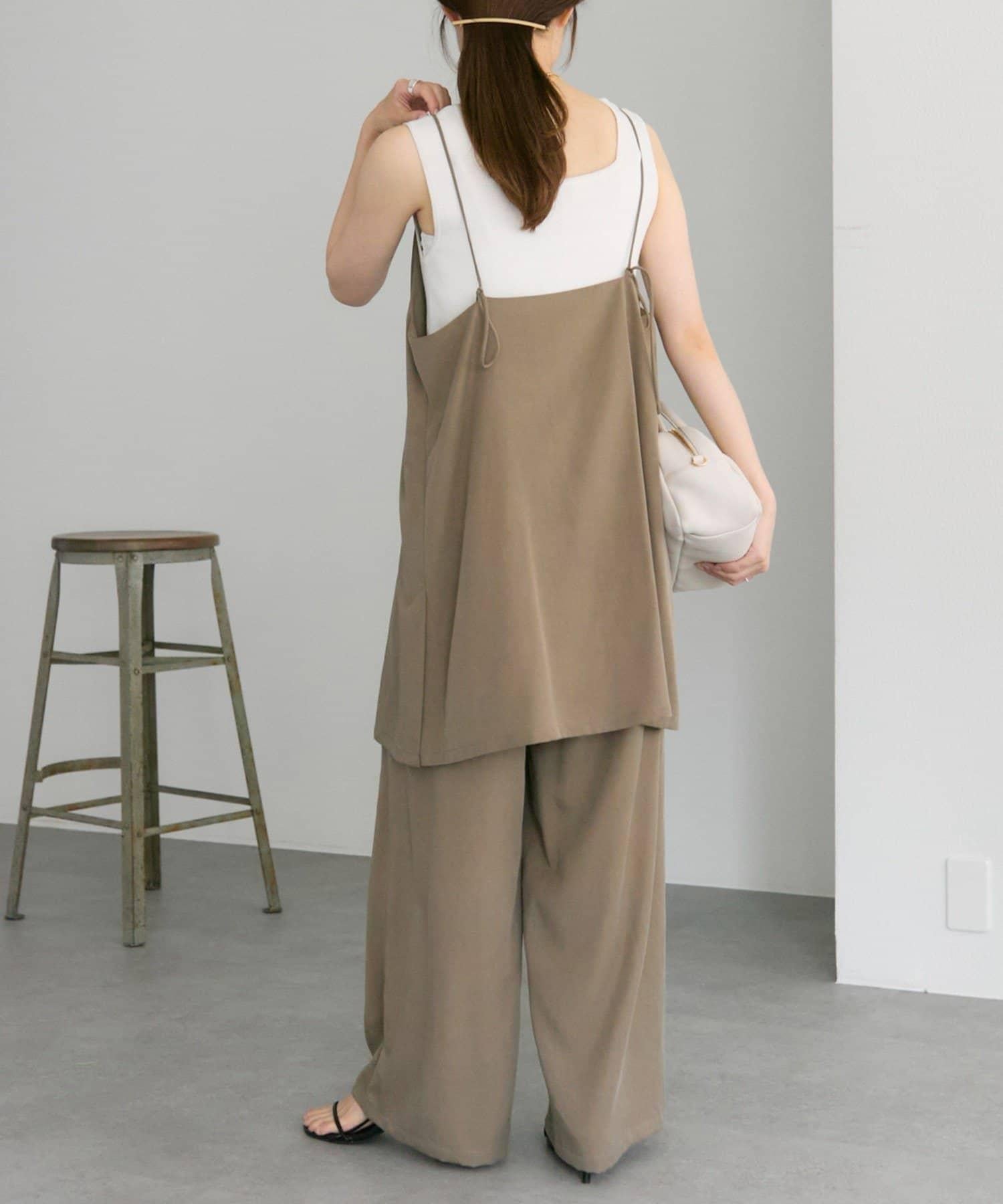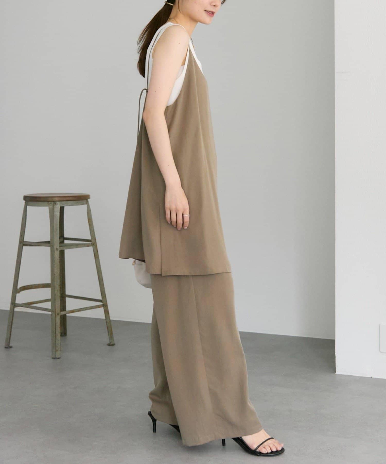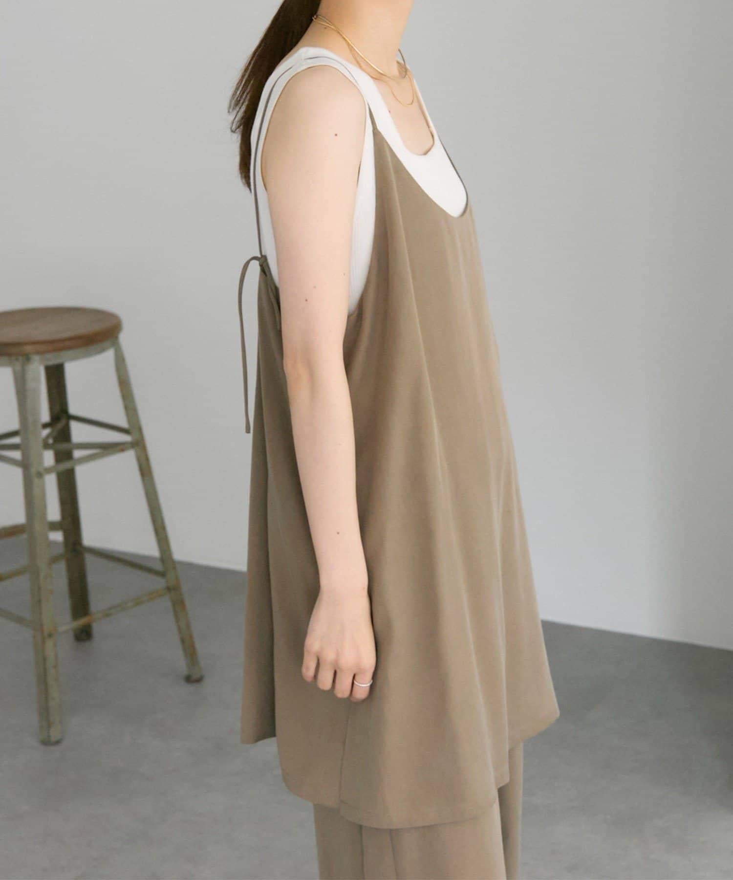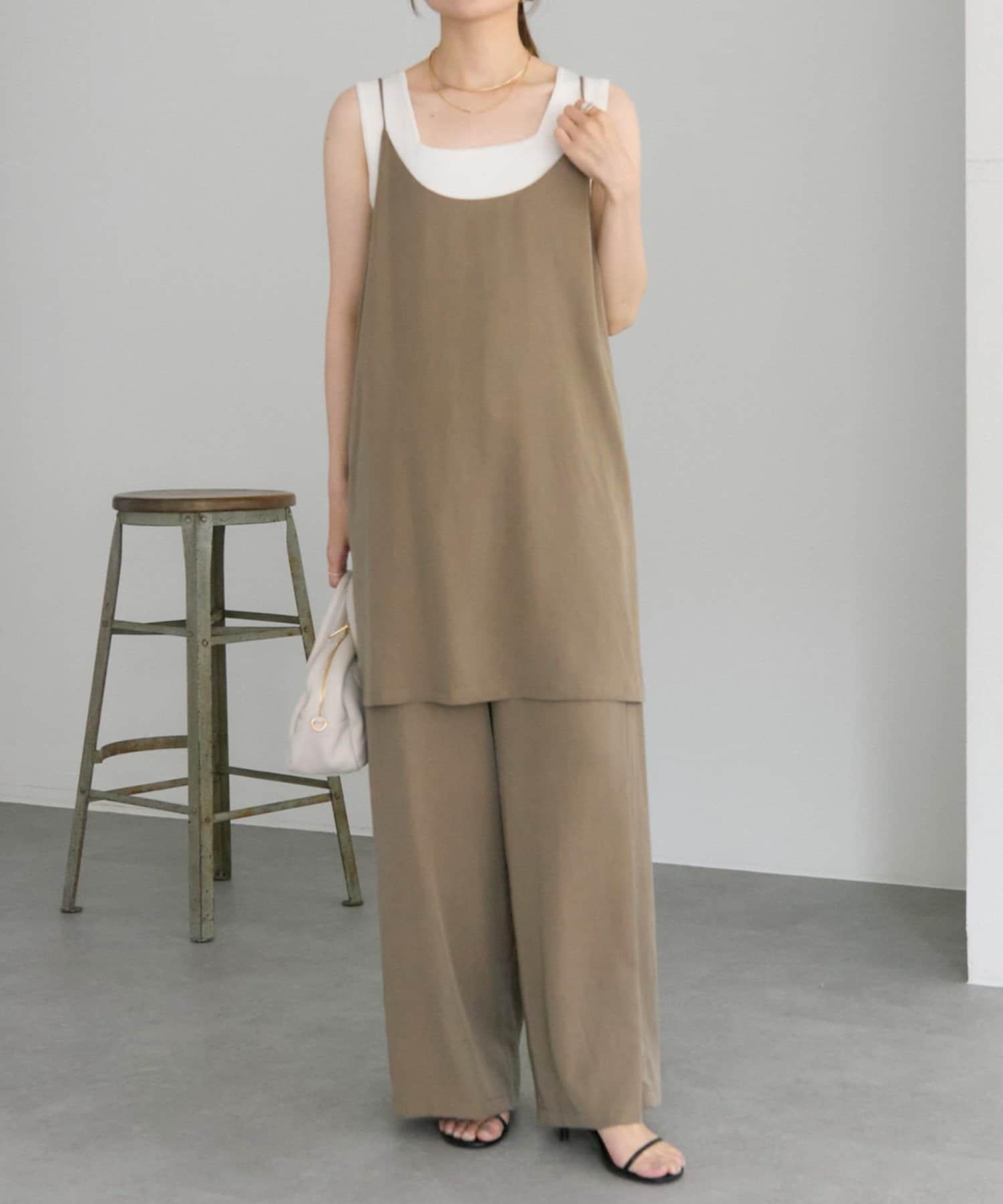 《百搭套裝◎/套裝商品》軟質帆布吊帶長款上衣+褲子套裝