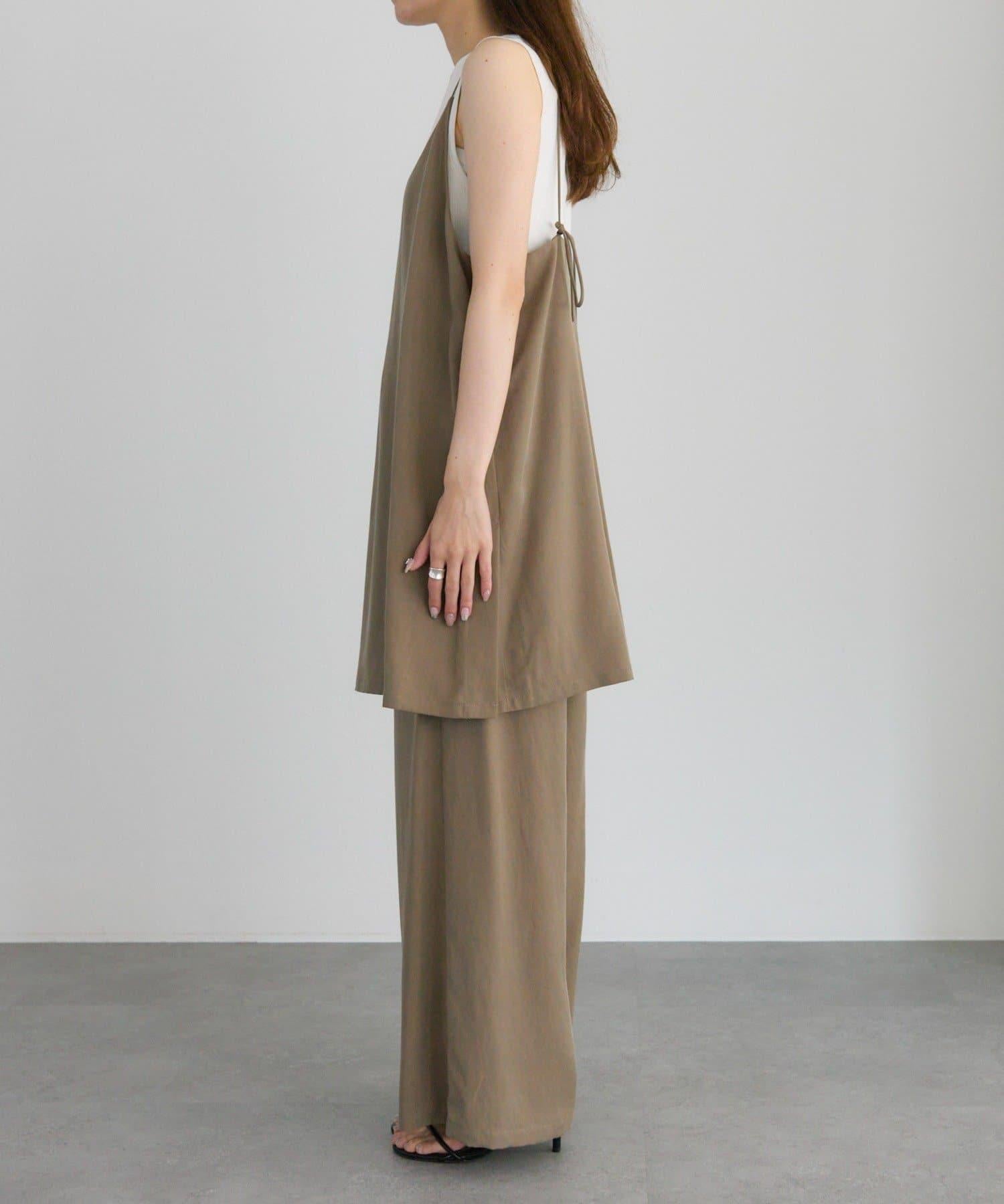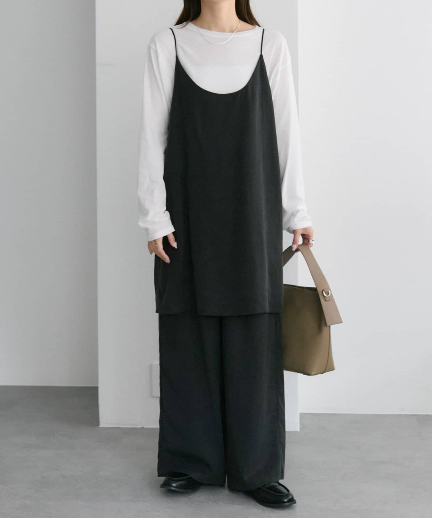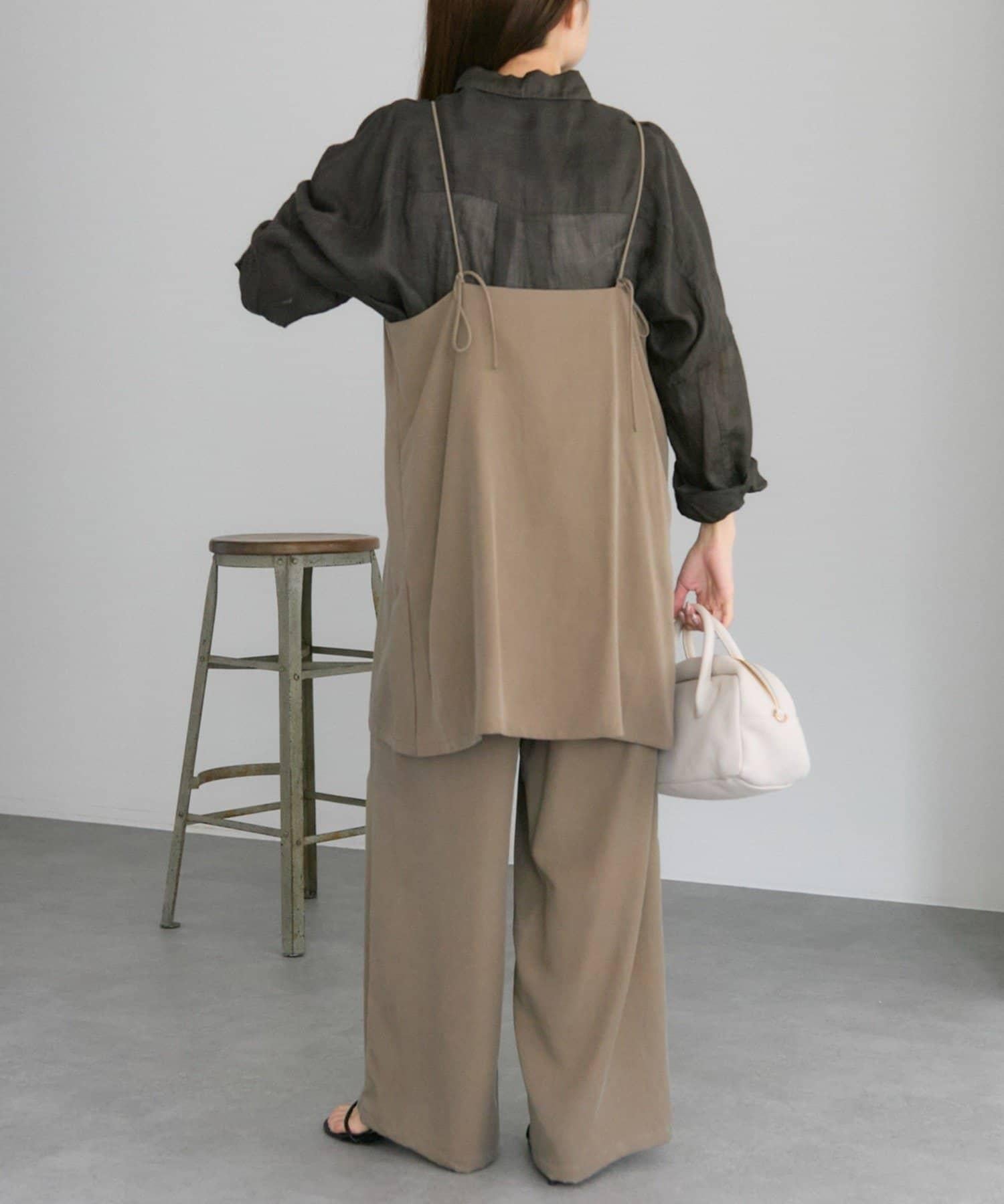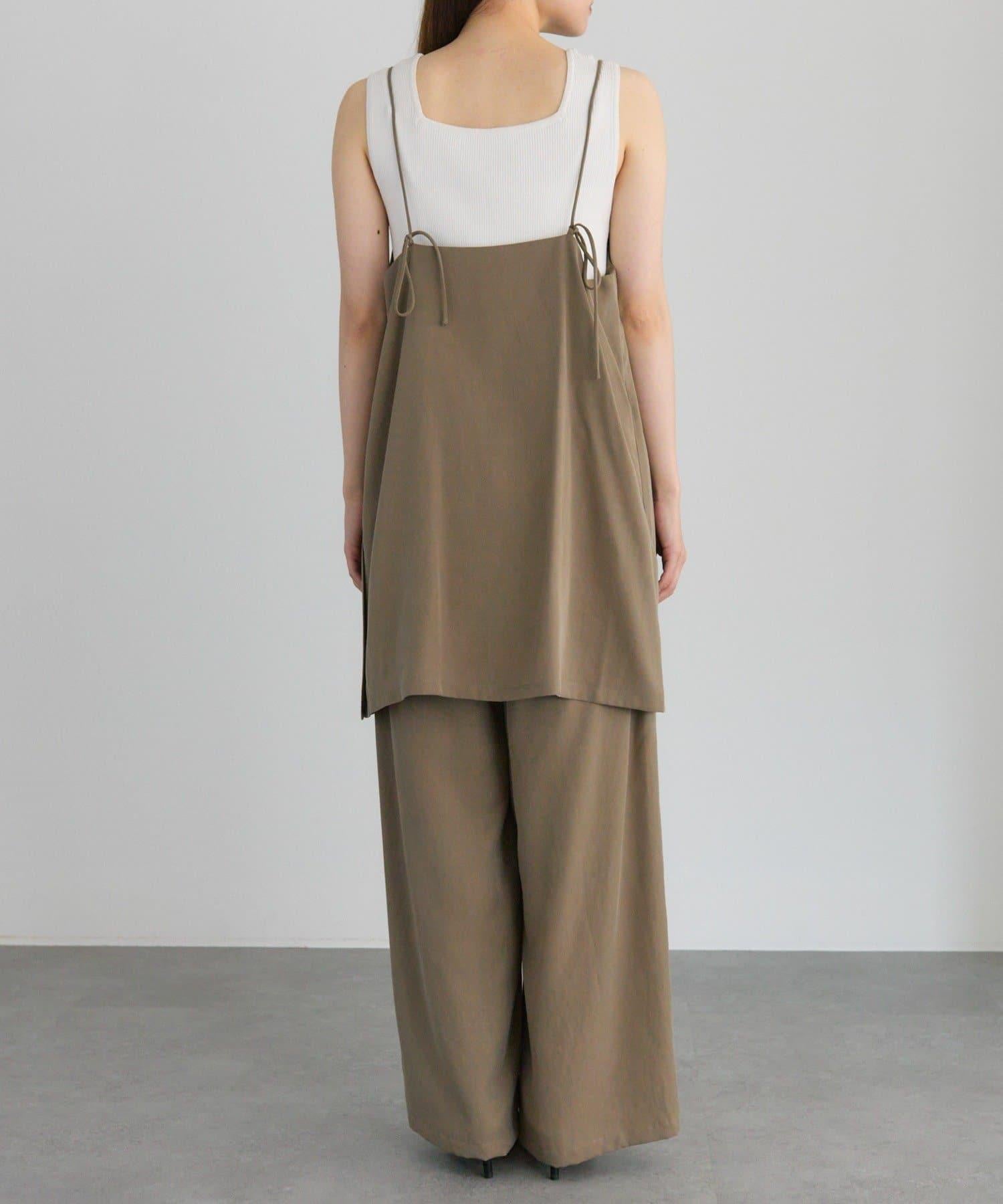 《百搭套裝◎/套裝商品》軟質帆布吊帶長款上衣+褲子套裝
