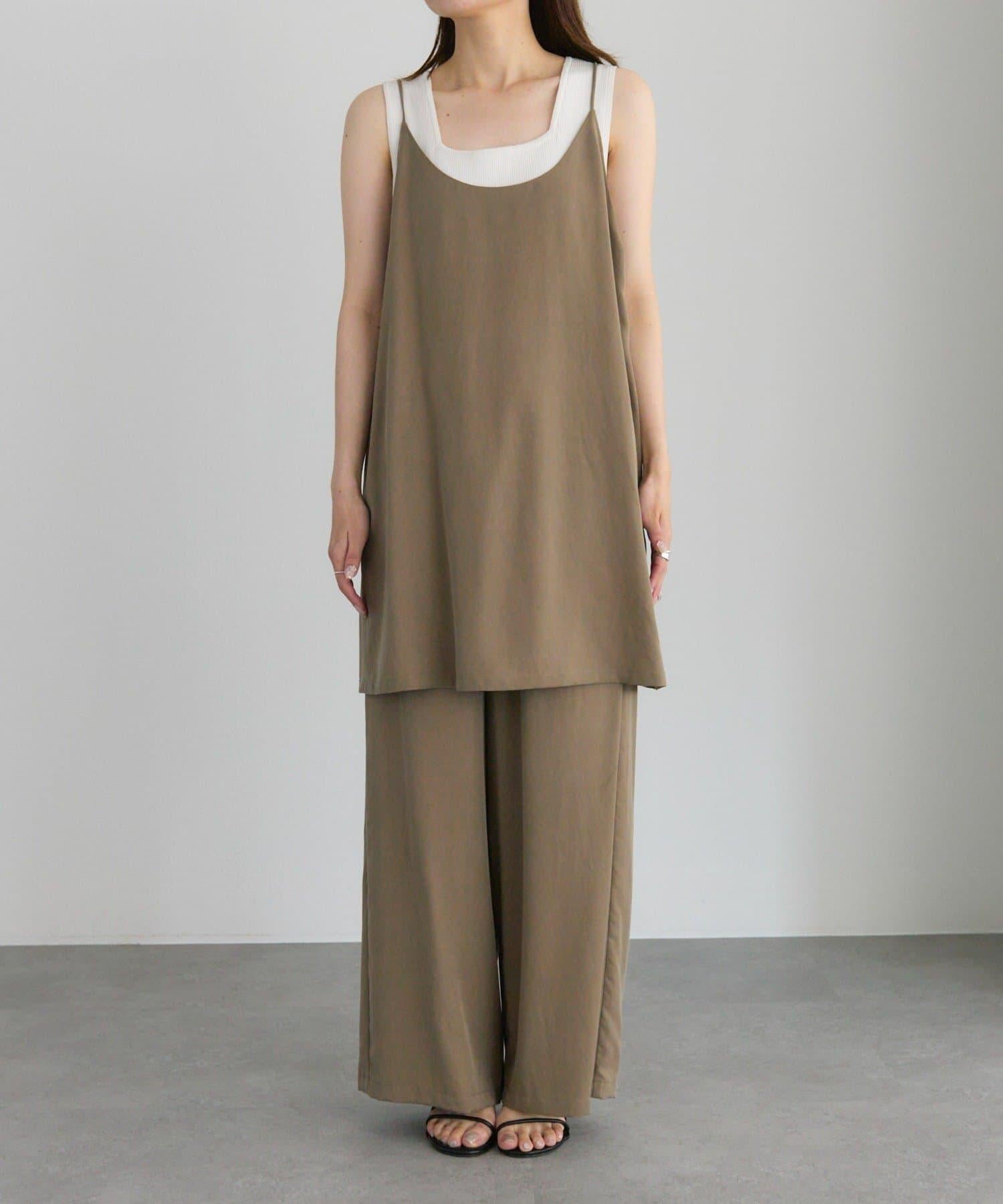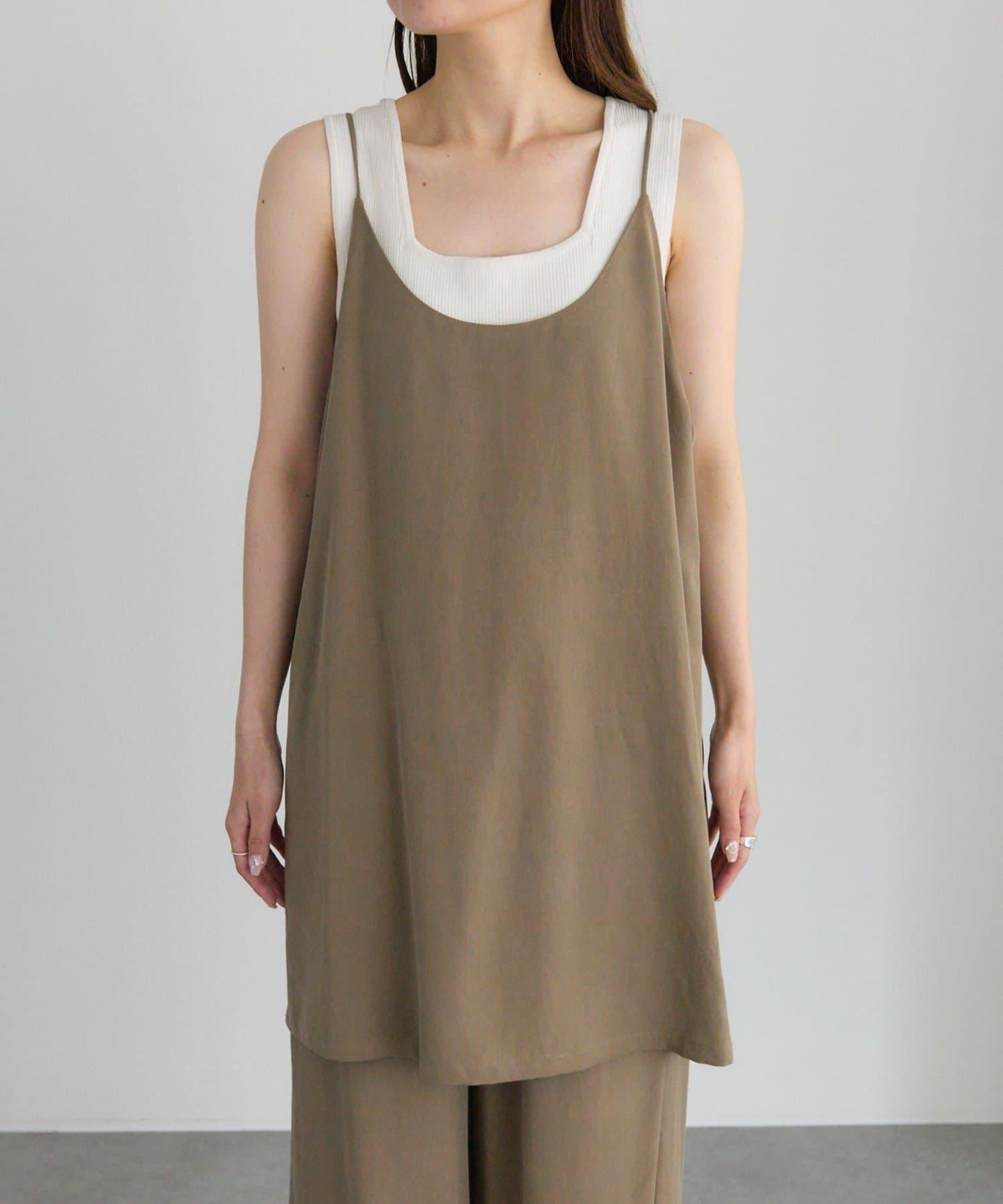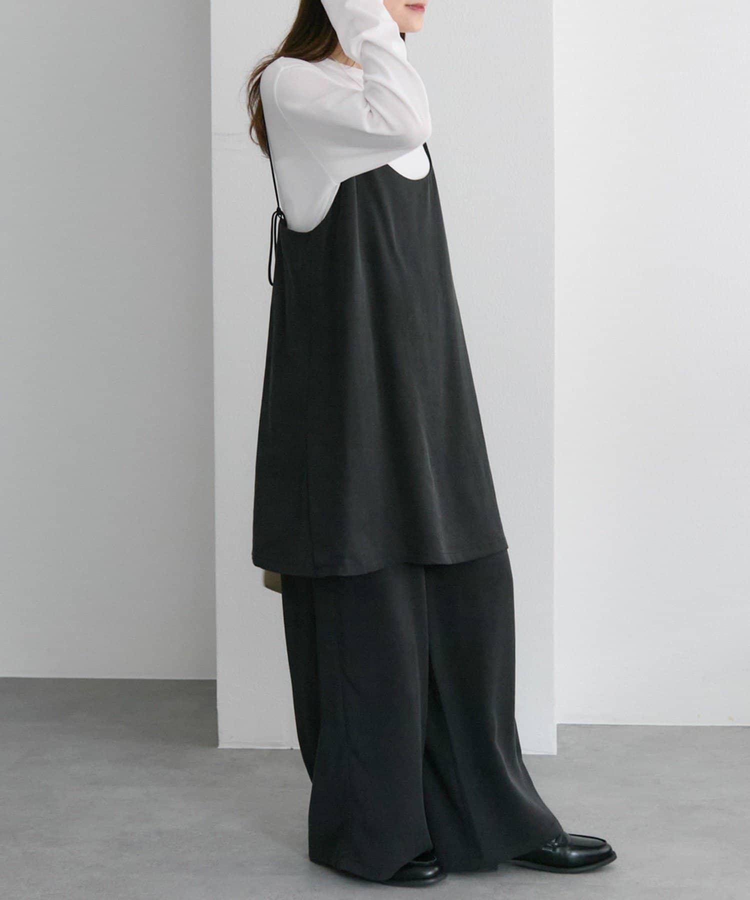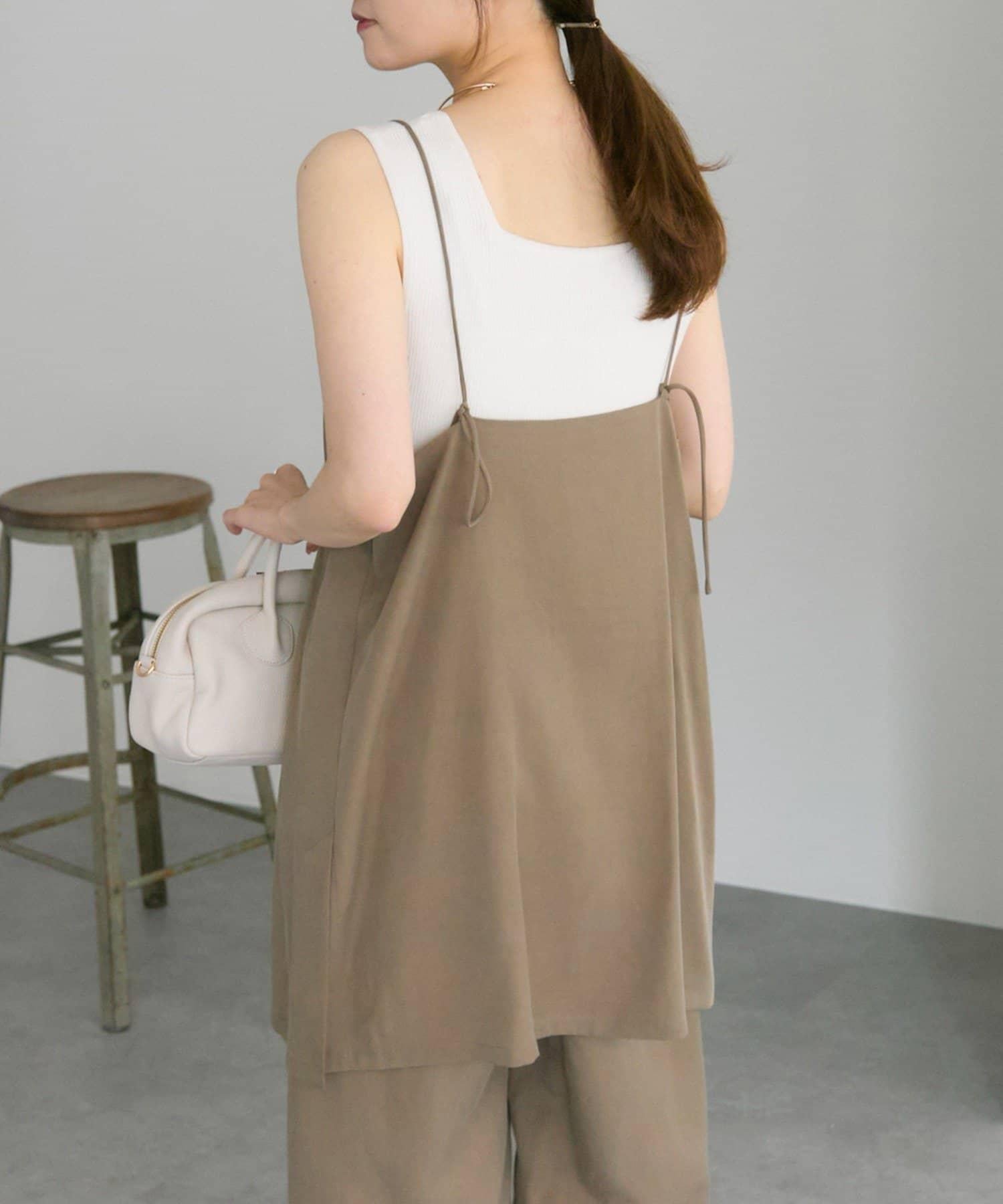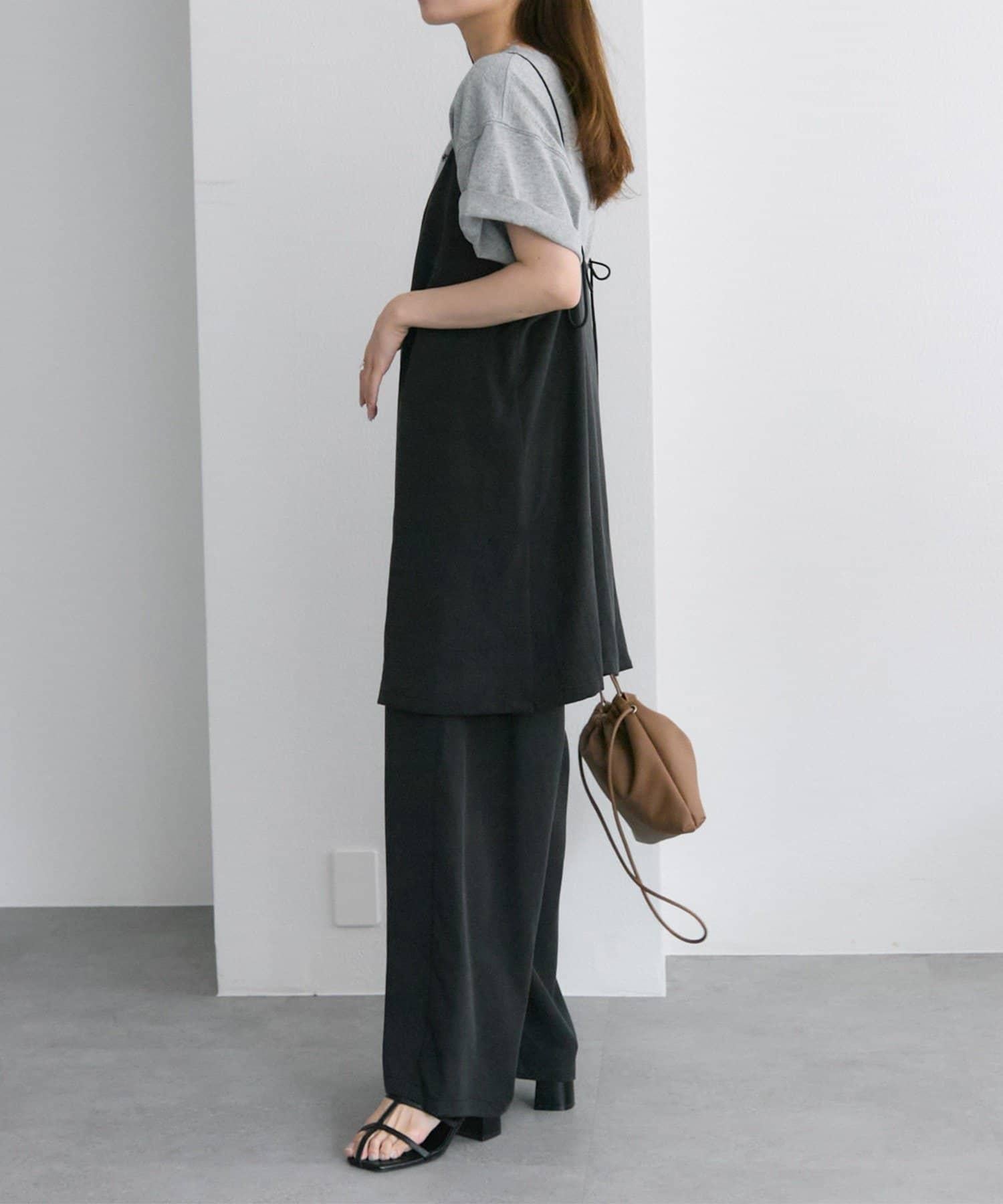 《百搭套裝◎/套裝商品》軟質帆布吊帶長款上衣+褲子套裝