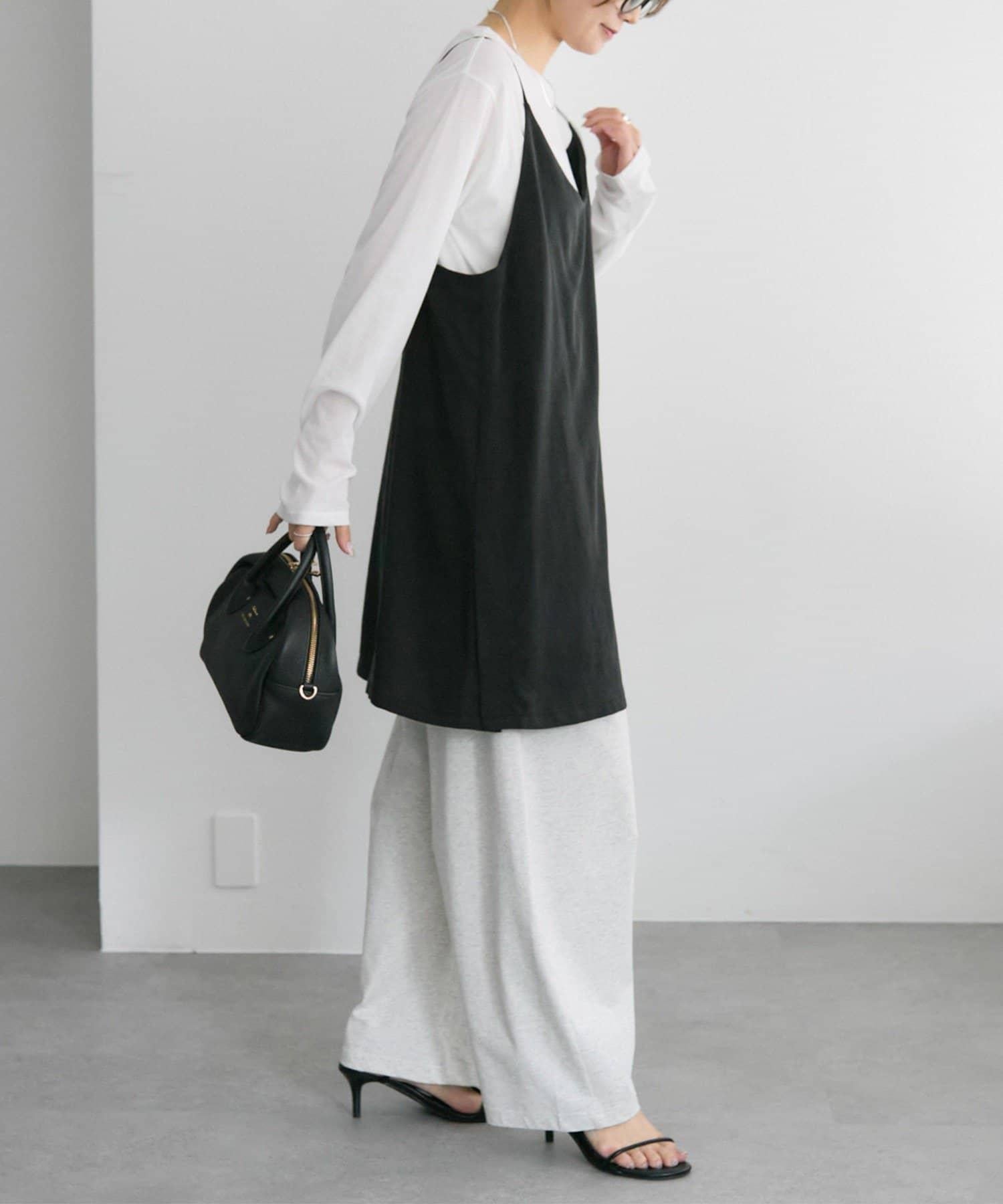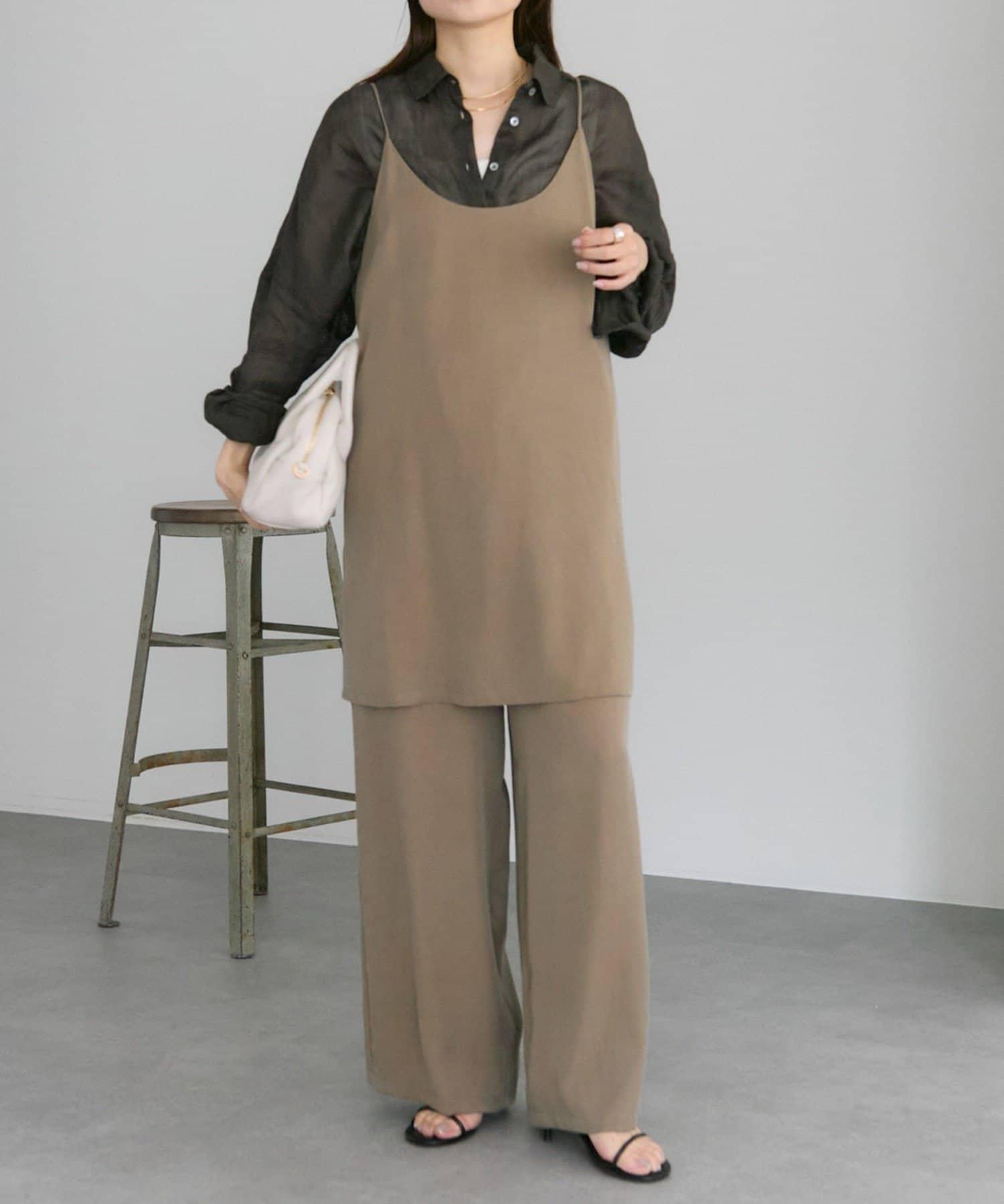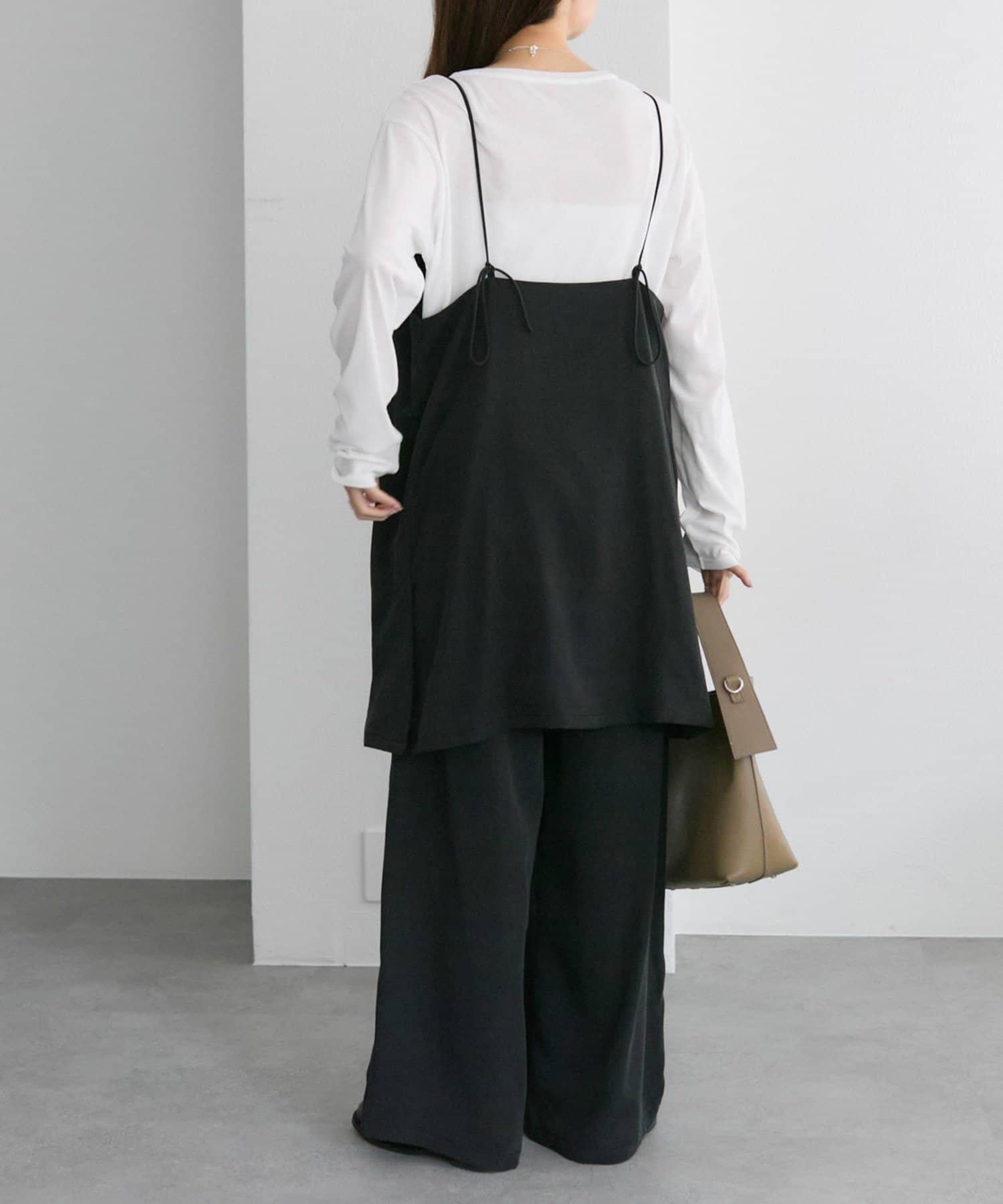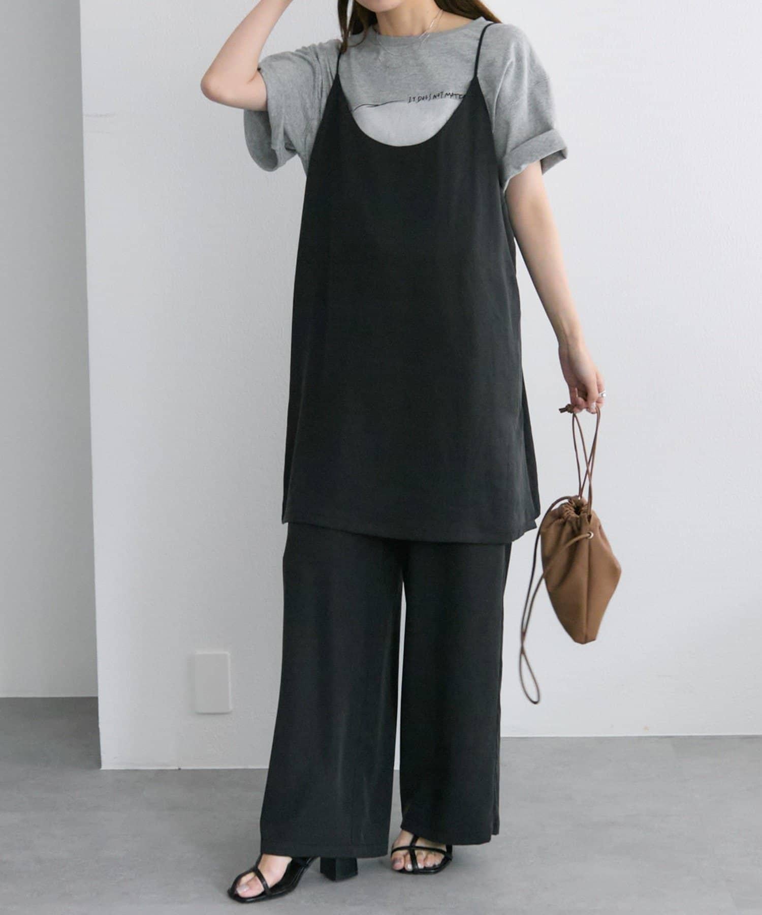 《百搭套裝◎/套裝商品》軟質帆布吊帶長款上衣+褲子套裝