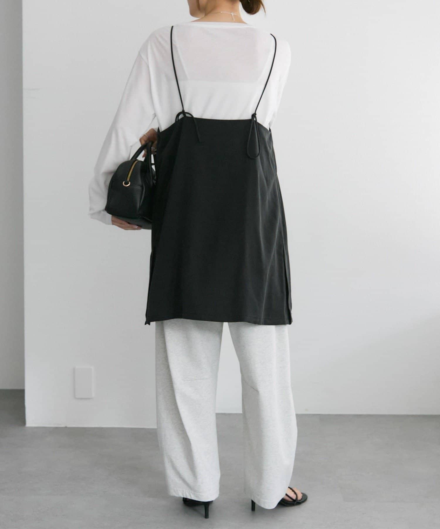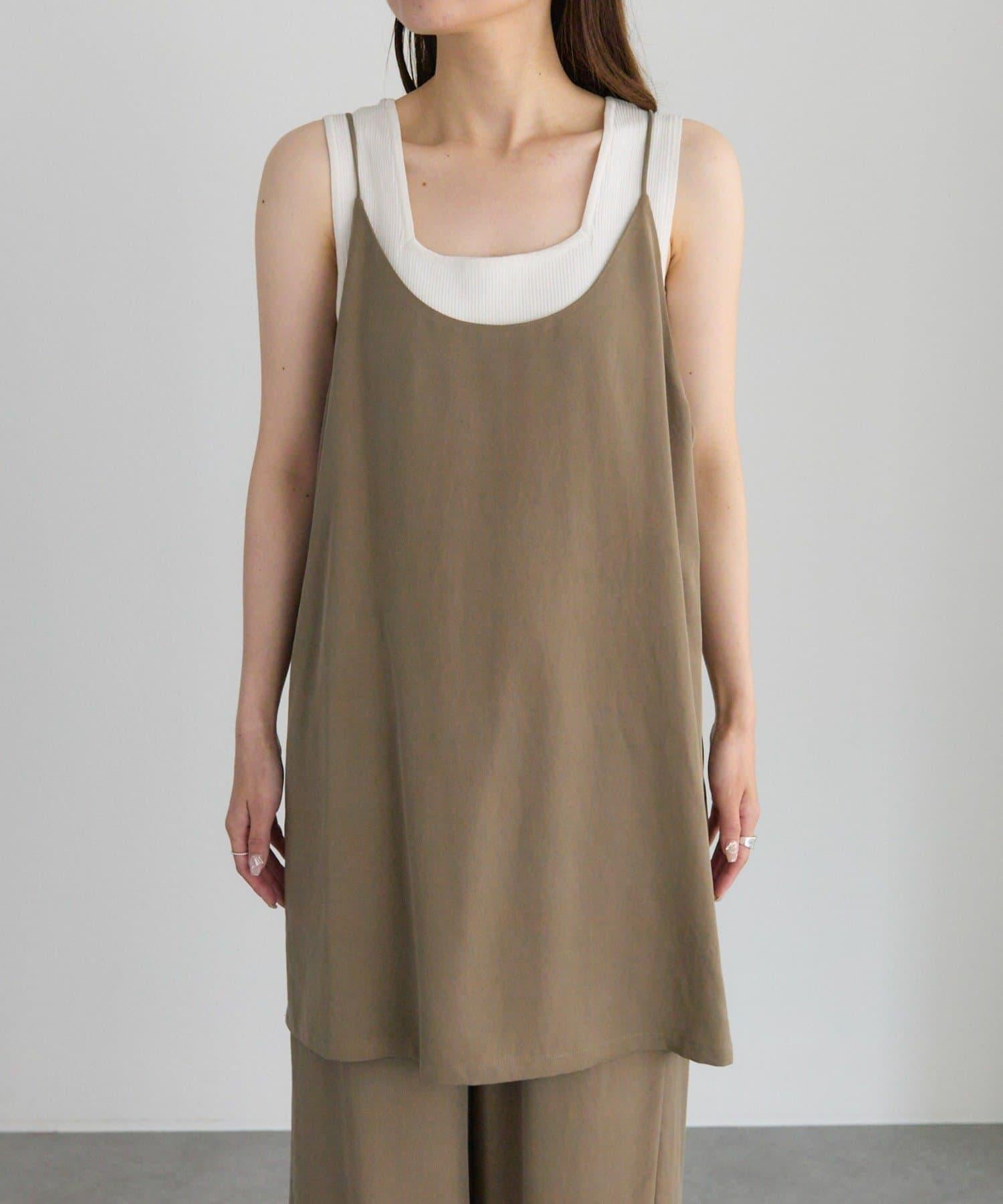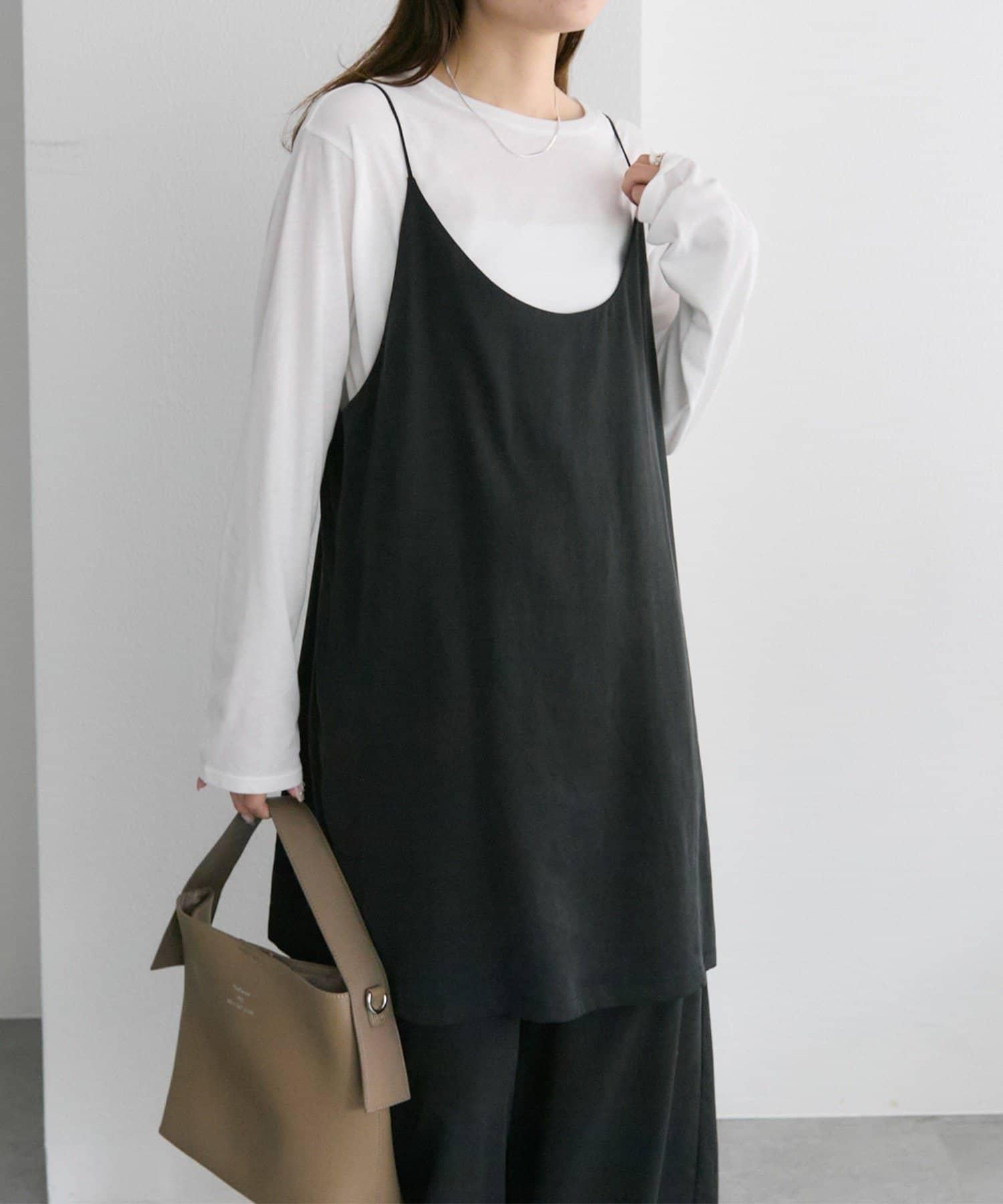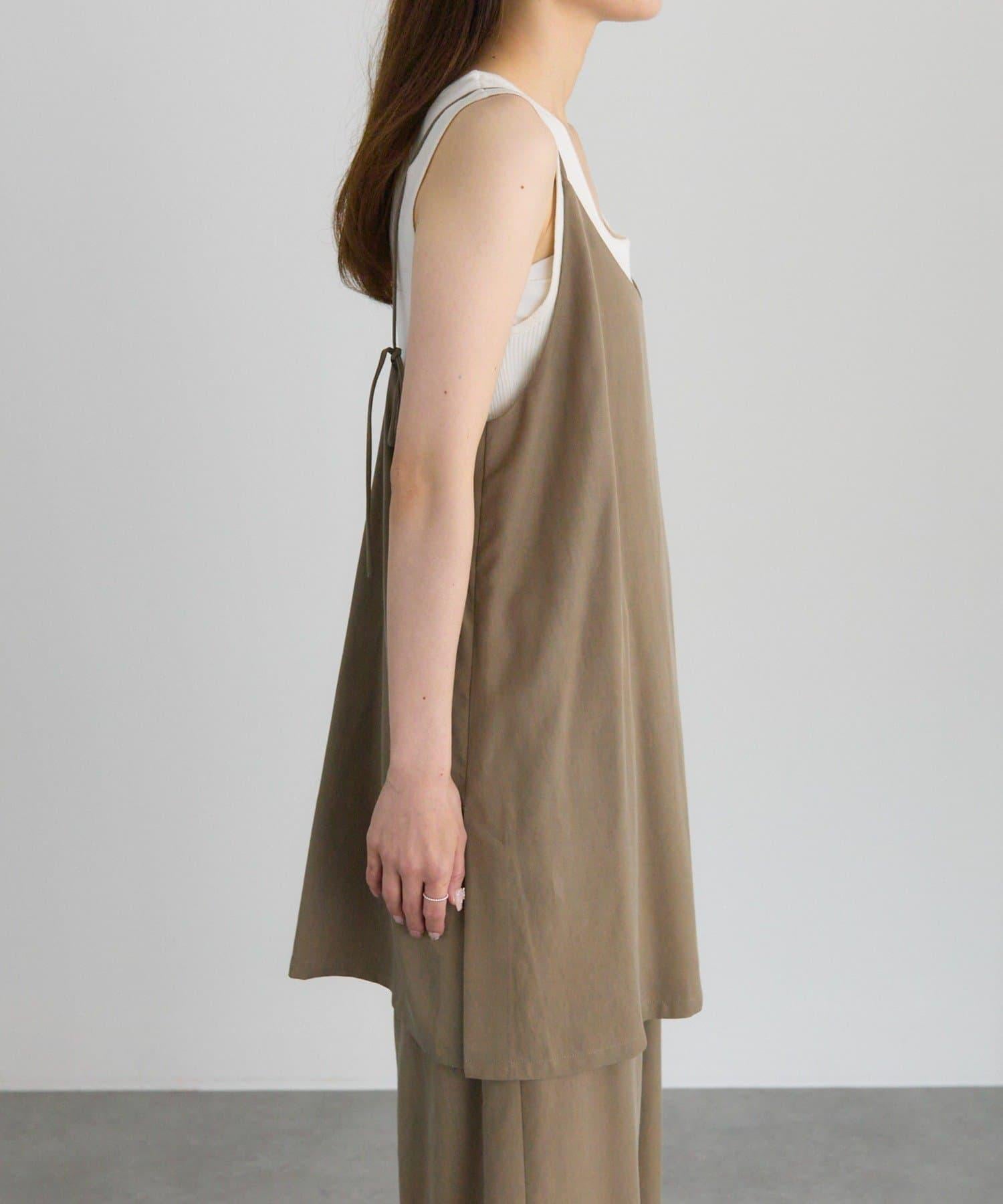 《百搭套裝◎/套裝商品》軟質帆布吊帶長款上衣+褲子套裝