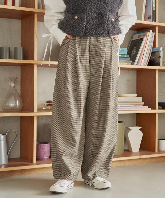 腰部的兩處收褶和下襬的褶襉使大腿至膝蓋處充滿體積感,寬大圓潤的輪廓呈現出立體感。