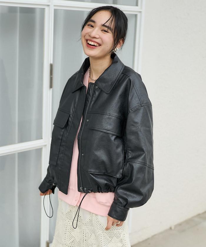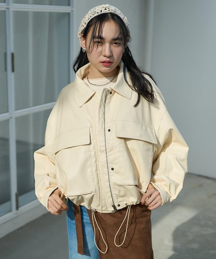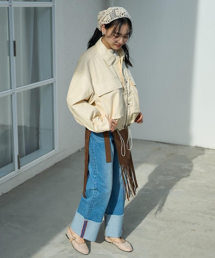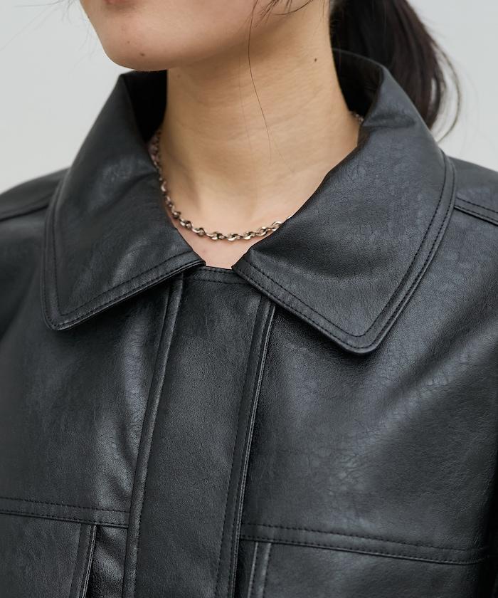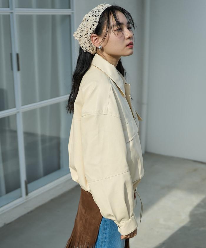 具有復古質感的皮革短罩衫,打造時尚造型。