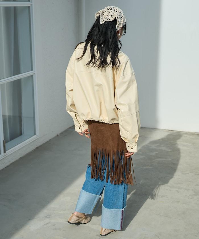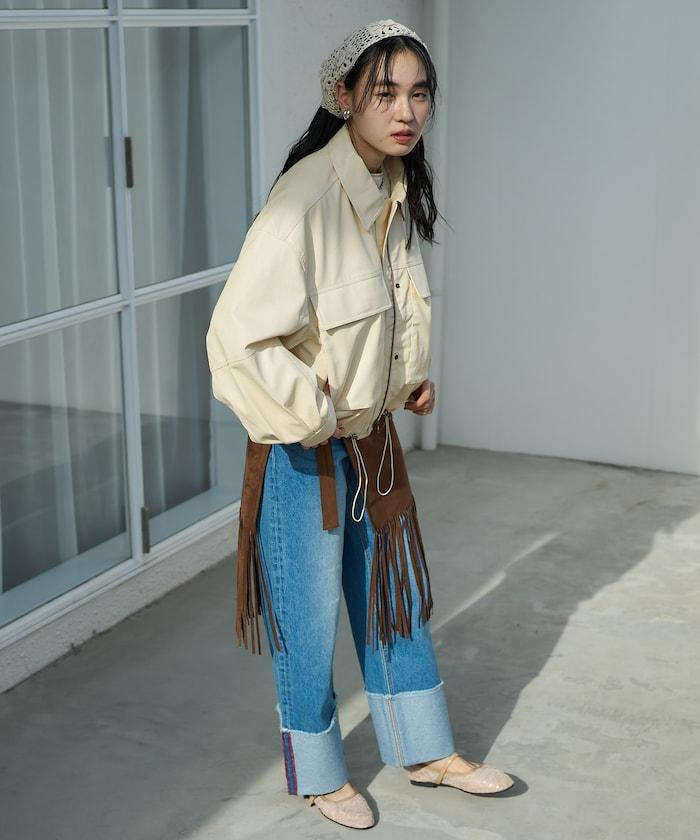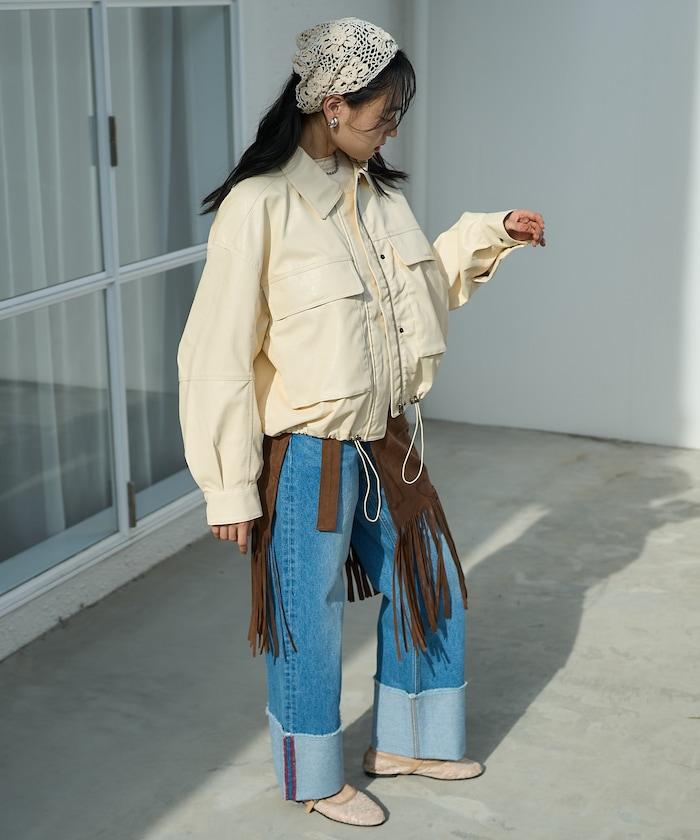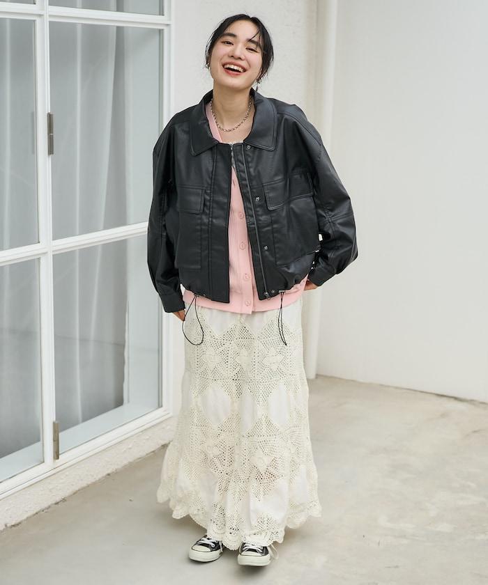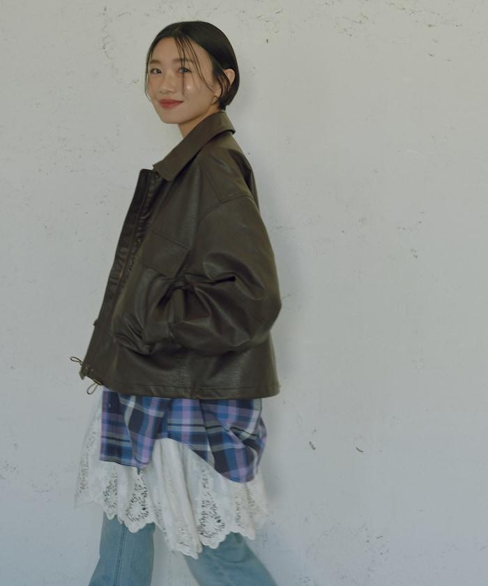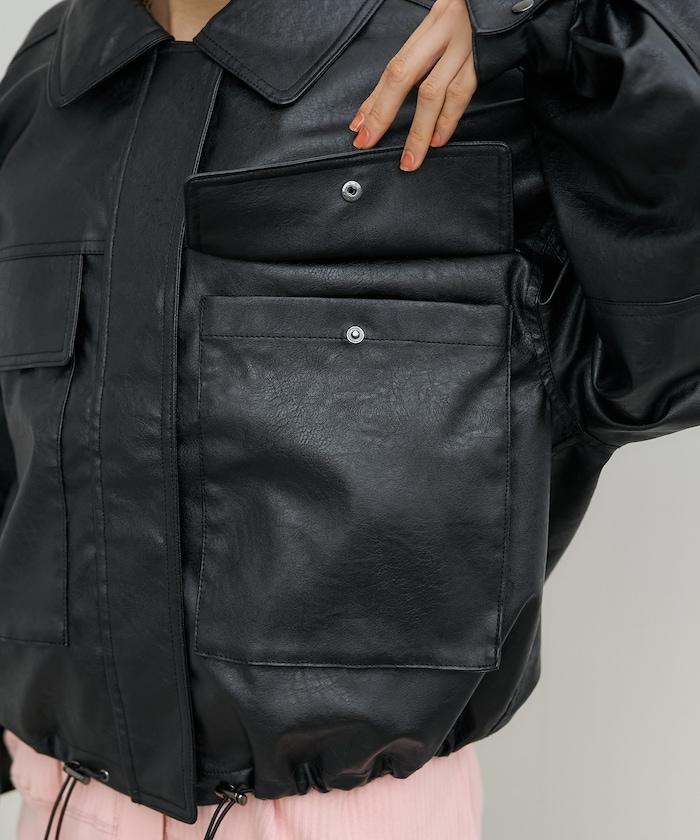 具有復古質感的皮革短罩衫,打造時尚造型。