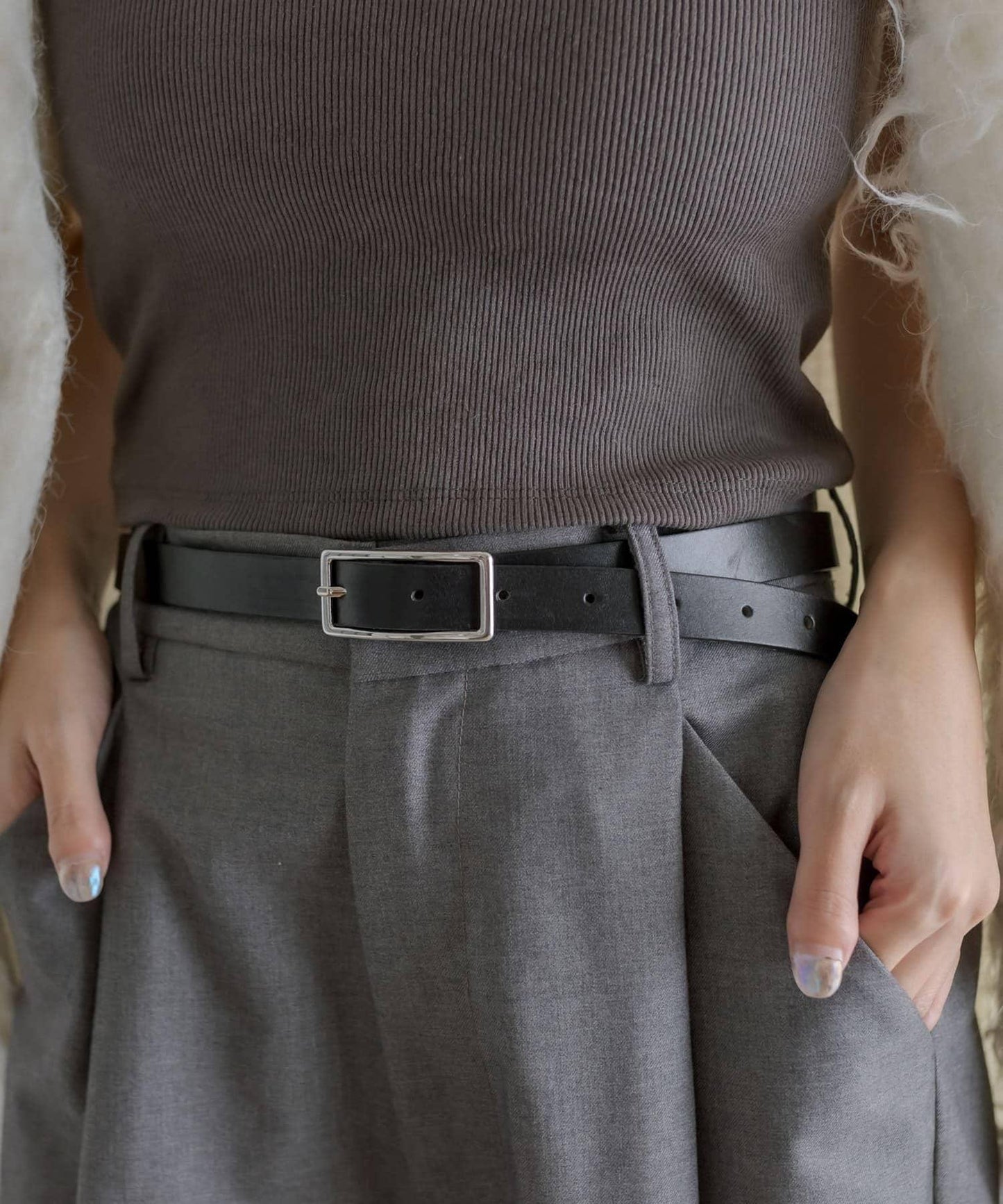 皮帶粗細適中,便於搭配各種造型。