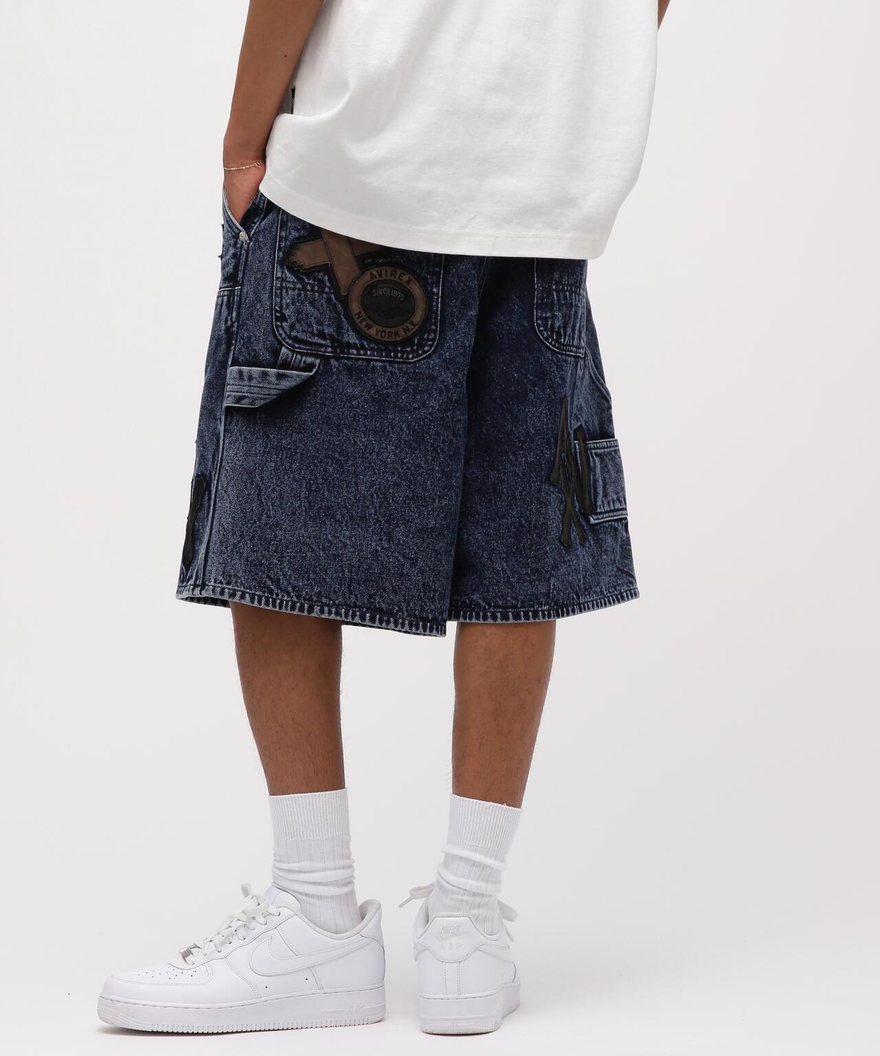 短褲的設計以雙膝彩繪長褲為基礎,以皮革補丁為特色。AVIREX 成立於 1975 年,當時是美國空軍的承包商,因供應飛行夾克而知名度大增。該系列獨特的色彩和富有創意的圖案設計在 HIPHOP 界和其他領域得到廣泛應用,品牌產品已成為運動裝和休閒裝的熱門選擇。