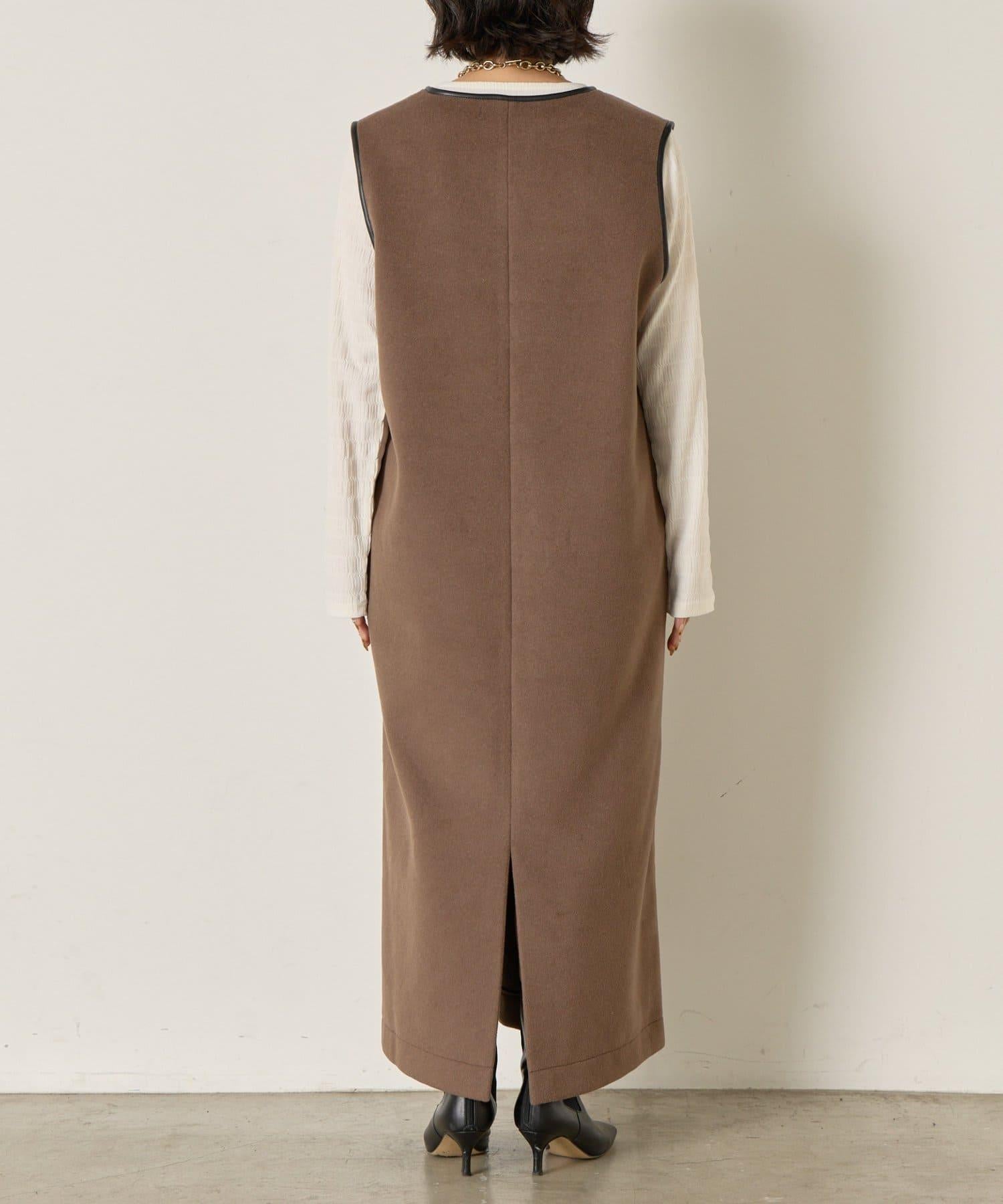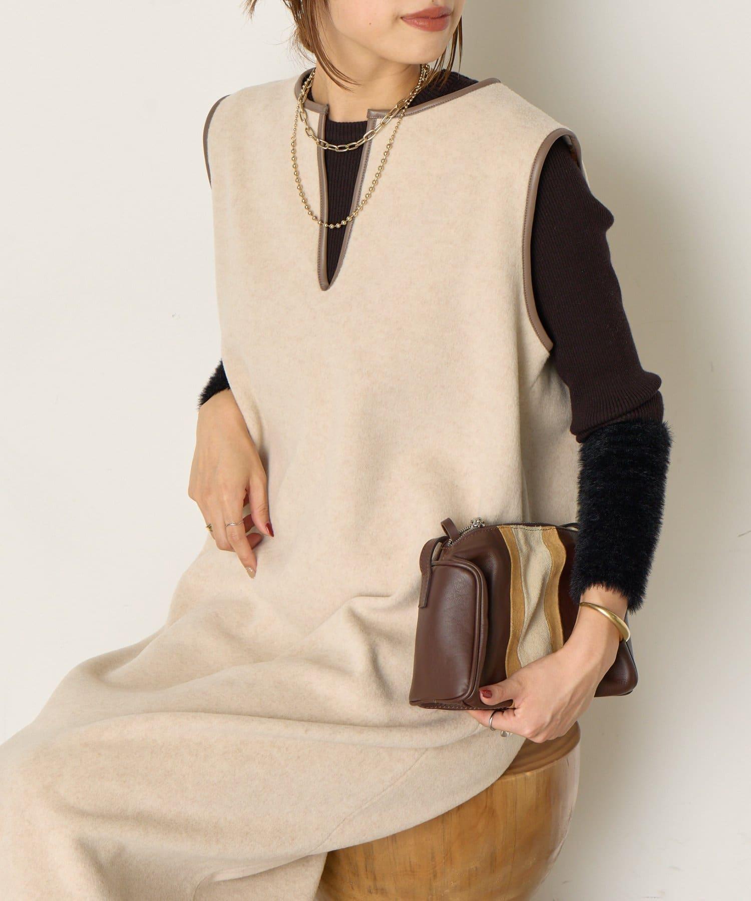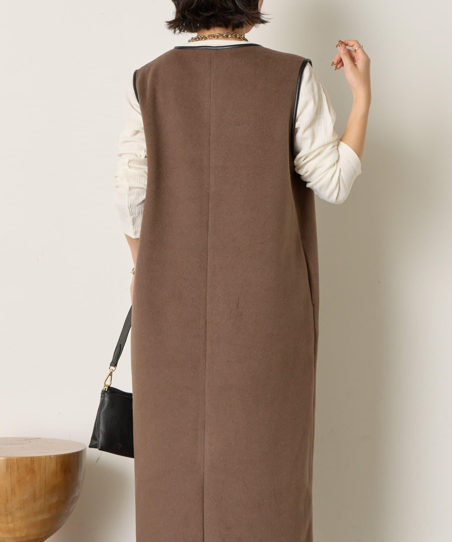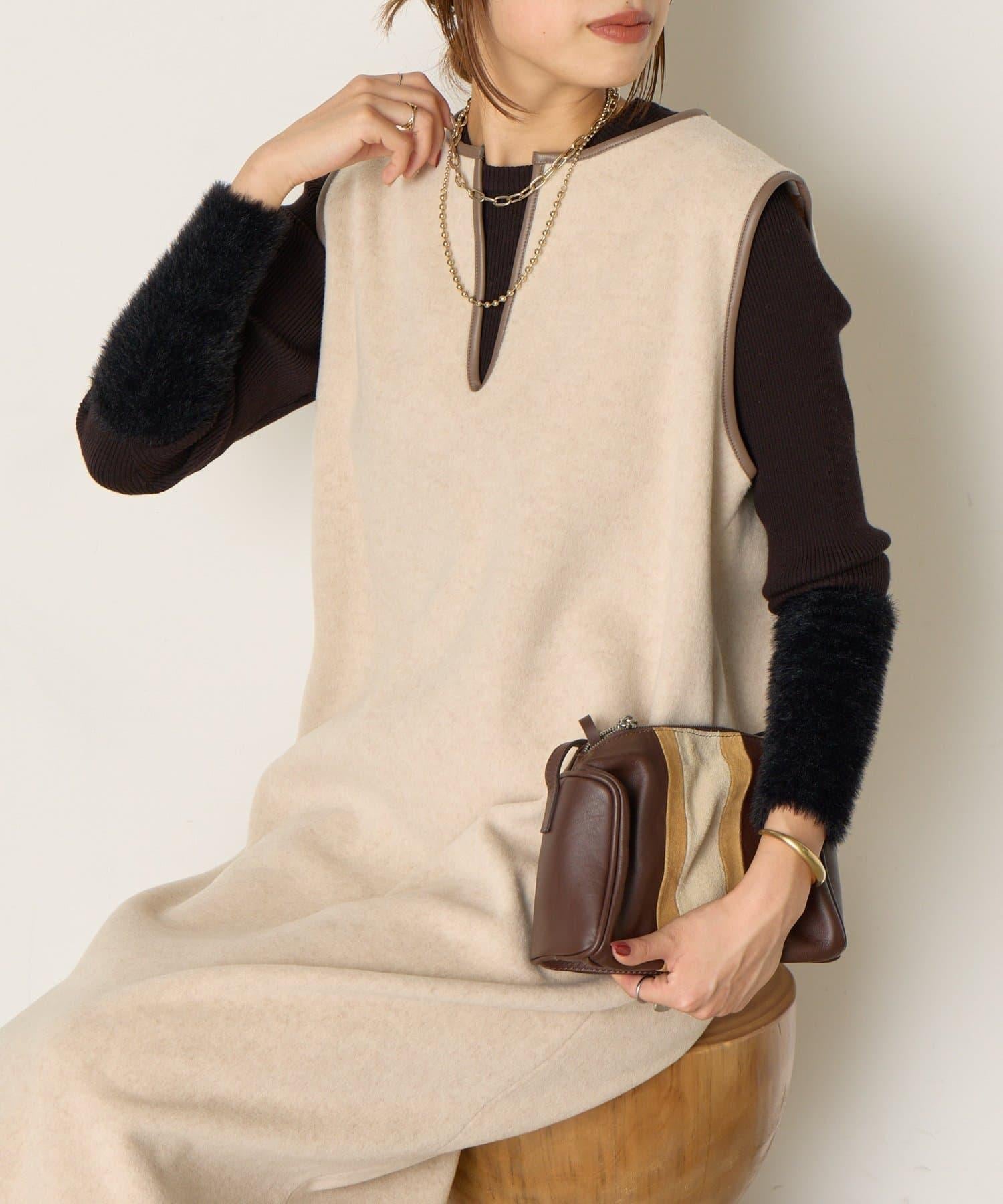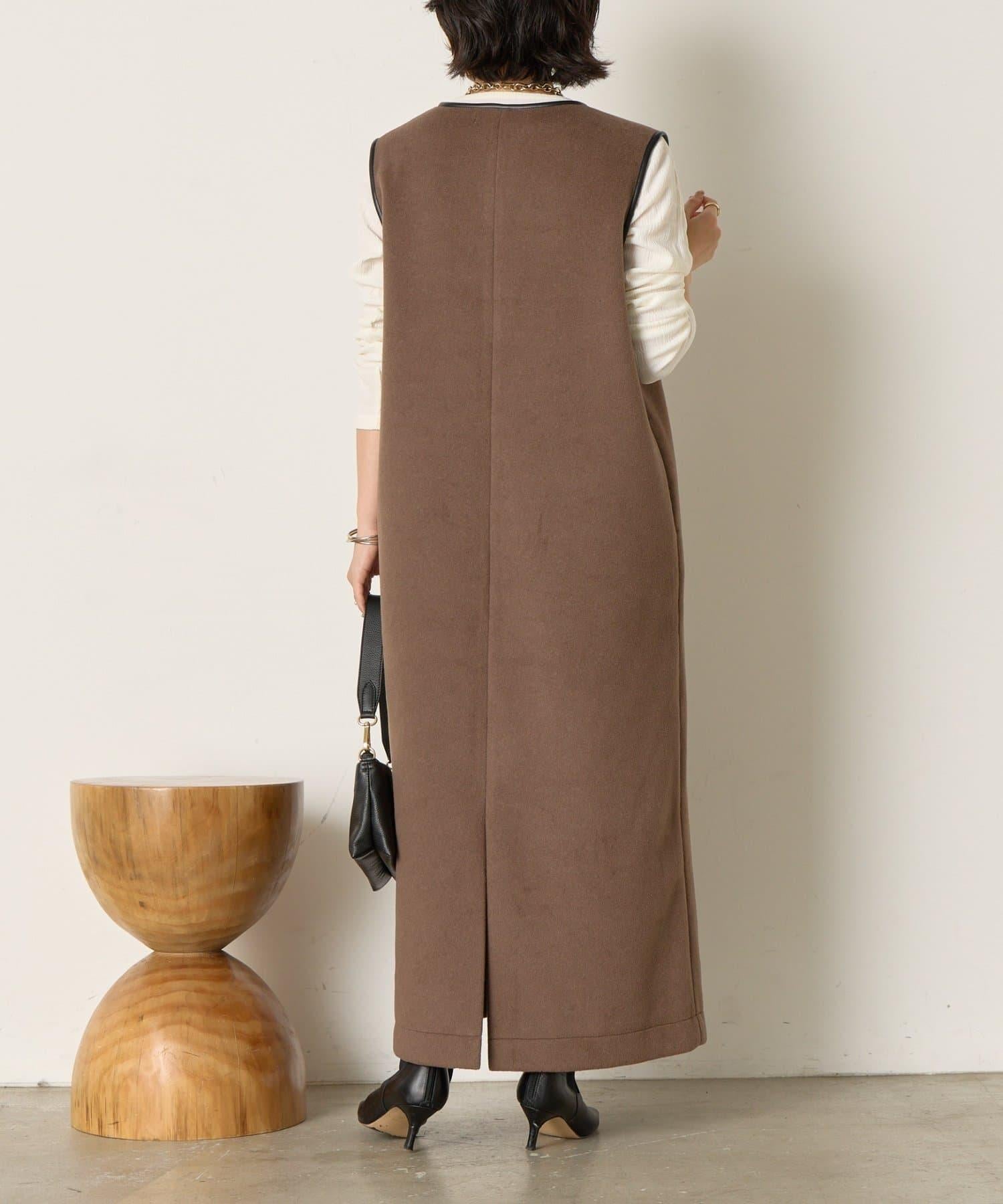 一款在臂環和袖口以皮革滾邊點綴的坎肩。