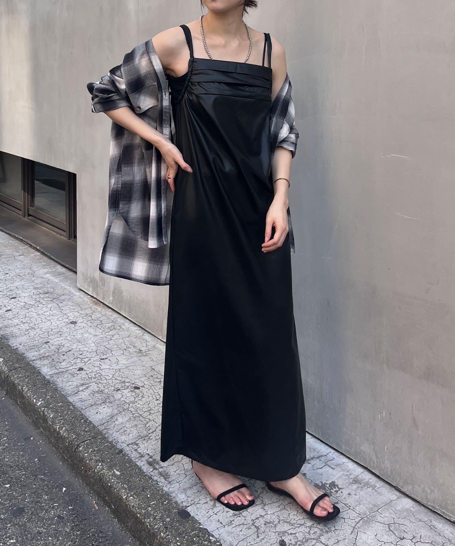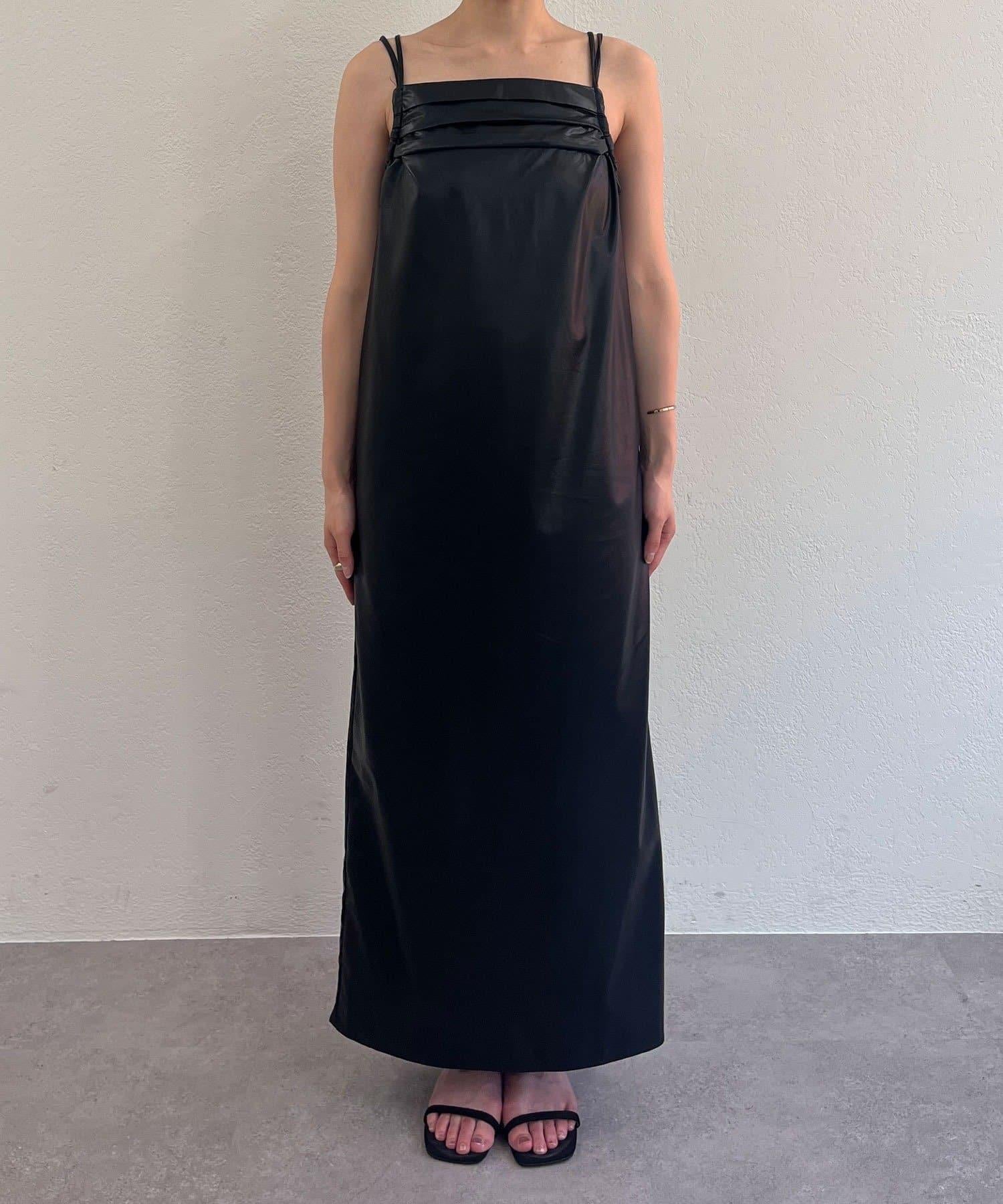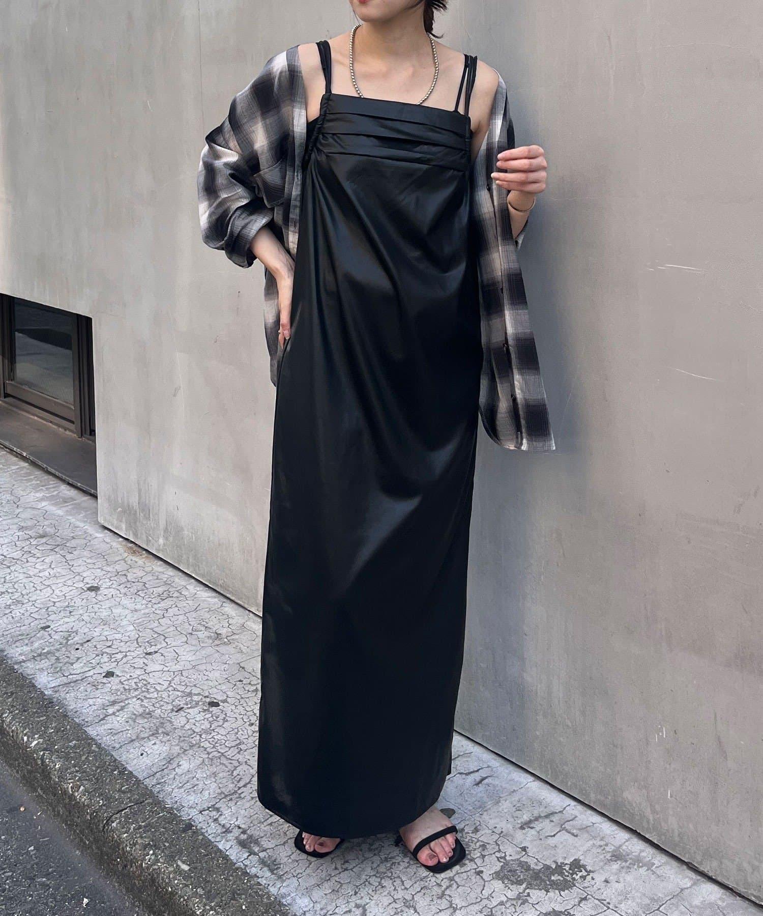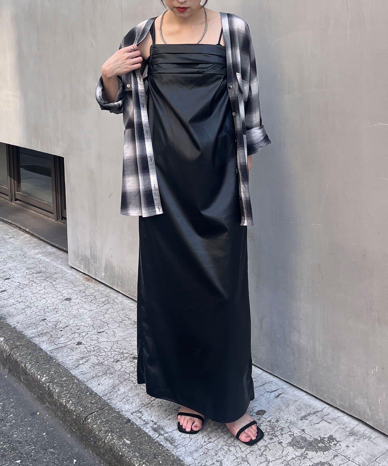 這款連衣裙採用仿皮材質,為秋季增添了一抹亮色。