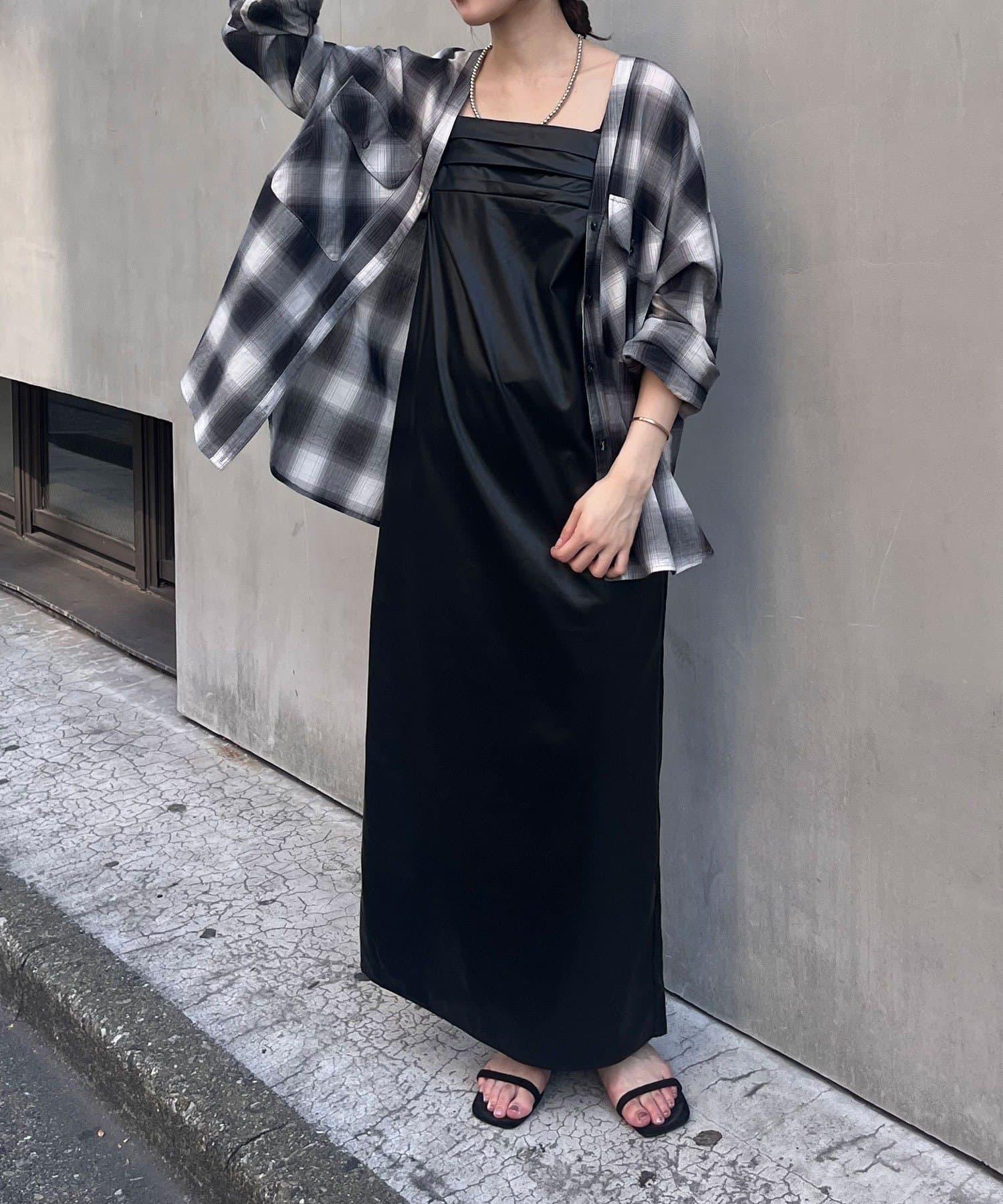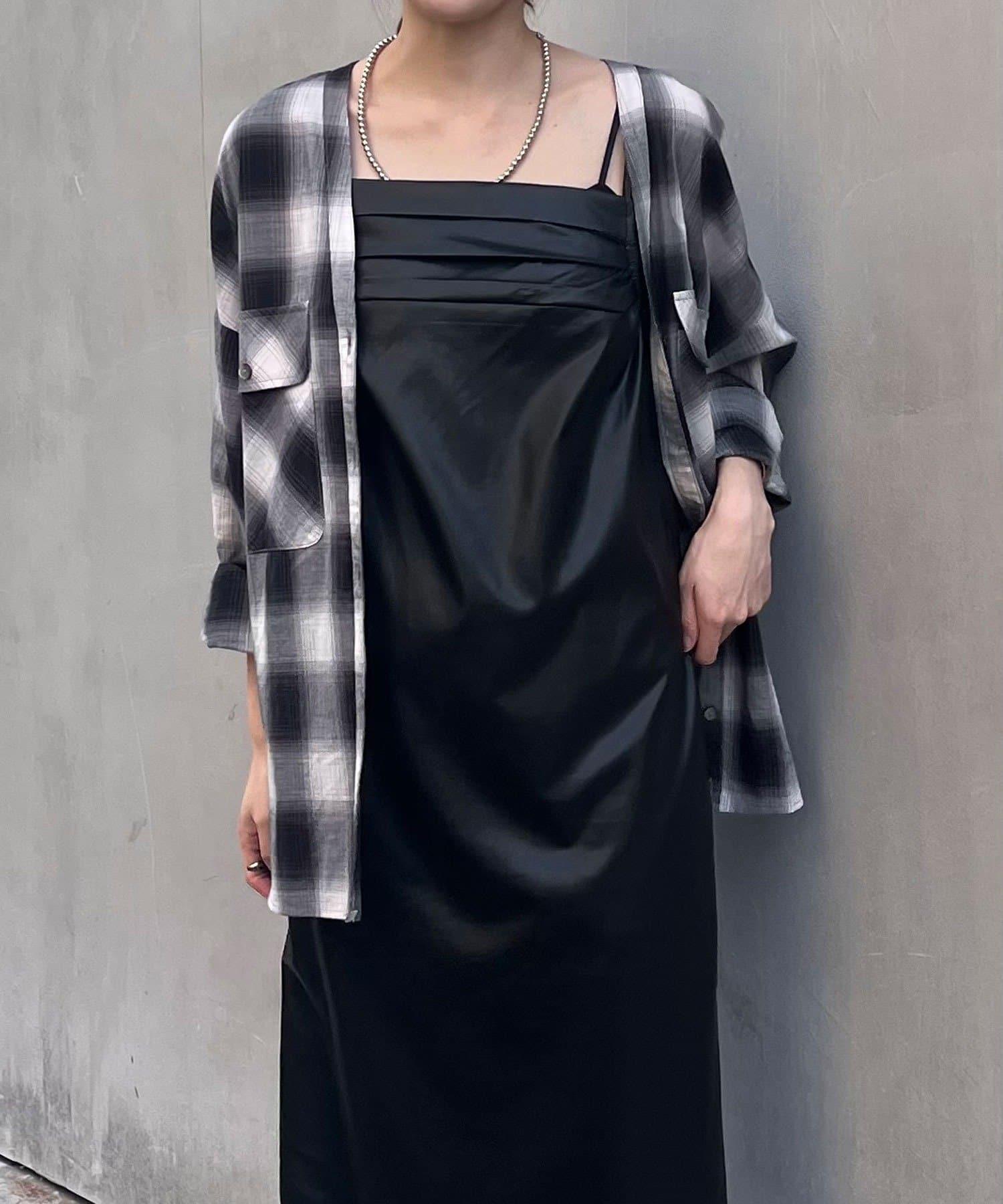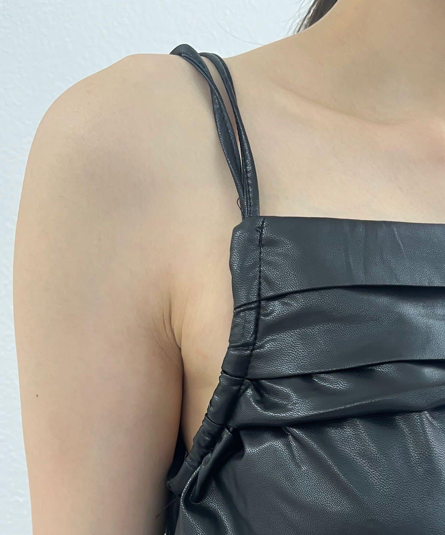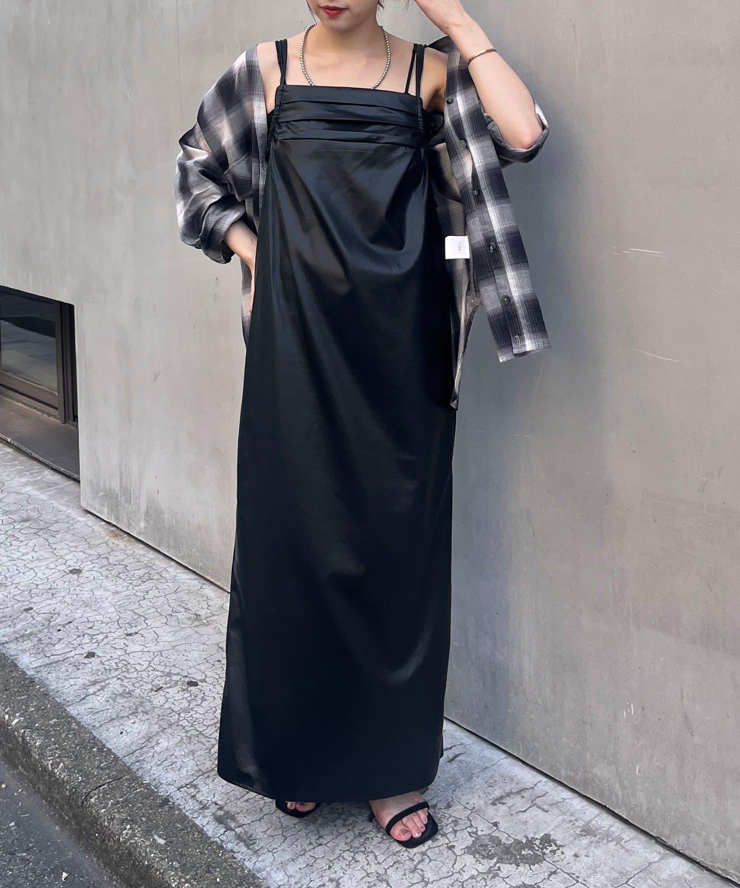 這款連衣裙採用仿皮材質,為秋季增添了一抹亮色。