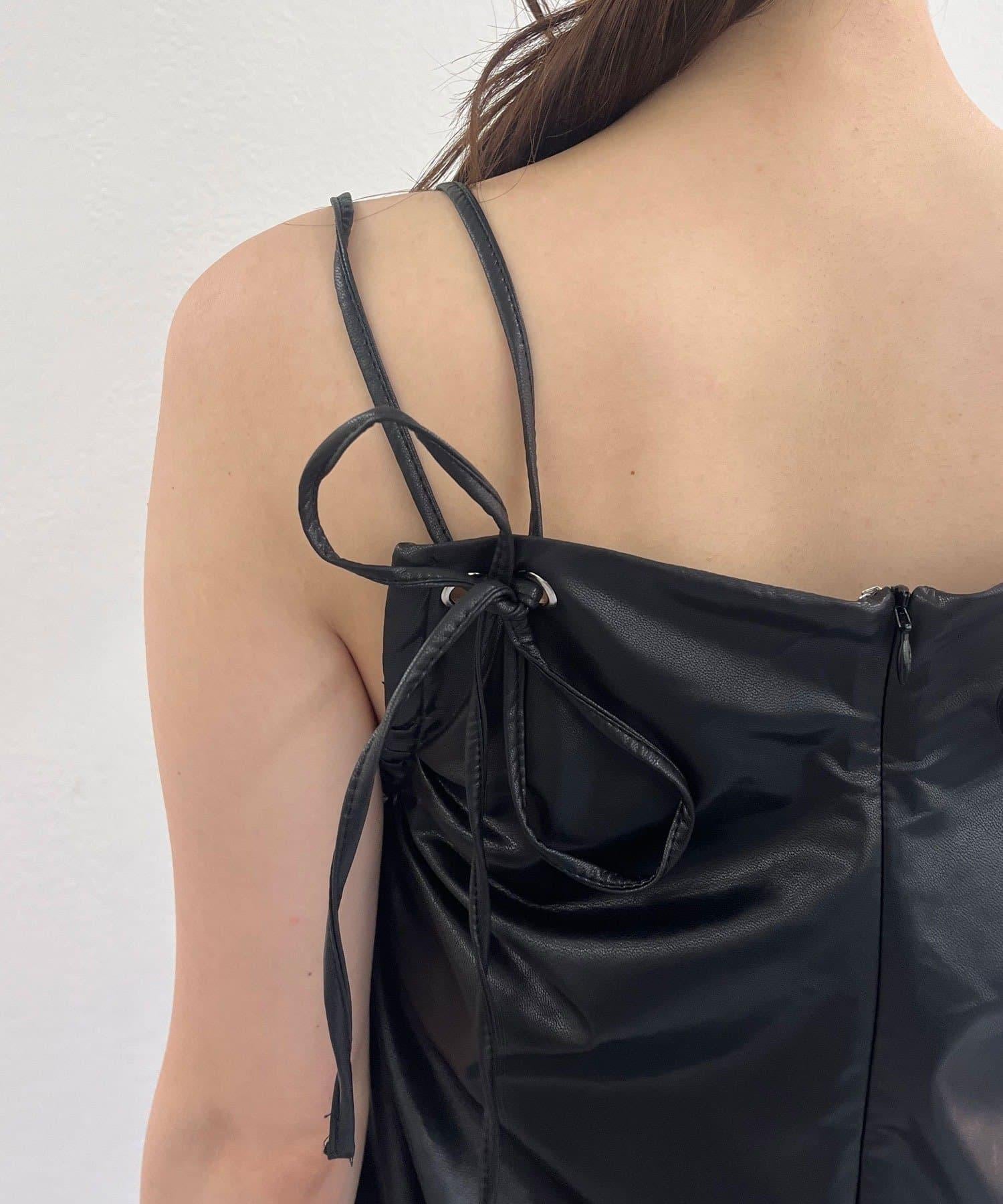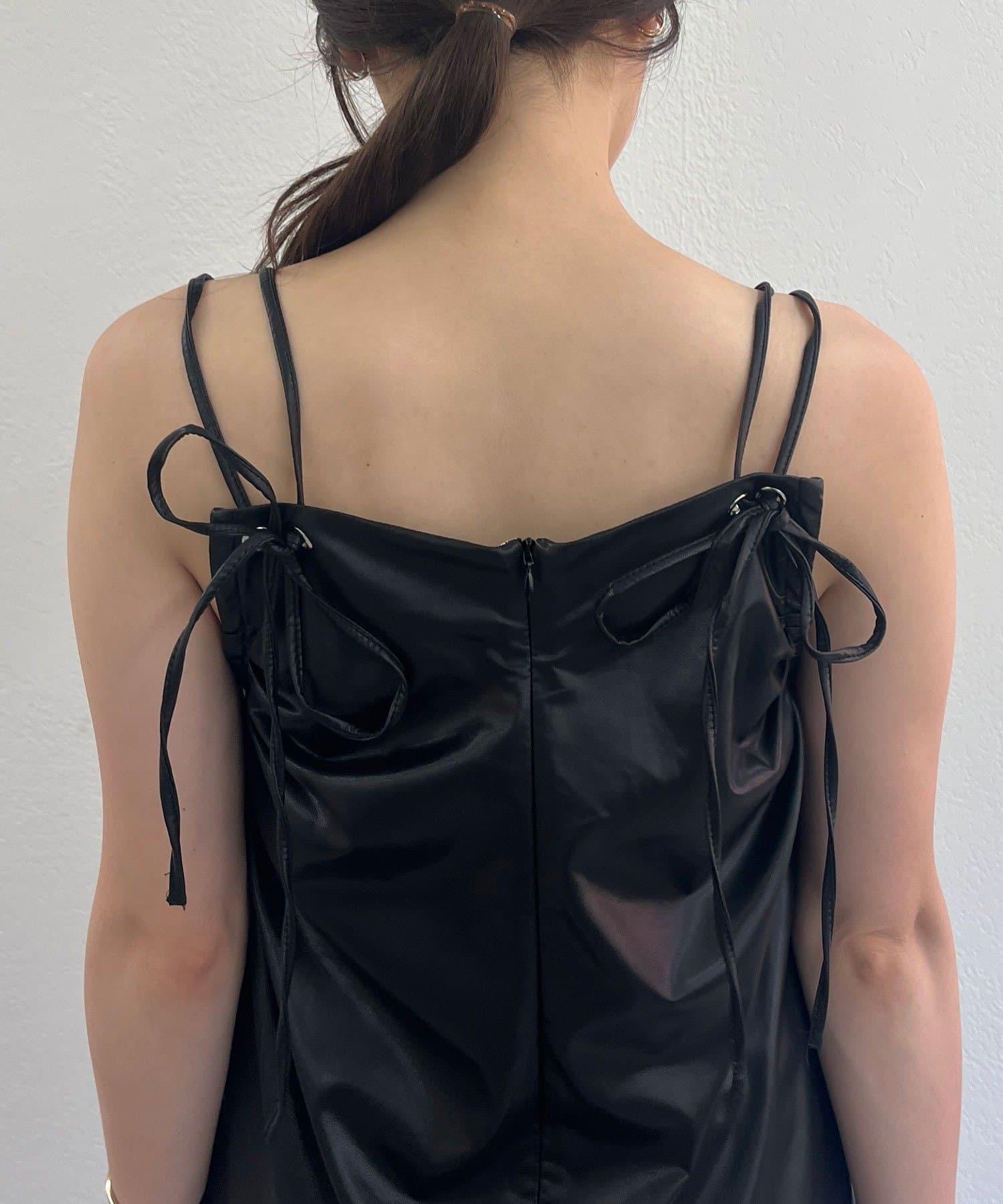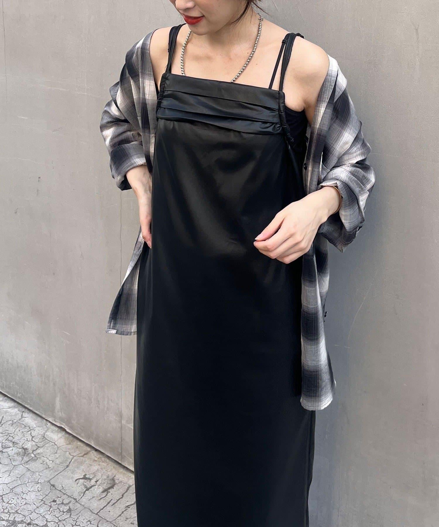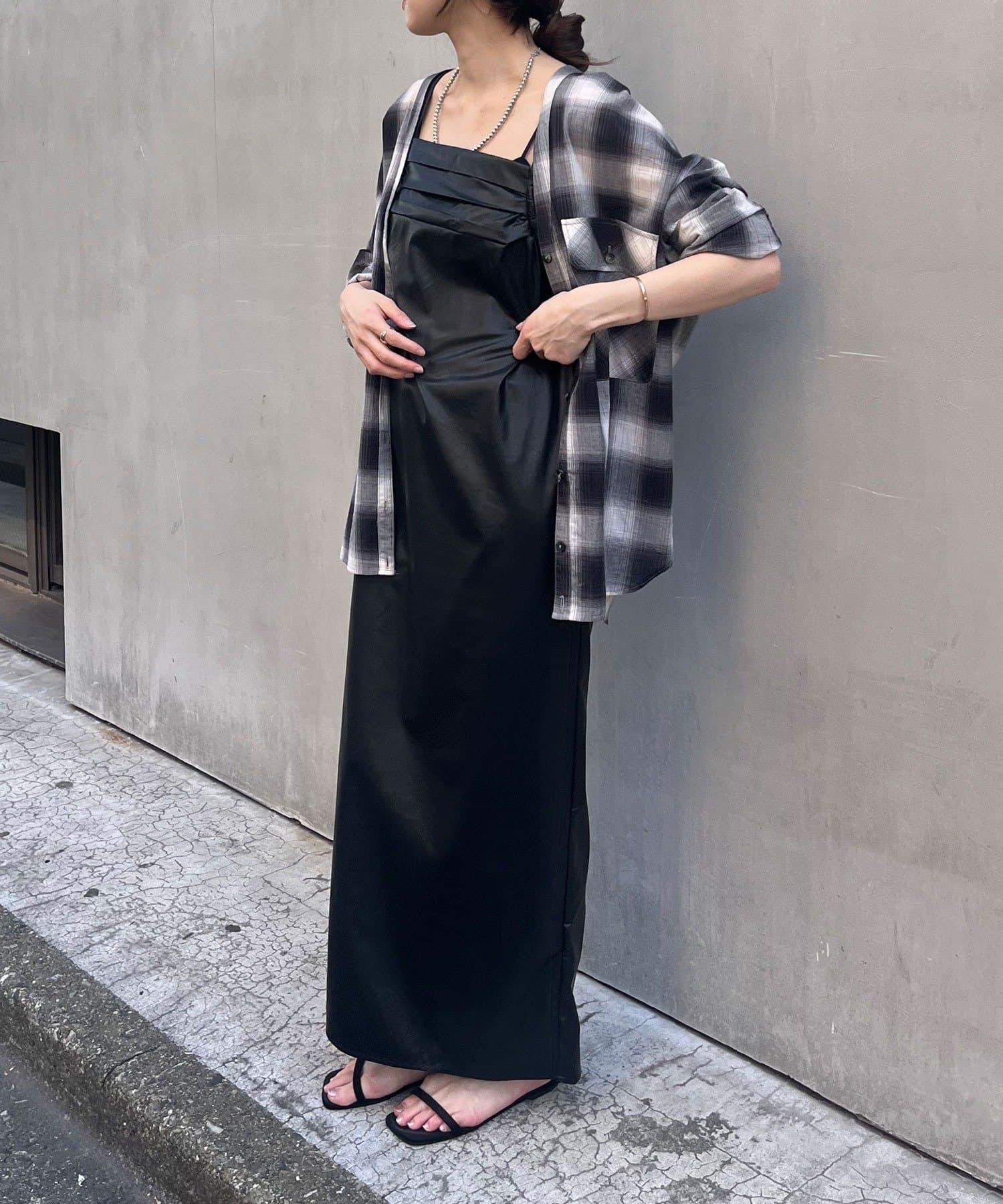 這款連衣裙採用仿皮材質,為秋季增添了一抹亮色。