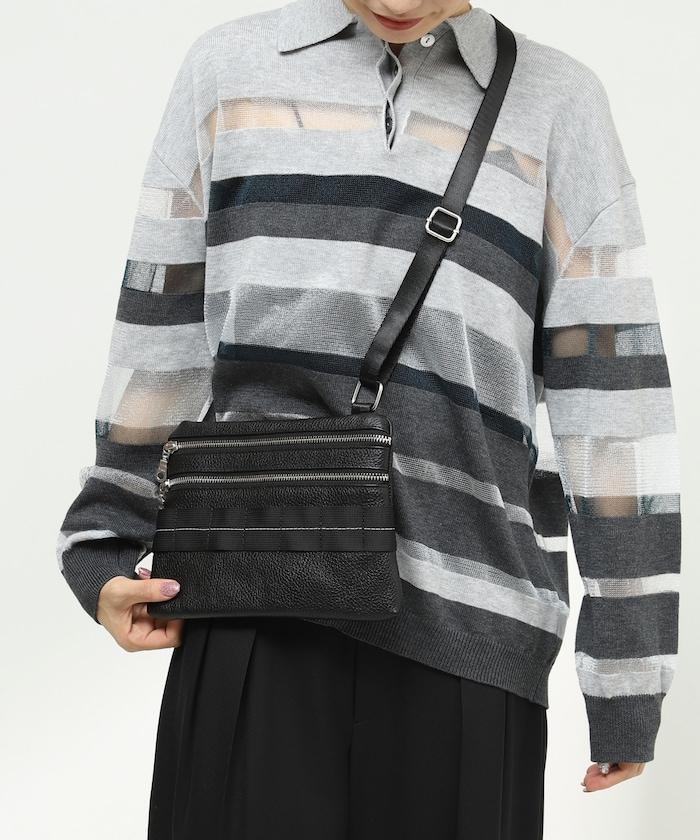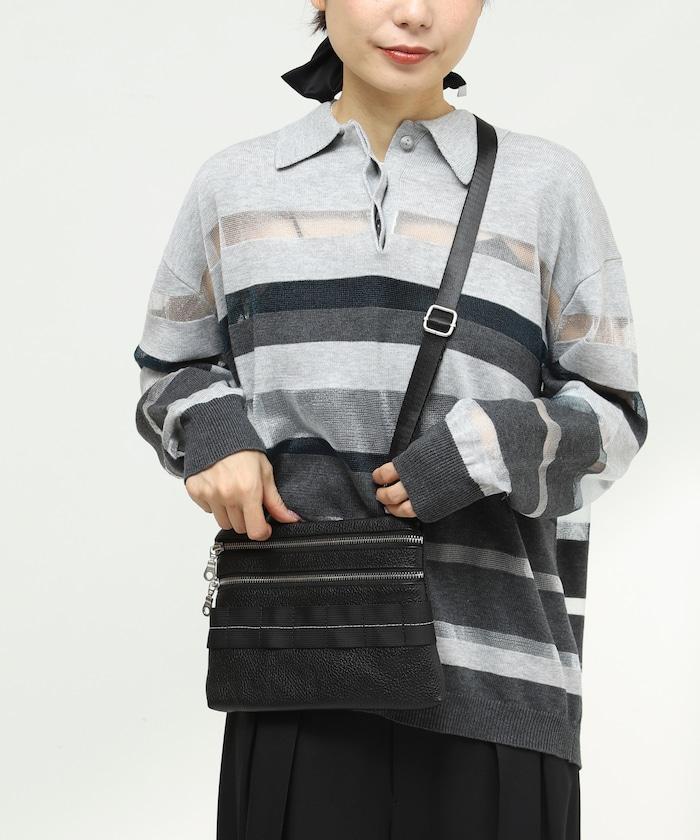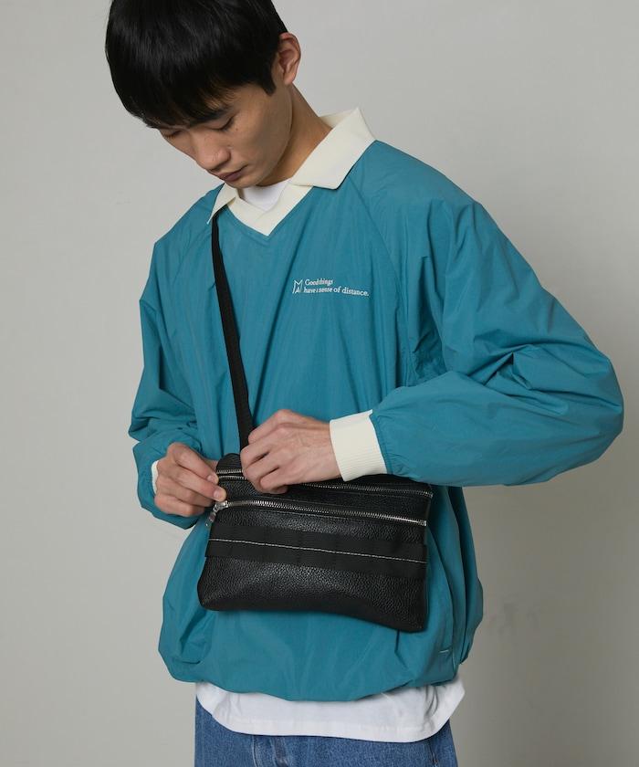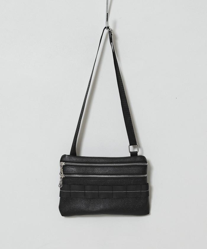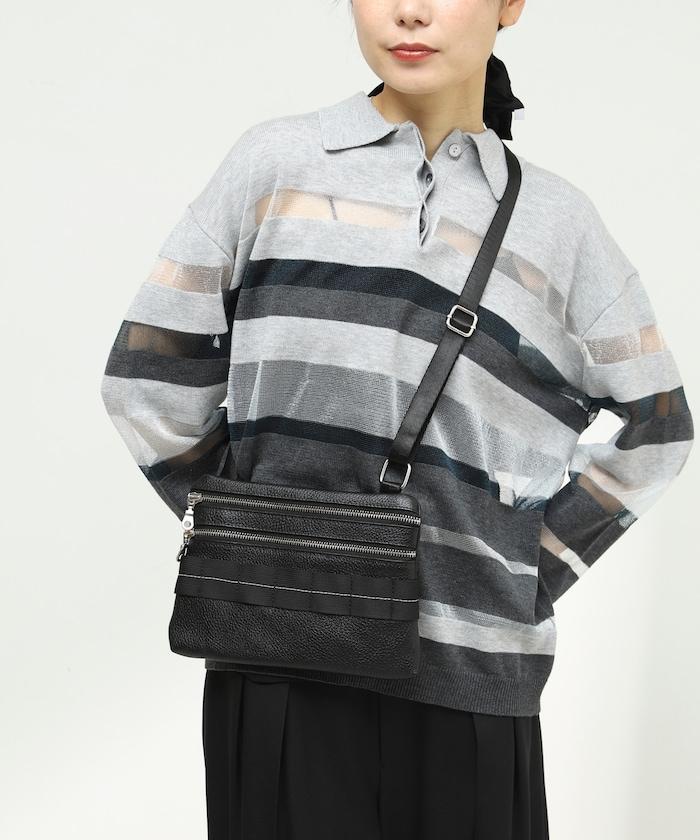 皮革拉鍊斜挎包 / 防水皮革 / 肩揹包