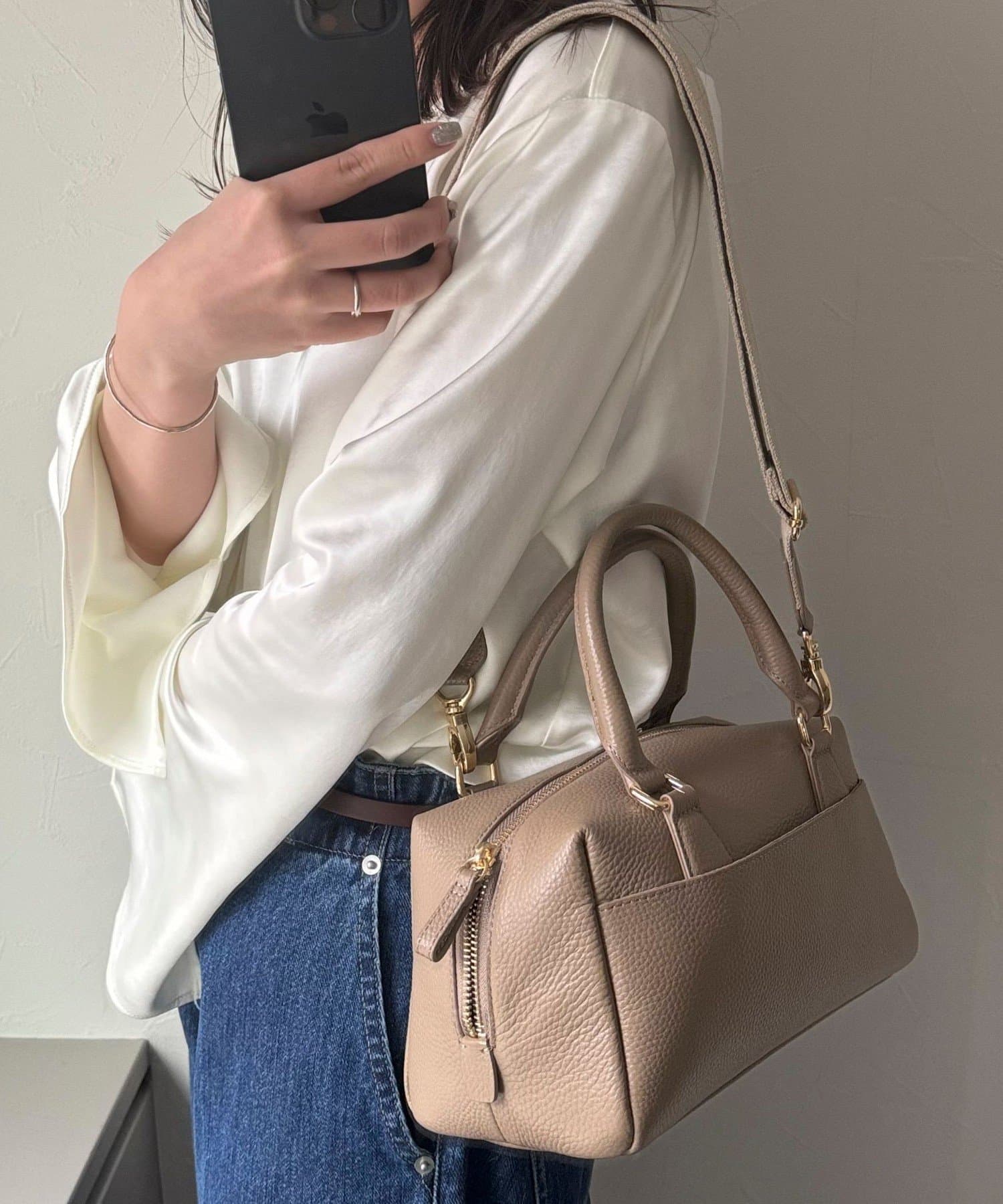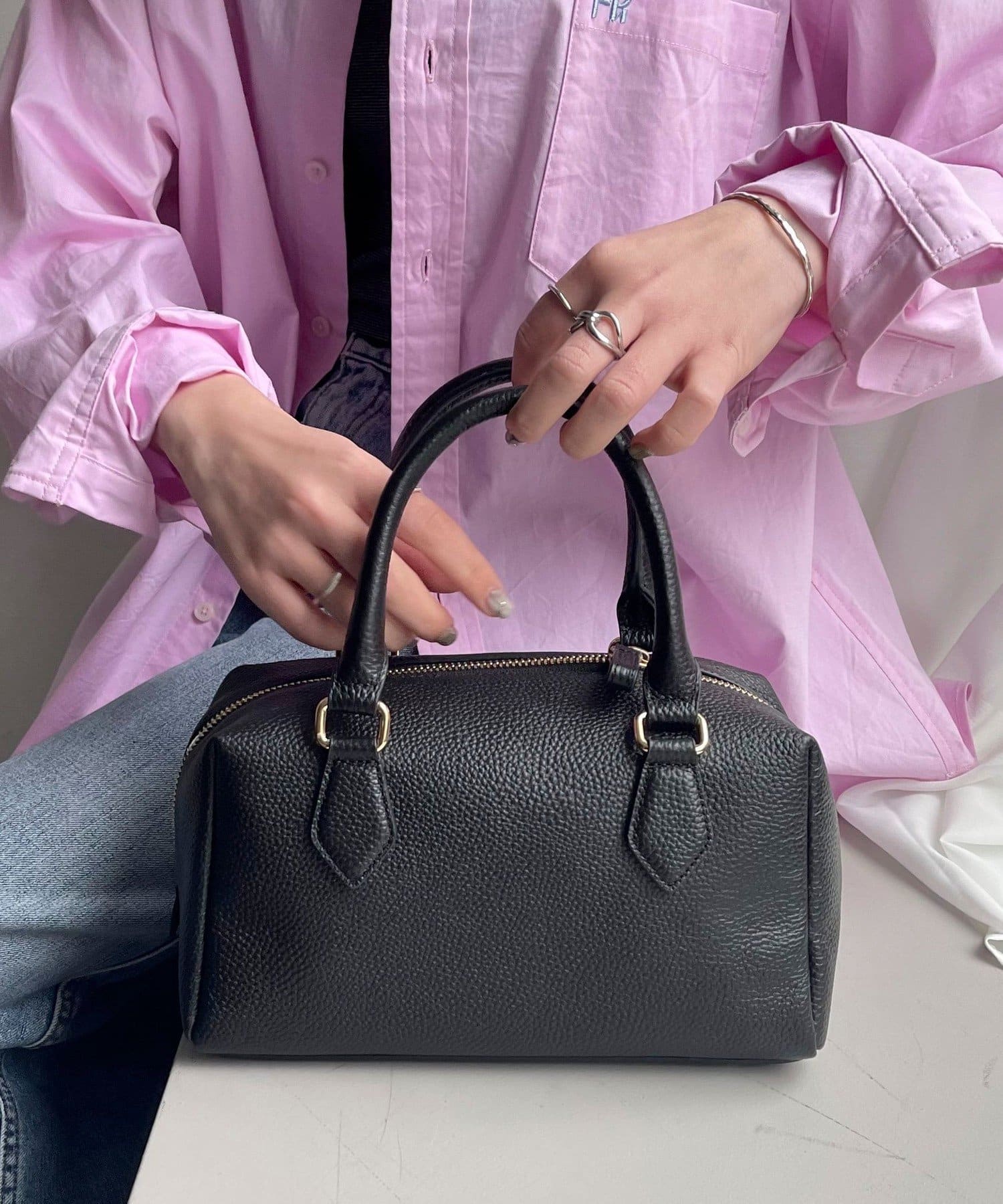 一款可用於多種用途的波士頓雙向綁帶單肩皮包。