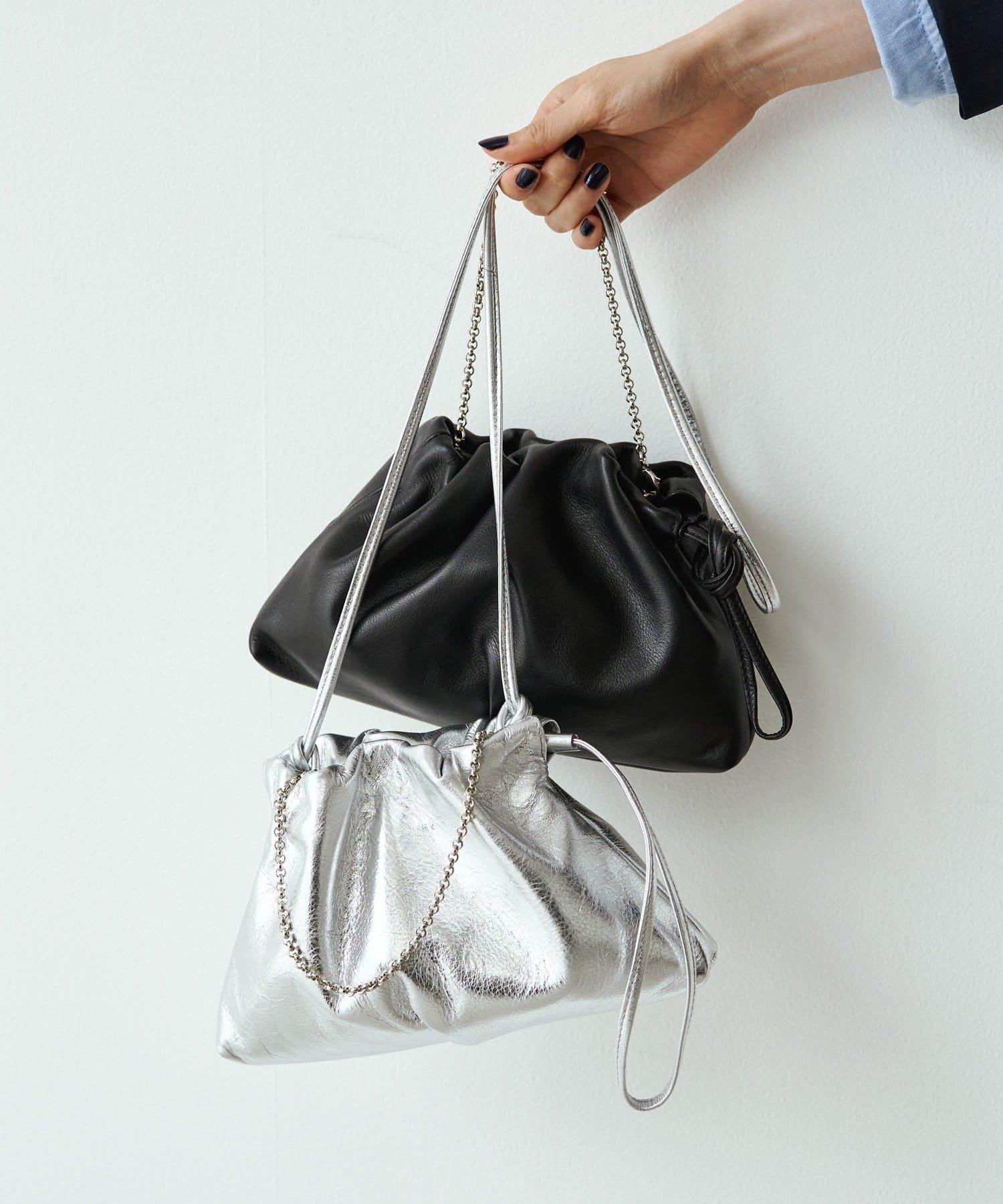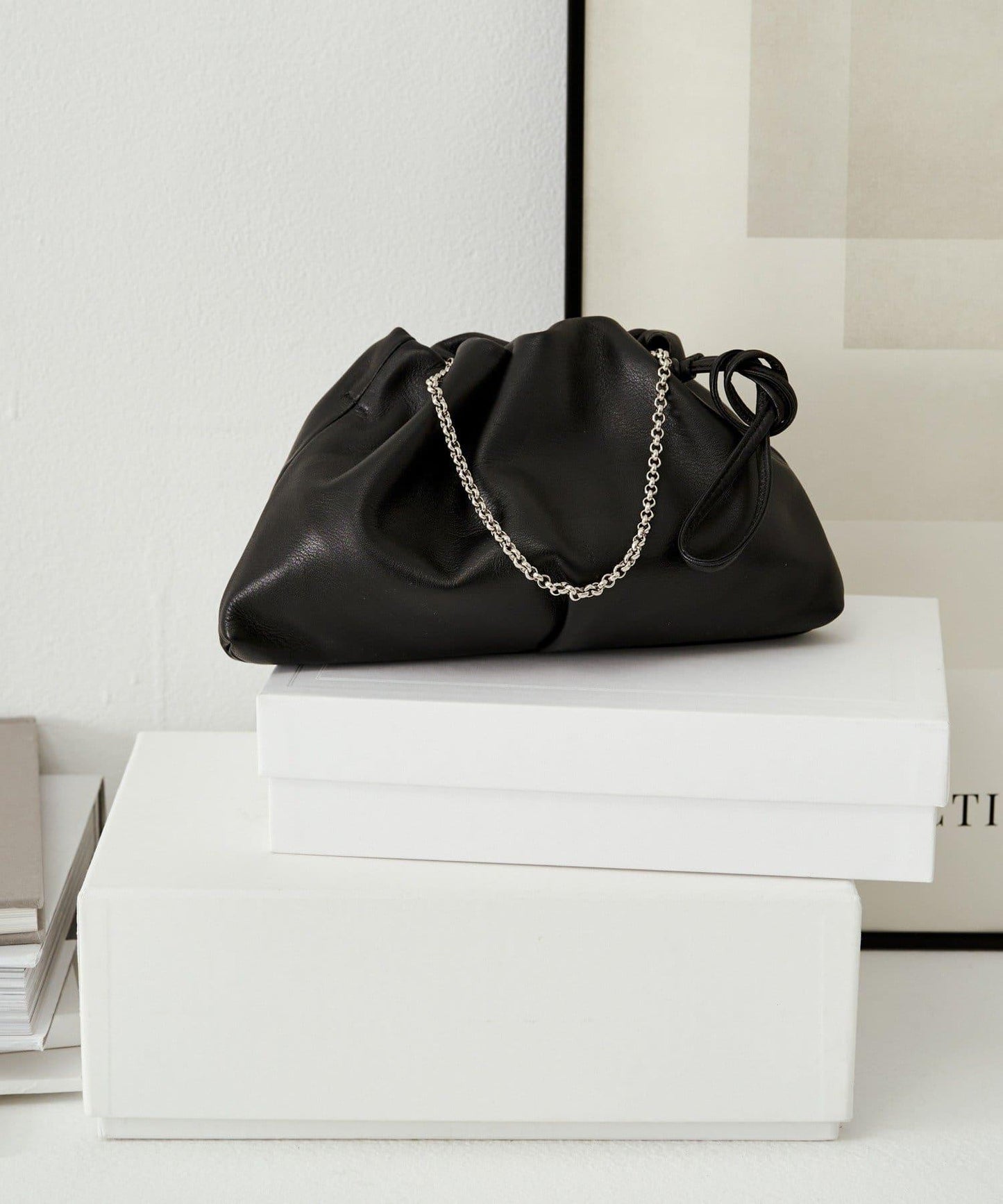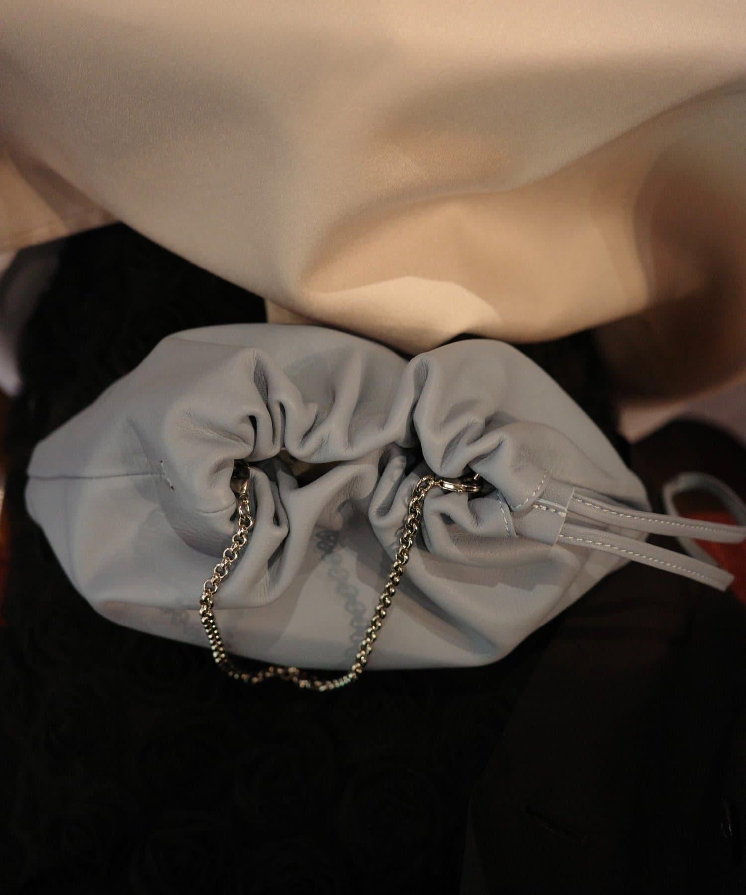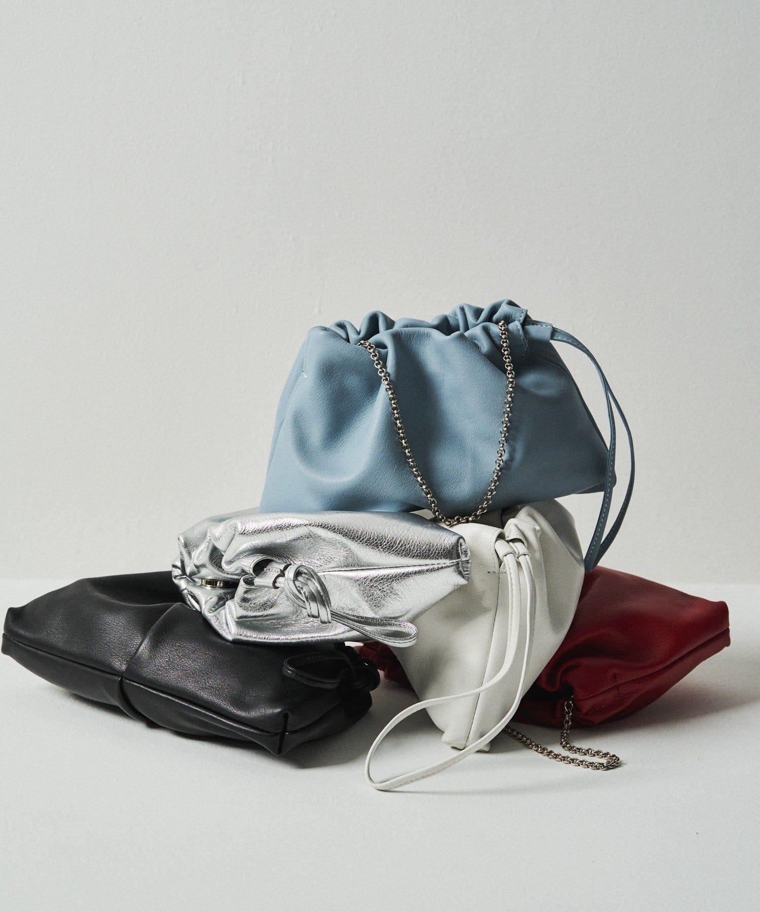 抽繩的柔軟造型與皮革的質感相得益彰。