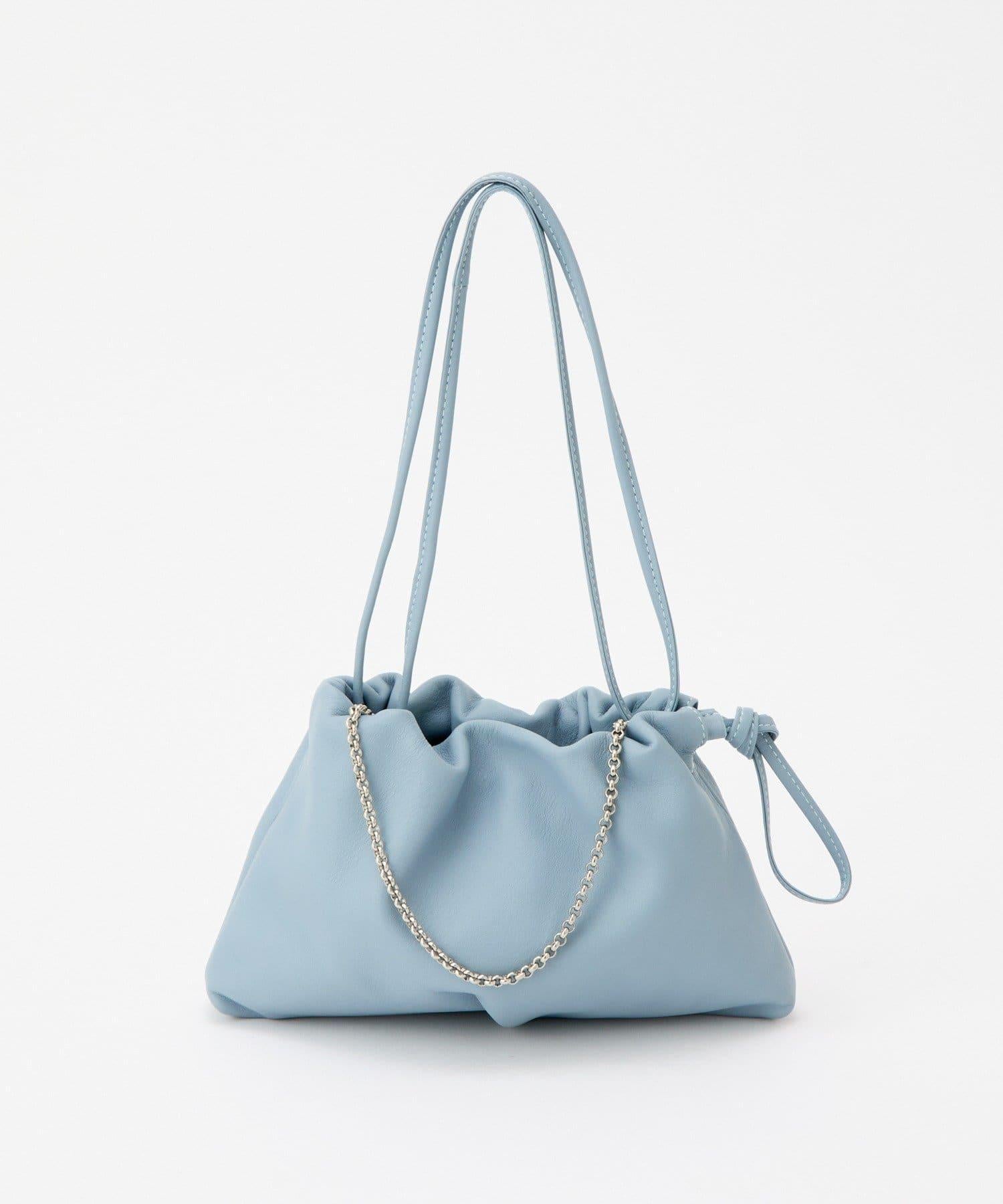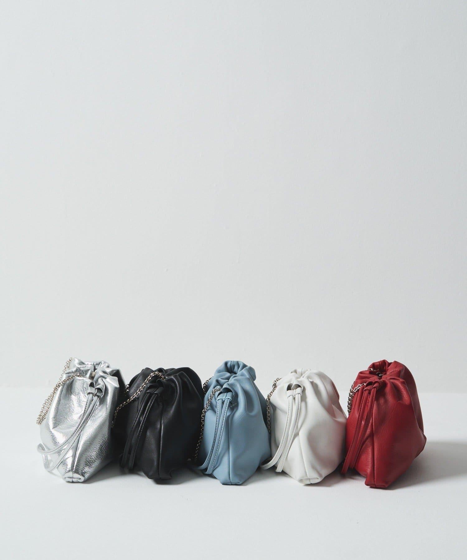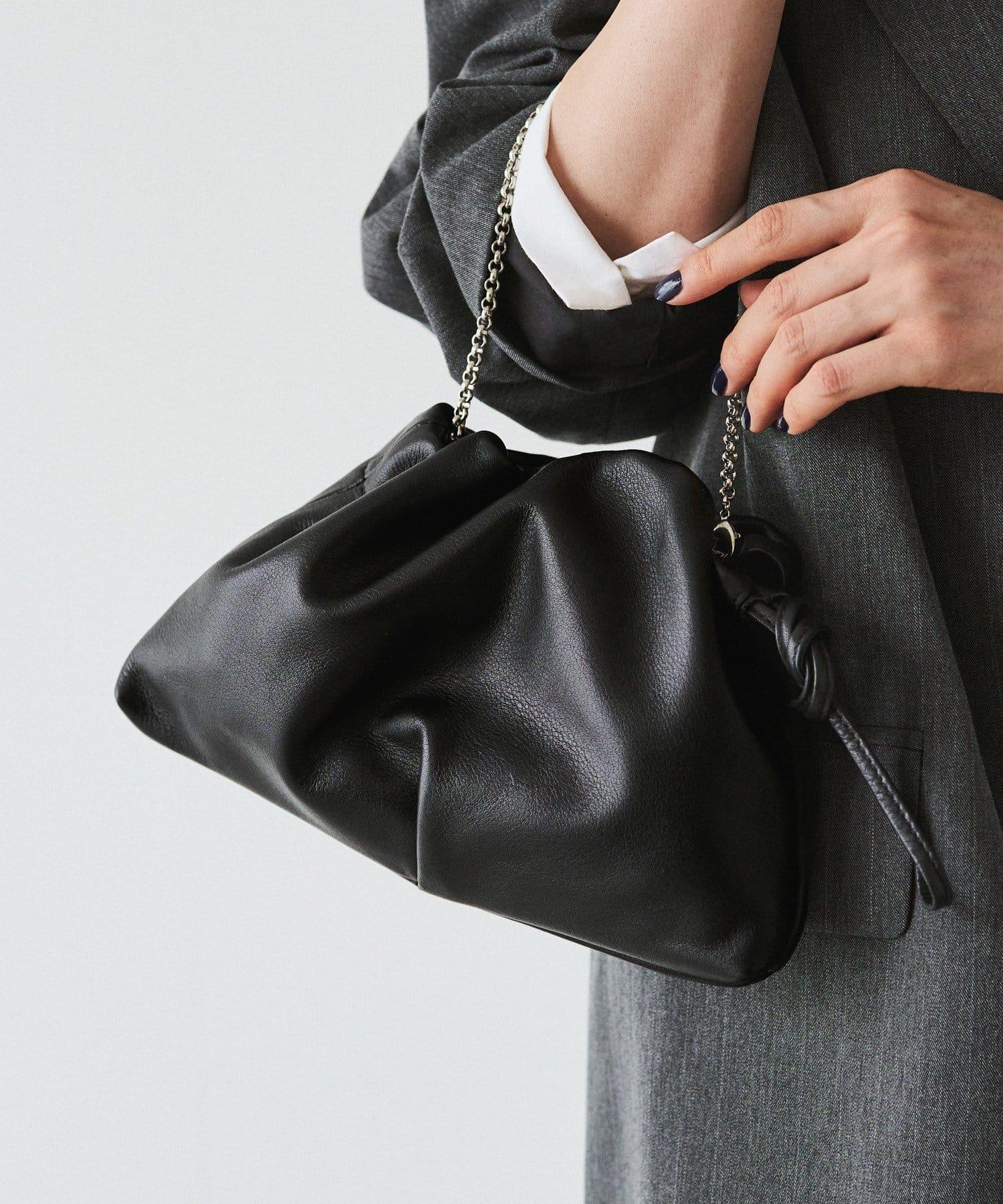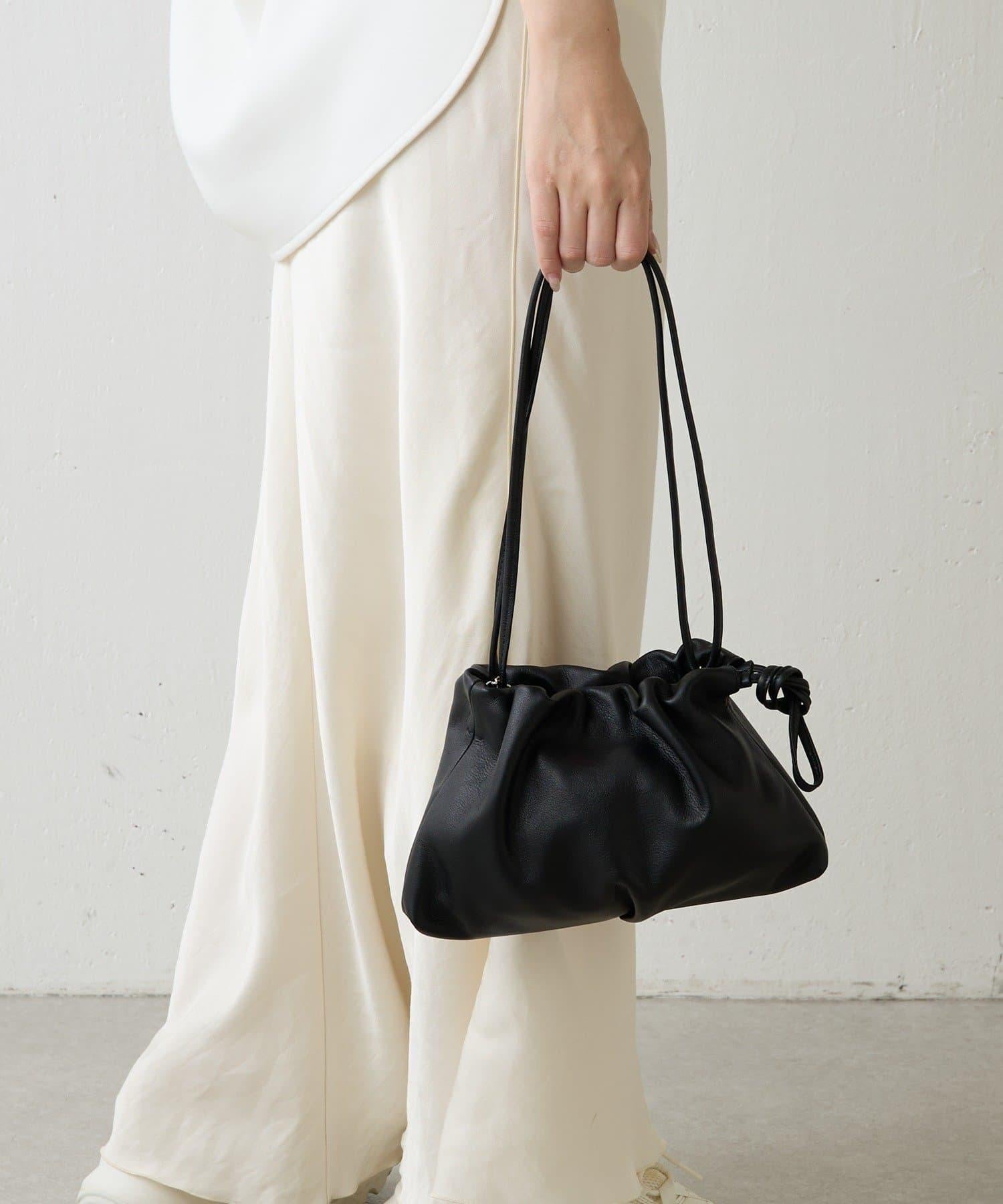 抽繩的柔軟造型與皮革的質感相得益彰。