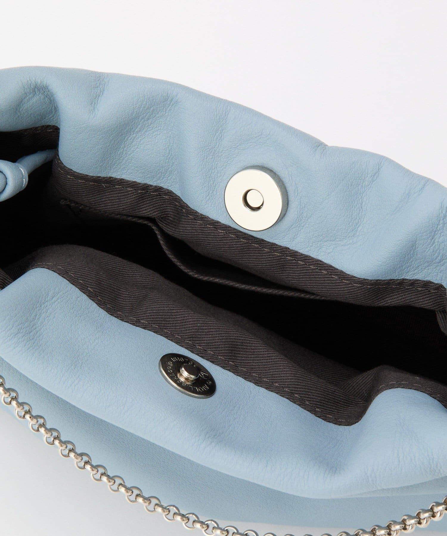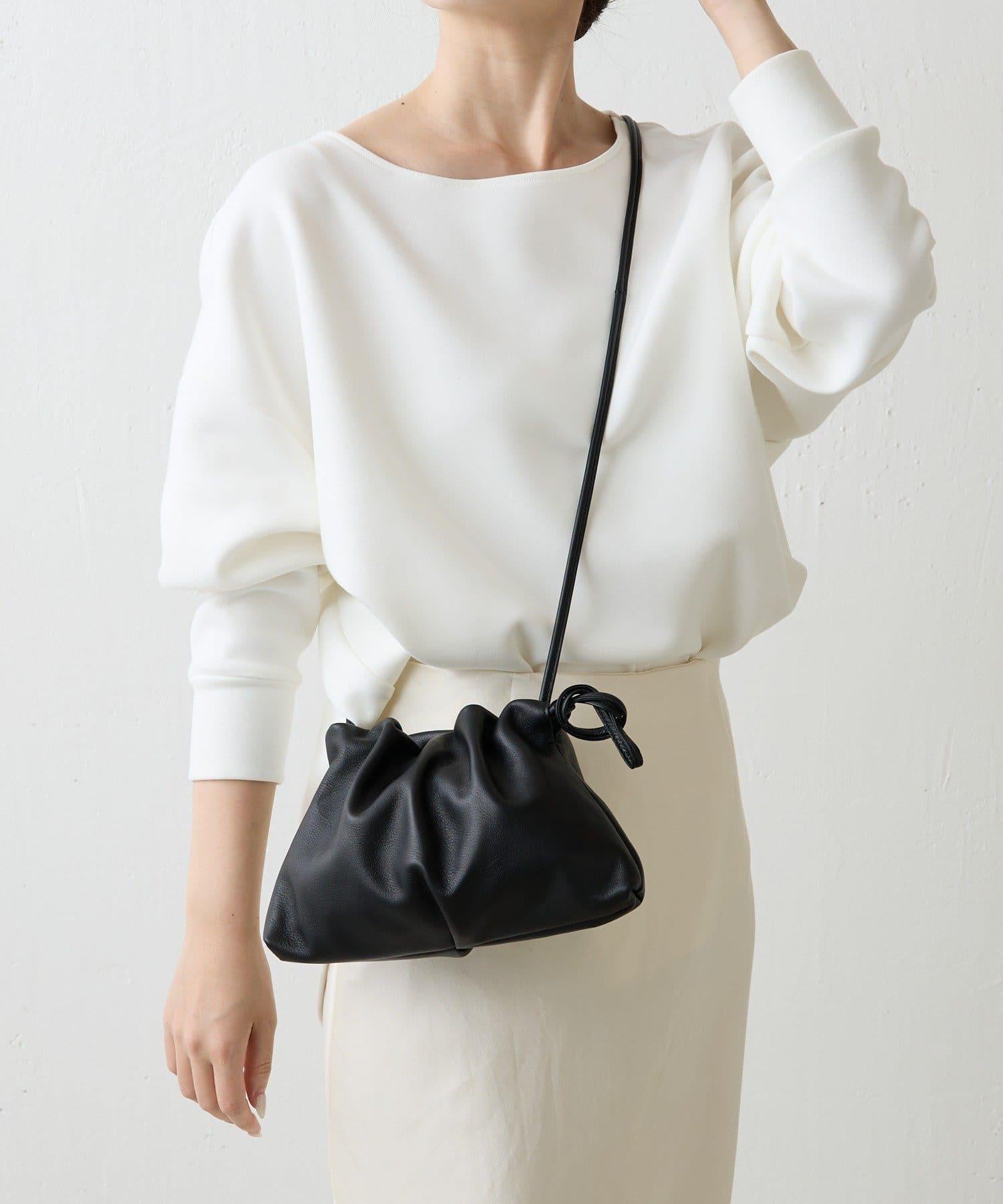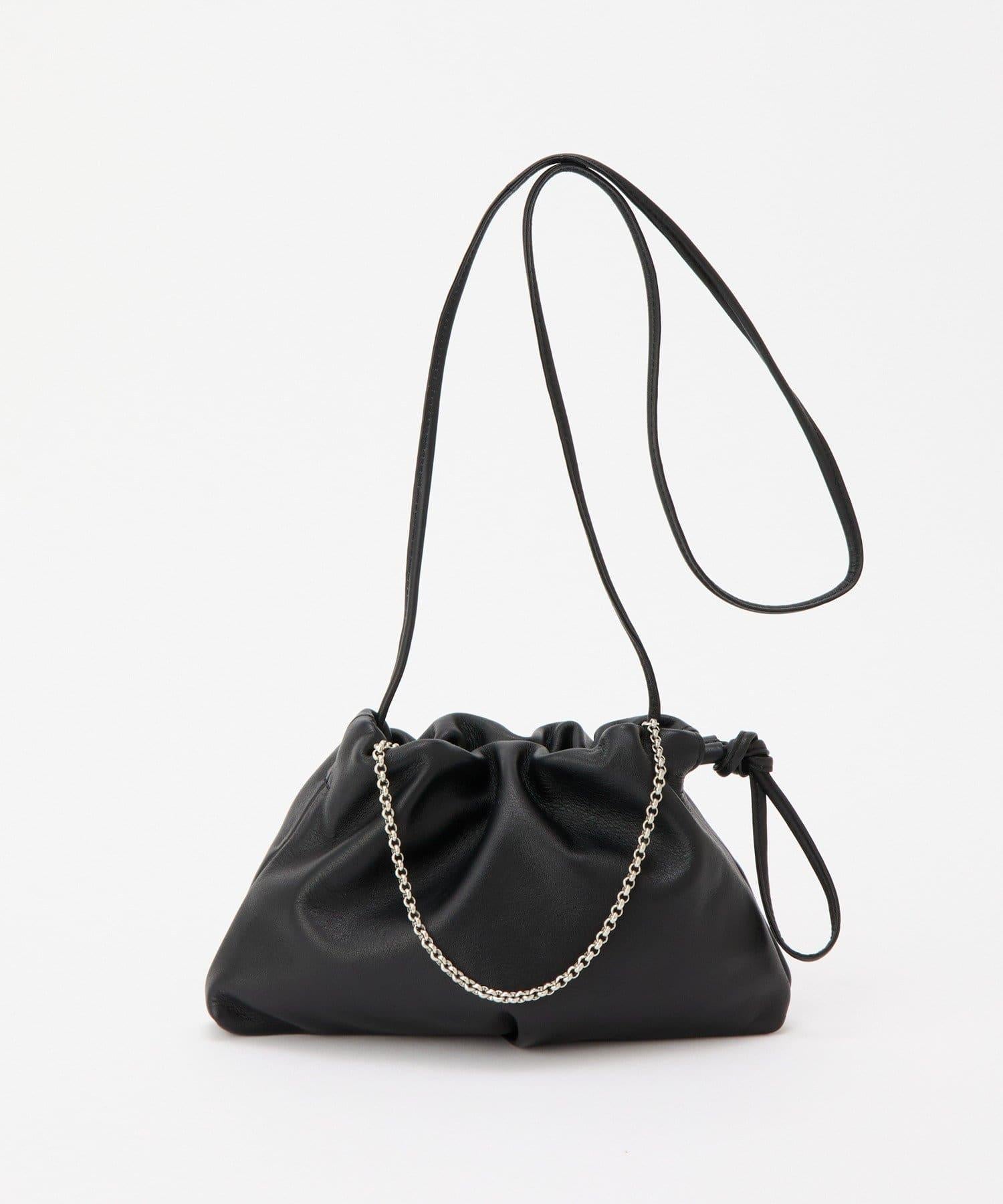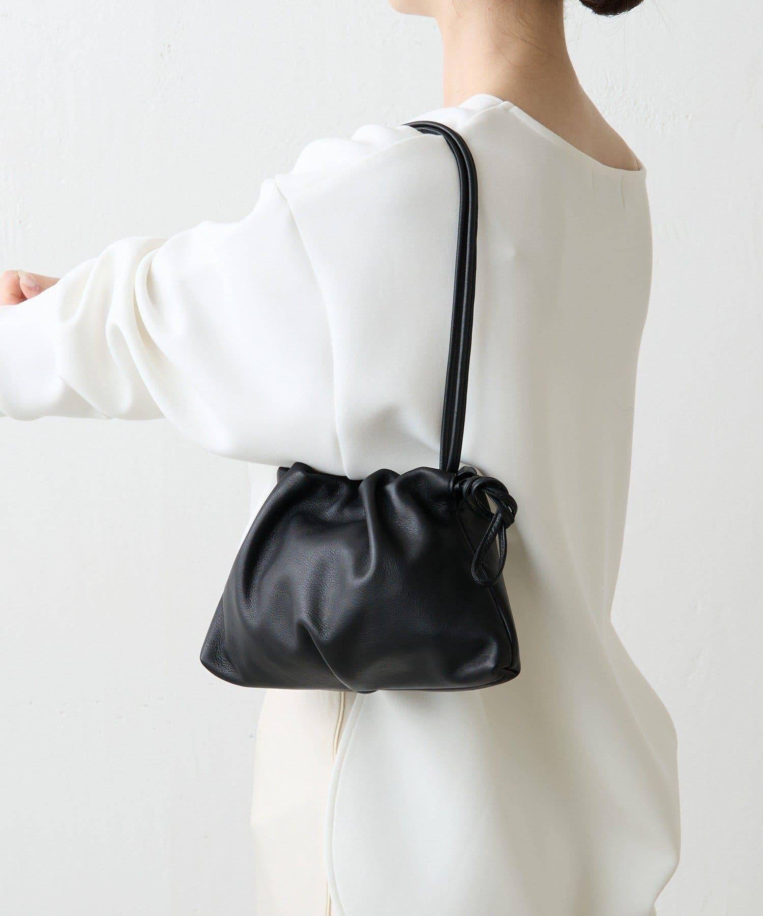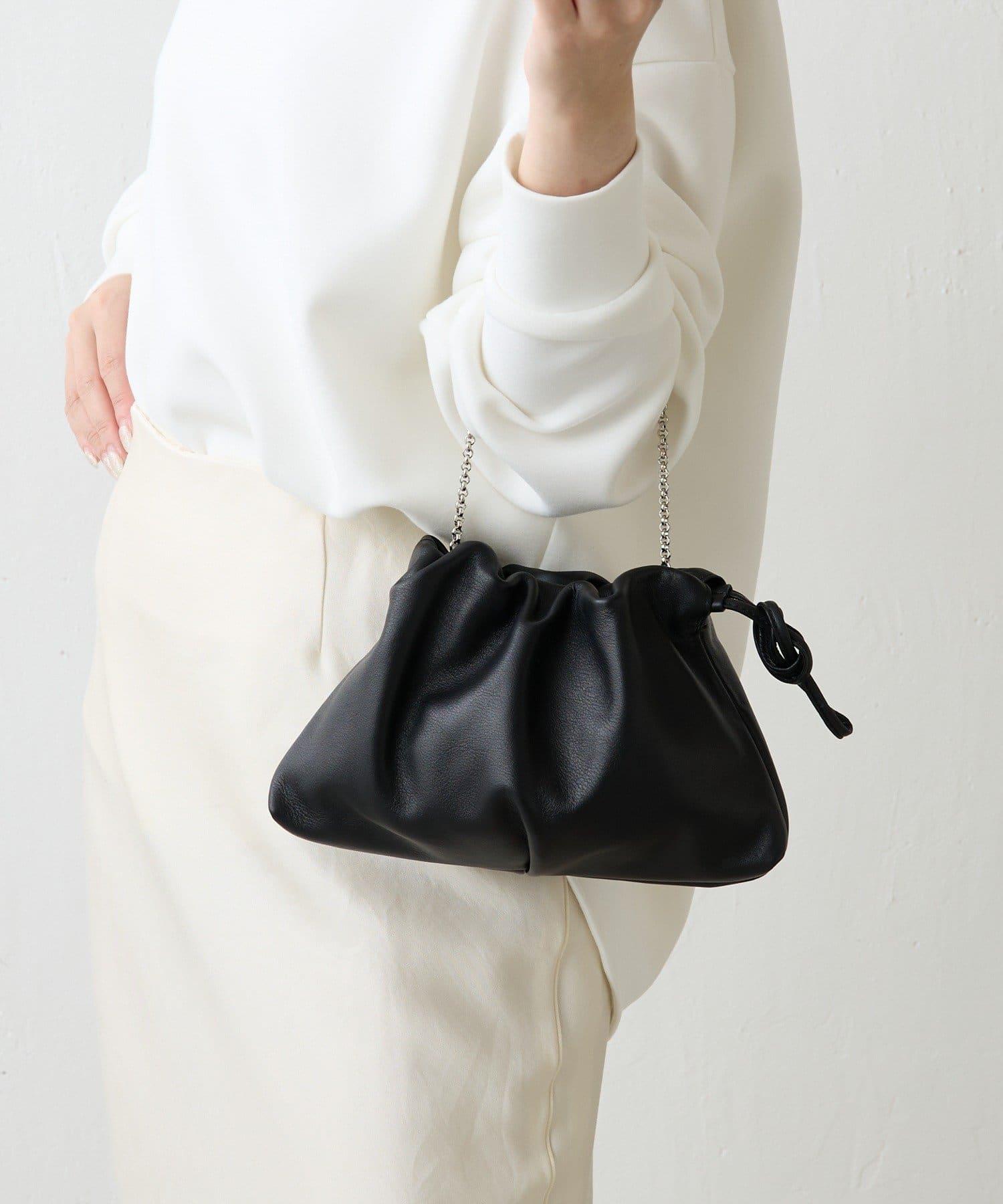抽繩的柔軟造型與皮革的質感相得益彰。