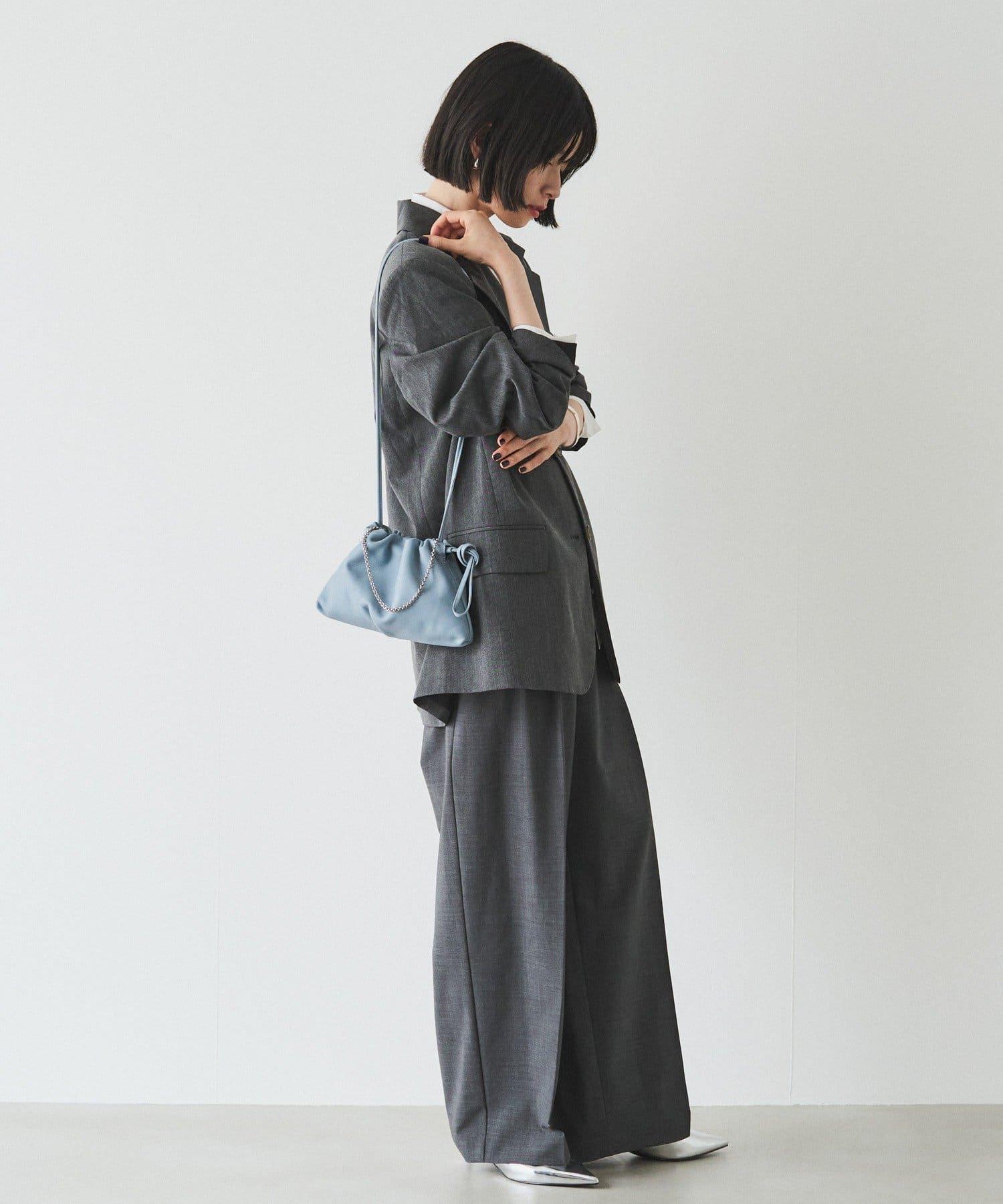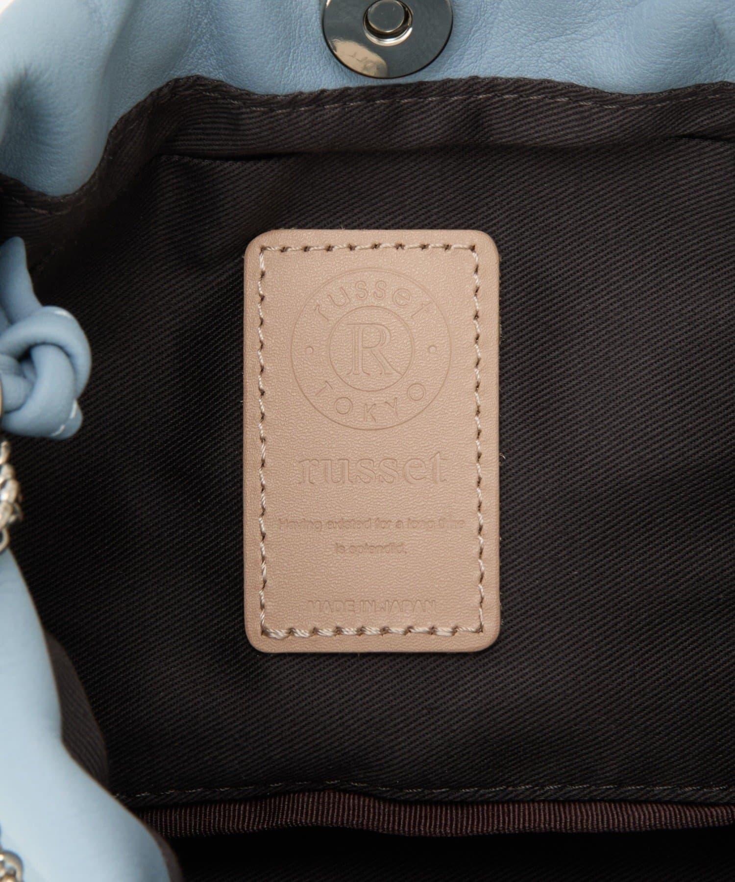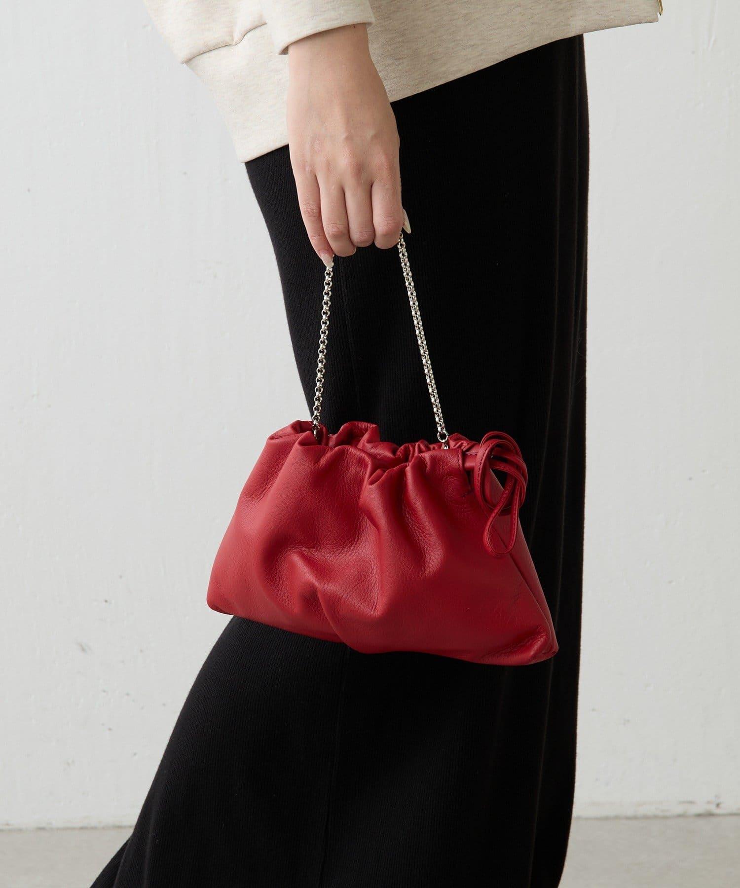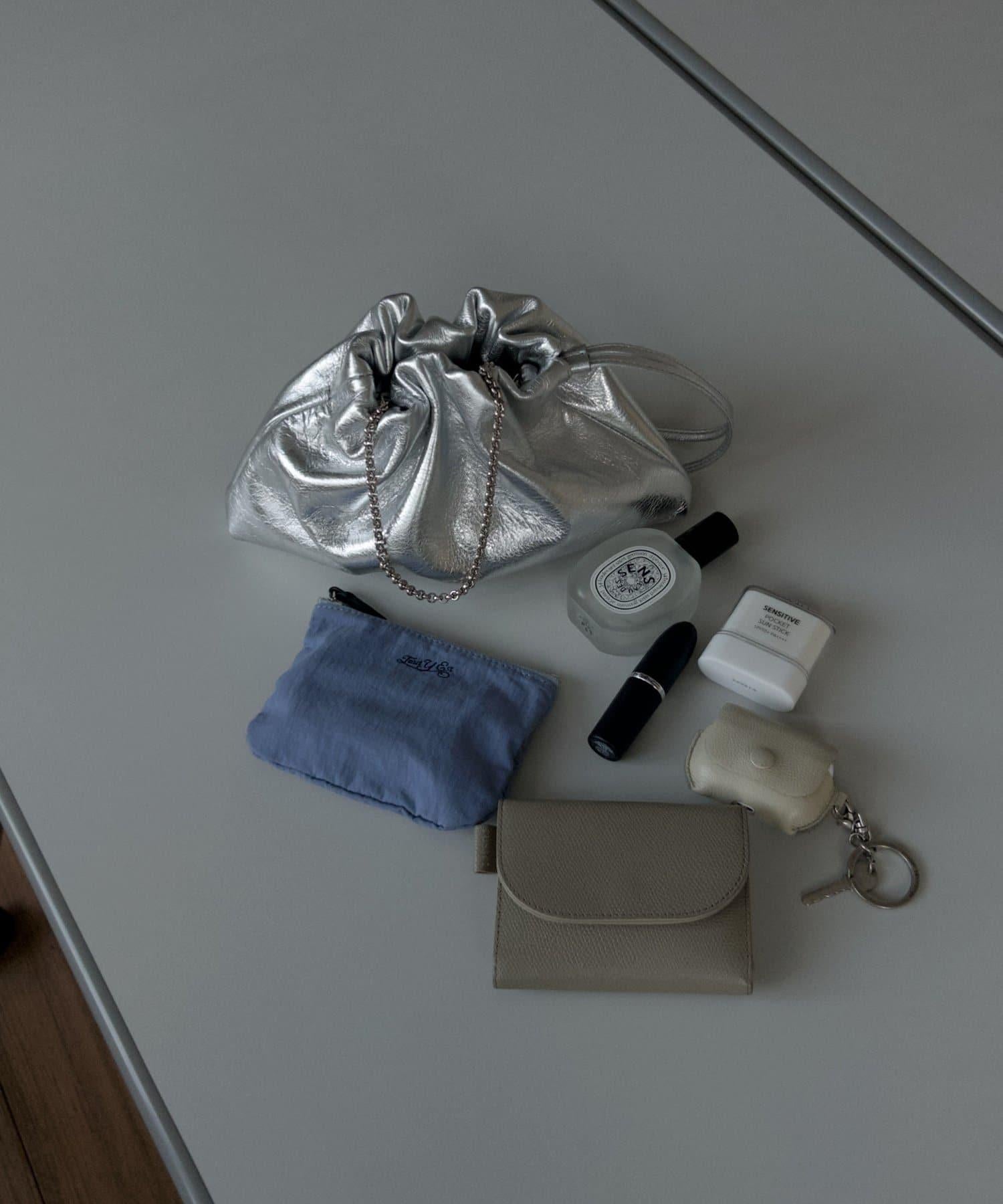 抽繩的柔軟造型與皮革的質感相得益彰。