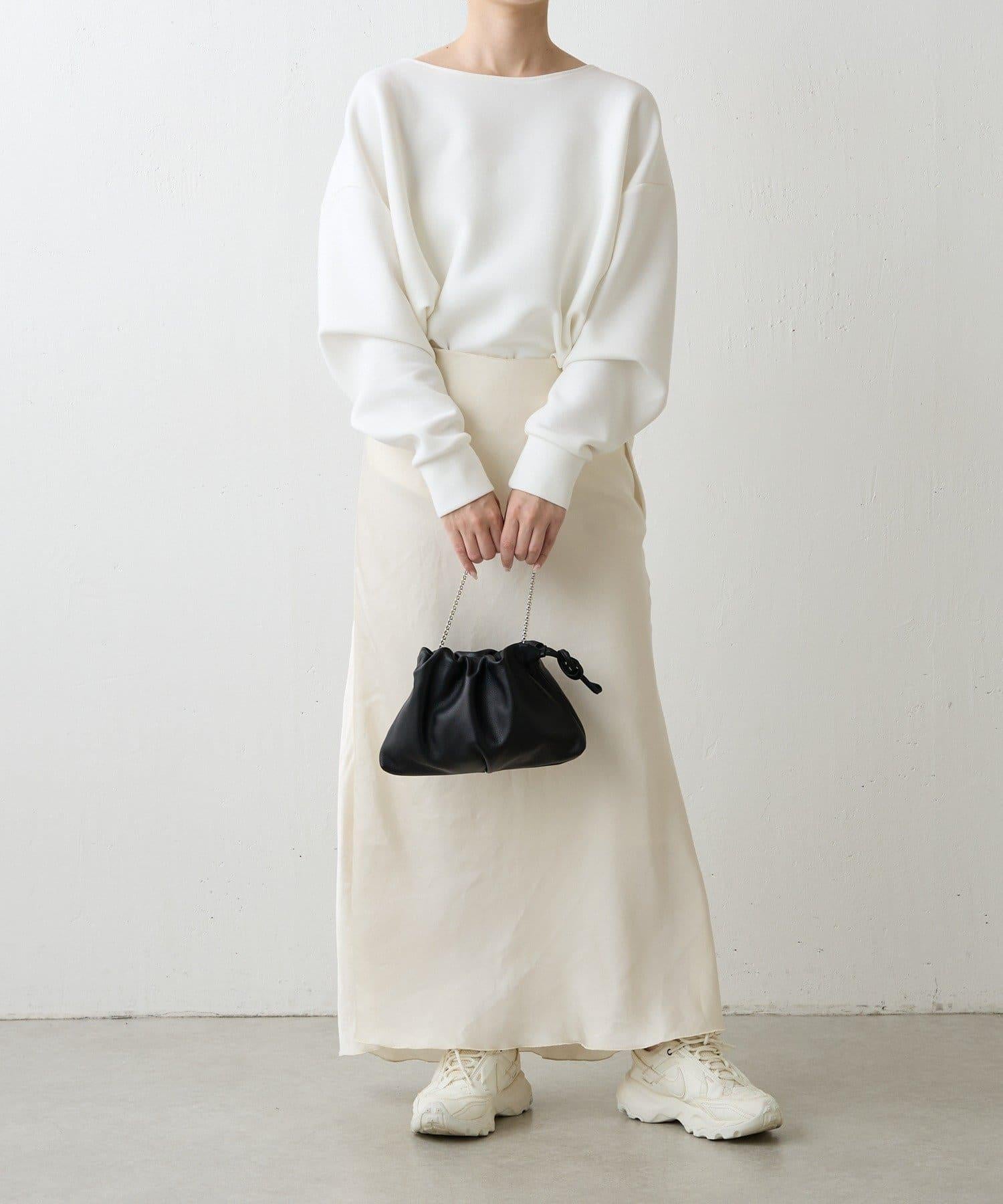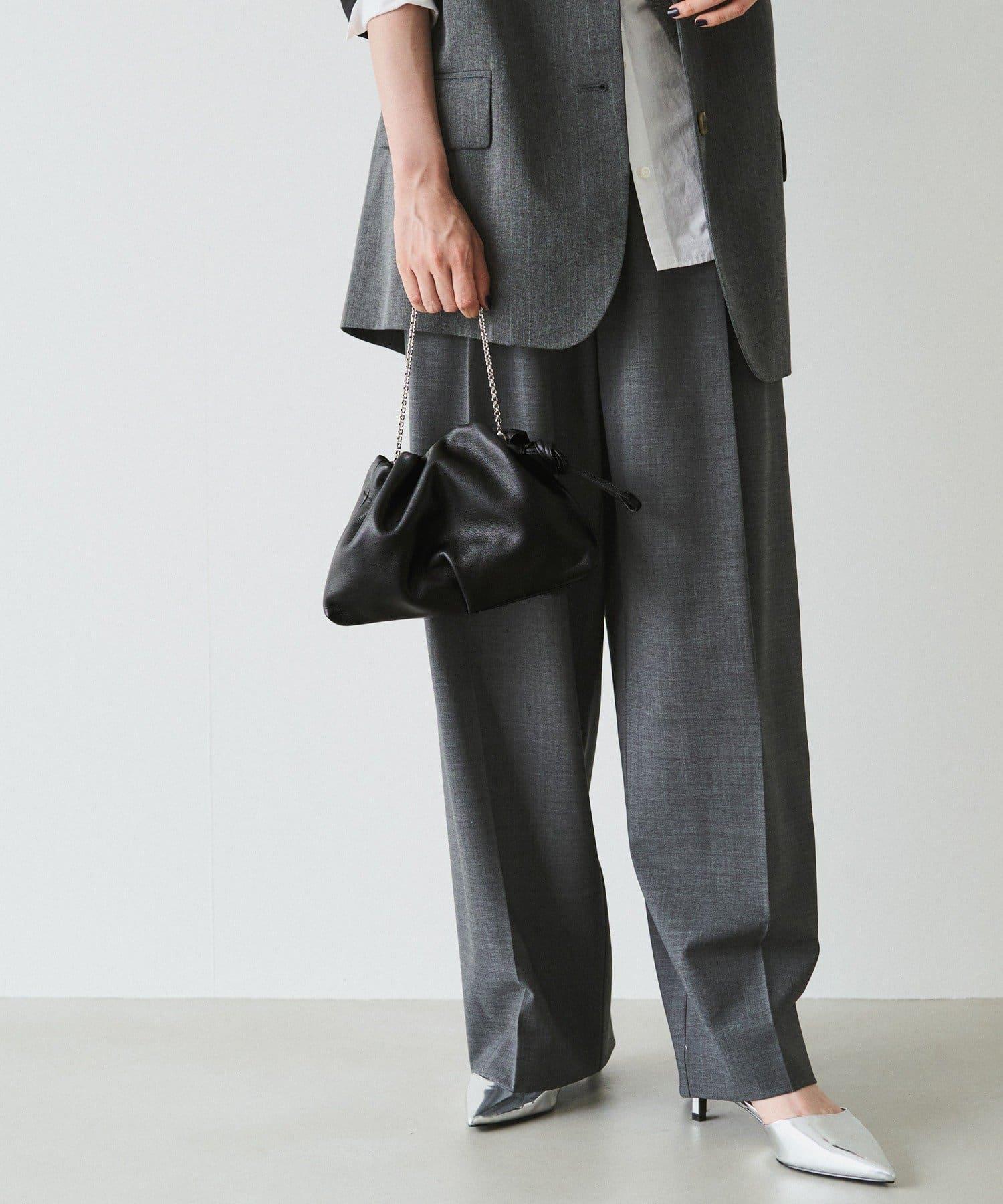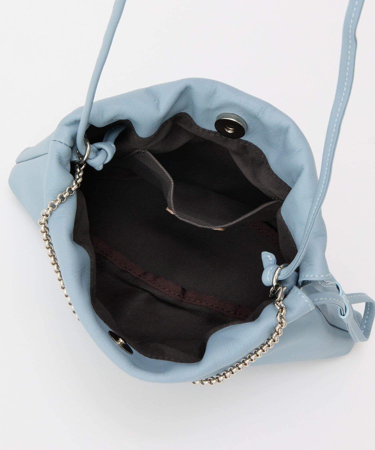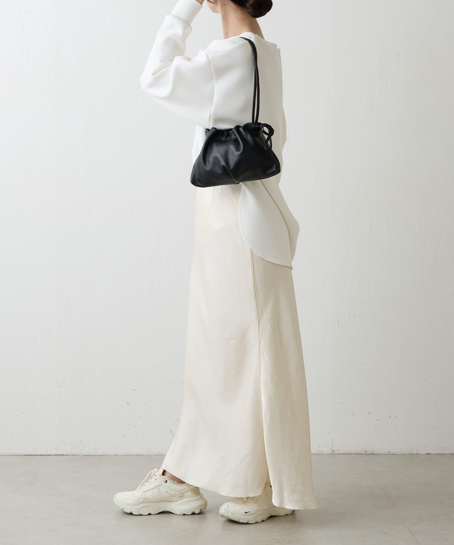 抽繩的柔軟造型與皮革的質感相得益彰。