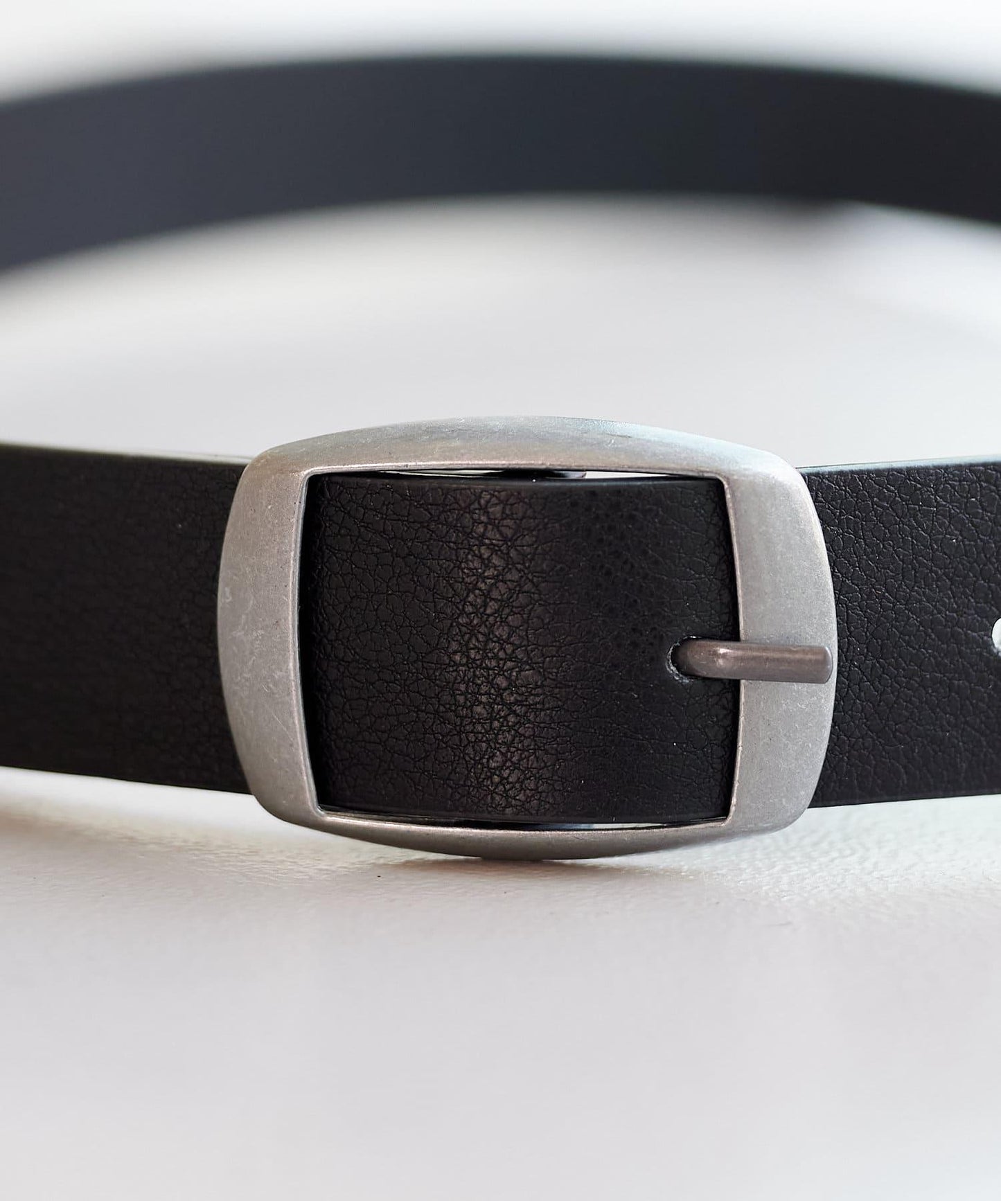 這款皮帶的金屬部分附近有一個孔,可以插入皮帶的末端。