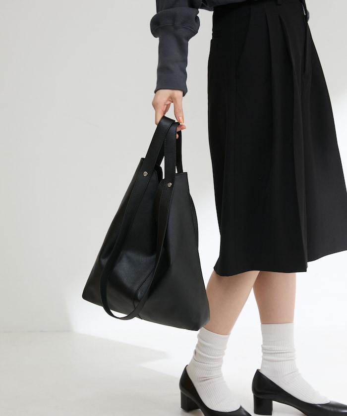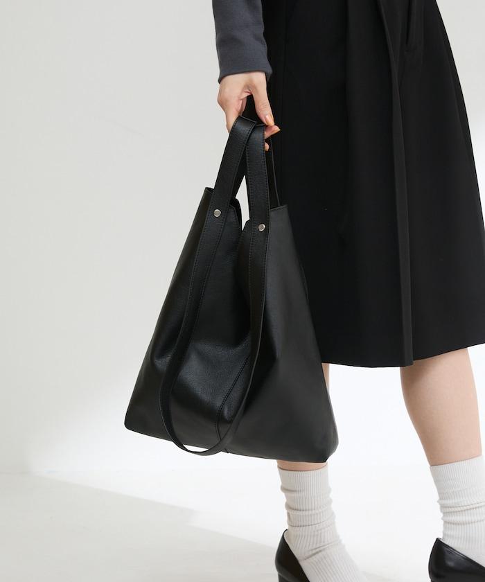 一款雙向皮質手提包,建議用於上下班或上學途中。