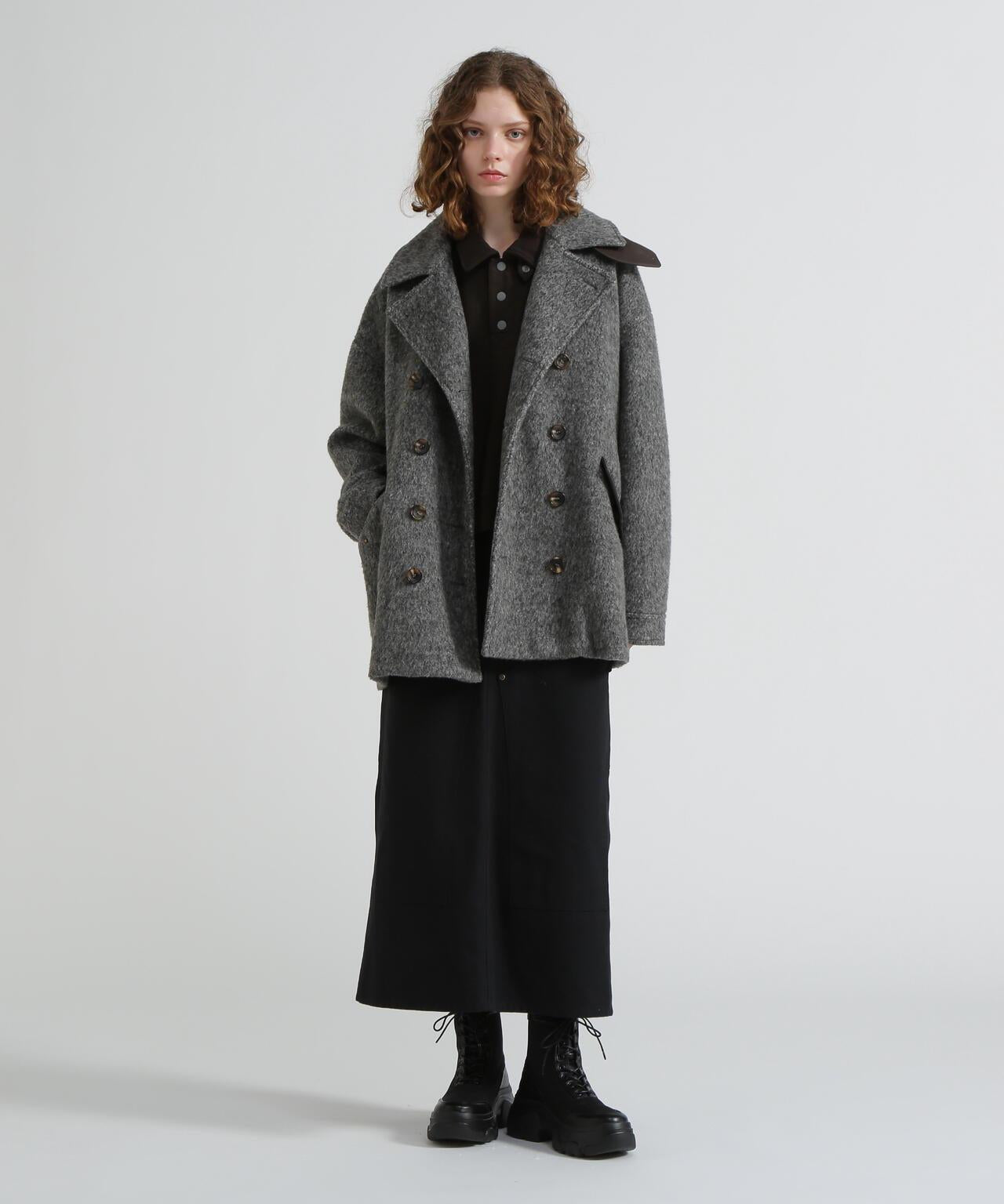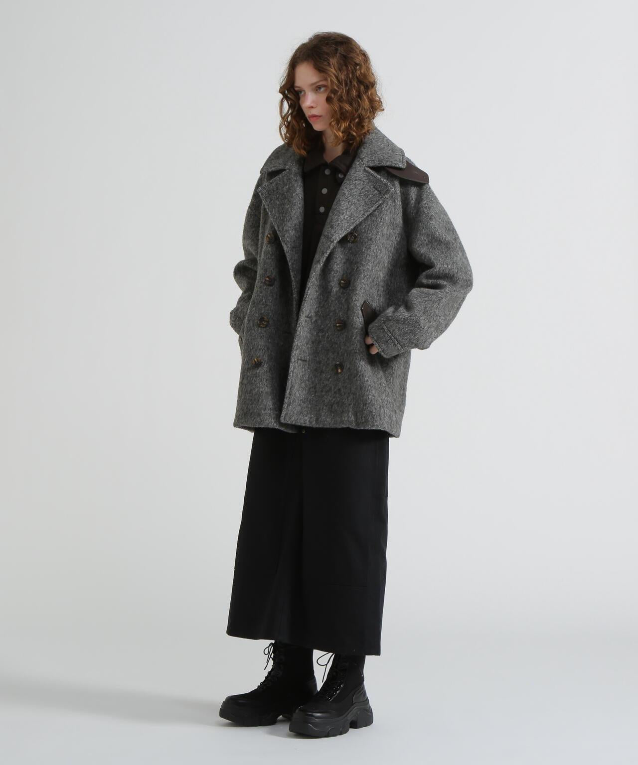 《直営店限定》長毛呢短大衣/長毛呢豌豆大衣