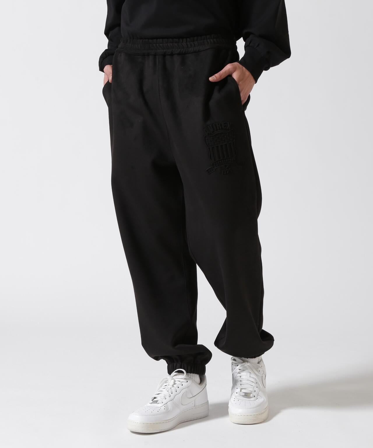 AVIREX官方店] 商品名稱:《👍直營店》EMBOSS PANTS "EMBLEM" 產品詳情 - 麂皮絨觸感面料和浮雕品牌徽章令人印象深刻的打底褲 - 柔軟獨特的麂皮絨面料 - 前幅浮雕徽章式設計前幅AVIREX徽標設計品牌貨號:7835130008 / 商品名稱:《👍直營店》EMBOSS TRACK JACKET "EMBLEM" [AVIREX / 阿維雷克] 1975年作為美國空軍的承包商成立,通過提供飛行夾克大幅提高了知名度。