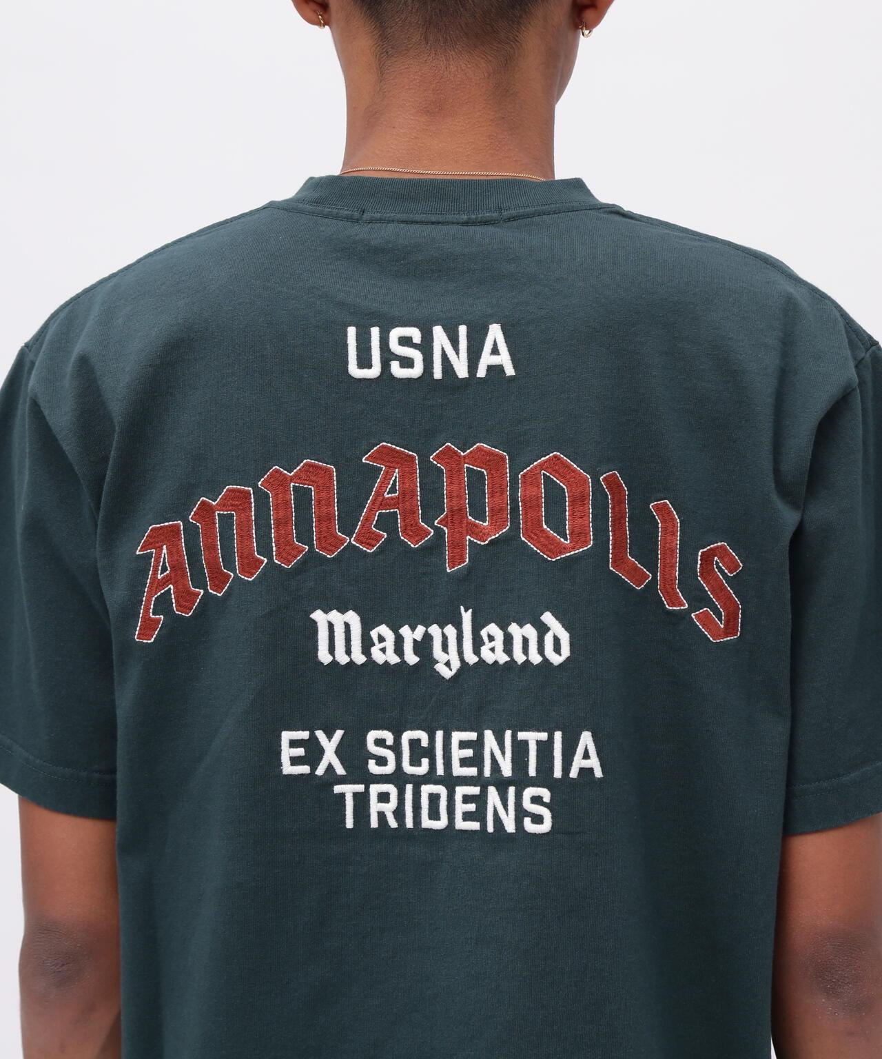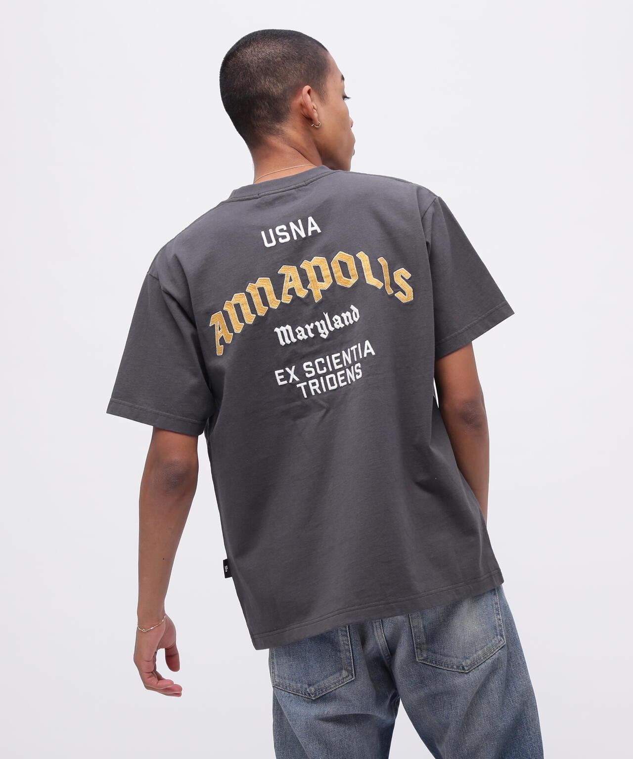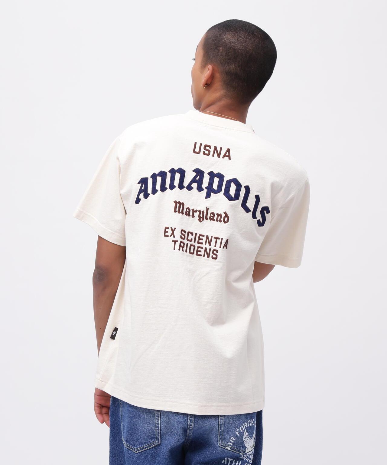 AVIREX官方商城] 產品名稱:《直營店限定》ANNAPOLIS T-SHIRT 產品詳情 - 限量短袖T恤 - 前幅左胸,原字體刺繡標識 - 後幅,刺繡美國海軍學院圖案設計,即安納波利斯 - 自然色,炭灰色、該公司成立於 1975 年,當時是美國空軍的承包商,因供應飛行夾克而知名度大增。Avirex 公司起源於軍事領域,以功能性設計所散發出的獨特美感為基礎。其獨特的外觀曾出現在《奪寶奇兵》、《蝙蝠俠:大破天幕殺機》等電影中。